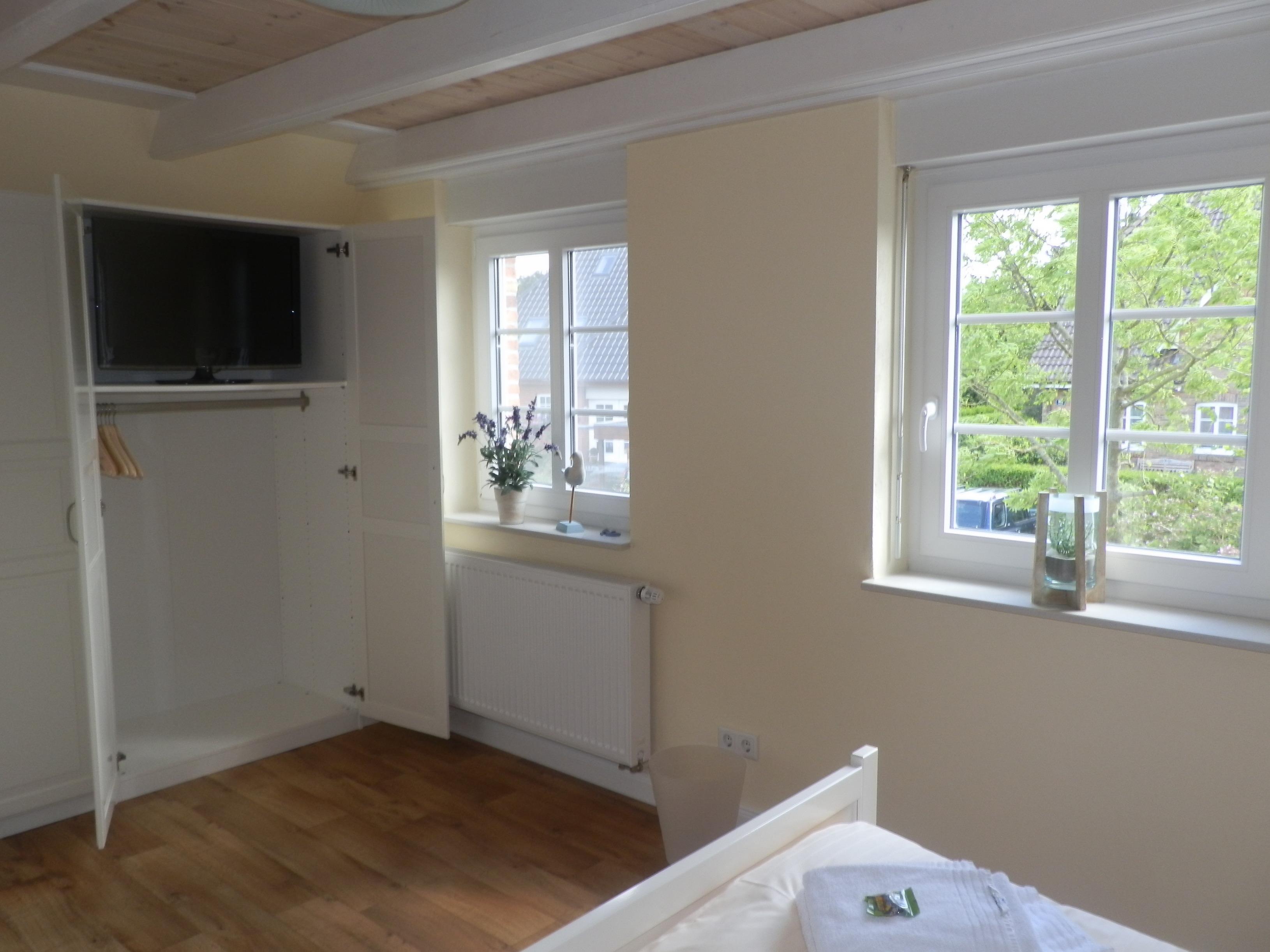 Die in neutralen Farben gehaltenen, eleganten Zimmer der Apartments Wyk auf Föhr - Haus Lillebroo sind mit hochwertigen Möbeln ausgestattet. Besonderen Komfort versprechen die 2 Komfort Duschen, eine mit Dampfsauna-Funktion sowie die 2 großen Flachbild-TVs in den Schlafzimmern und ein Flachbild-TV mit Blu-ray-Player im Wohnraum.