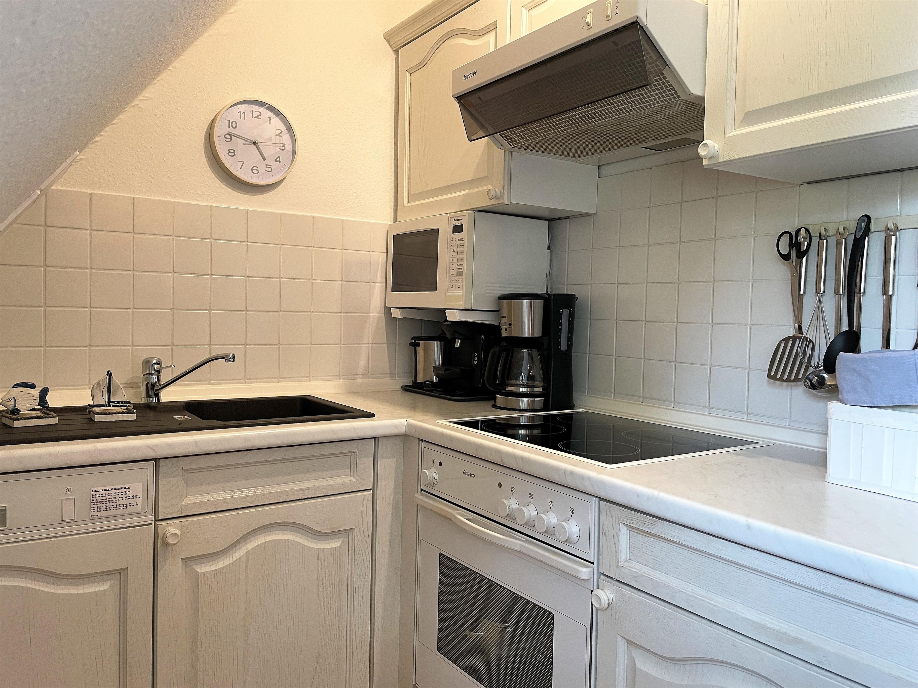 Über zwei Etagen erstreckt sich unsere entzückende Wohnung "Leev Kind", was soviel wie "liebes Kind" bedeutet. Mit viel Freude hat die Eigentümerin hier eine Ferienwohnung eingerichtet, die mit Charme und Herzlichkeit überzeugt. Auf der ersten Etage befindet sich der moderne Wohnbereich mit einer gemütlichen Essgruppe, WLAN, Flachbild-TV und einem Schlafsofa (130 x 190 cm). Hier ist ebenfalls die gut ausgestattete Küchenzeile integriert. Geruhsame Nächte können Sie im Schlafzimmer mit bequemen Doppelbett (180x200 cm) verbringen. Das Bad ist klein, fein und funktional. Auf der zweiten Etage haben Sie einen Rückzugsort, um ein Buch zu lesen und Kinder können hier in Ruhe spielen. Die Hausanlage verfügt weiterhin noch über einen Fitnessraum, eine Sauna und ein Schwimmbad, welche gerne gemeinschaftlich genutzt werden können (Nachbargebäude). Draußen befinden sich Spielmöglichkeiten, ein schöner Gemeinschaftsgarten und natürlich Ihr eigener Terrassensitzplatz zum Relaxen. Ihr Hund ist ebenfalls willkommen. Entdecken Sie ein kleines friesisches Juwel am Rande von Wyk.