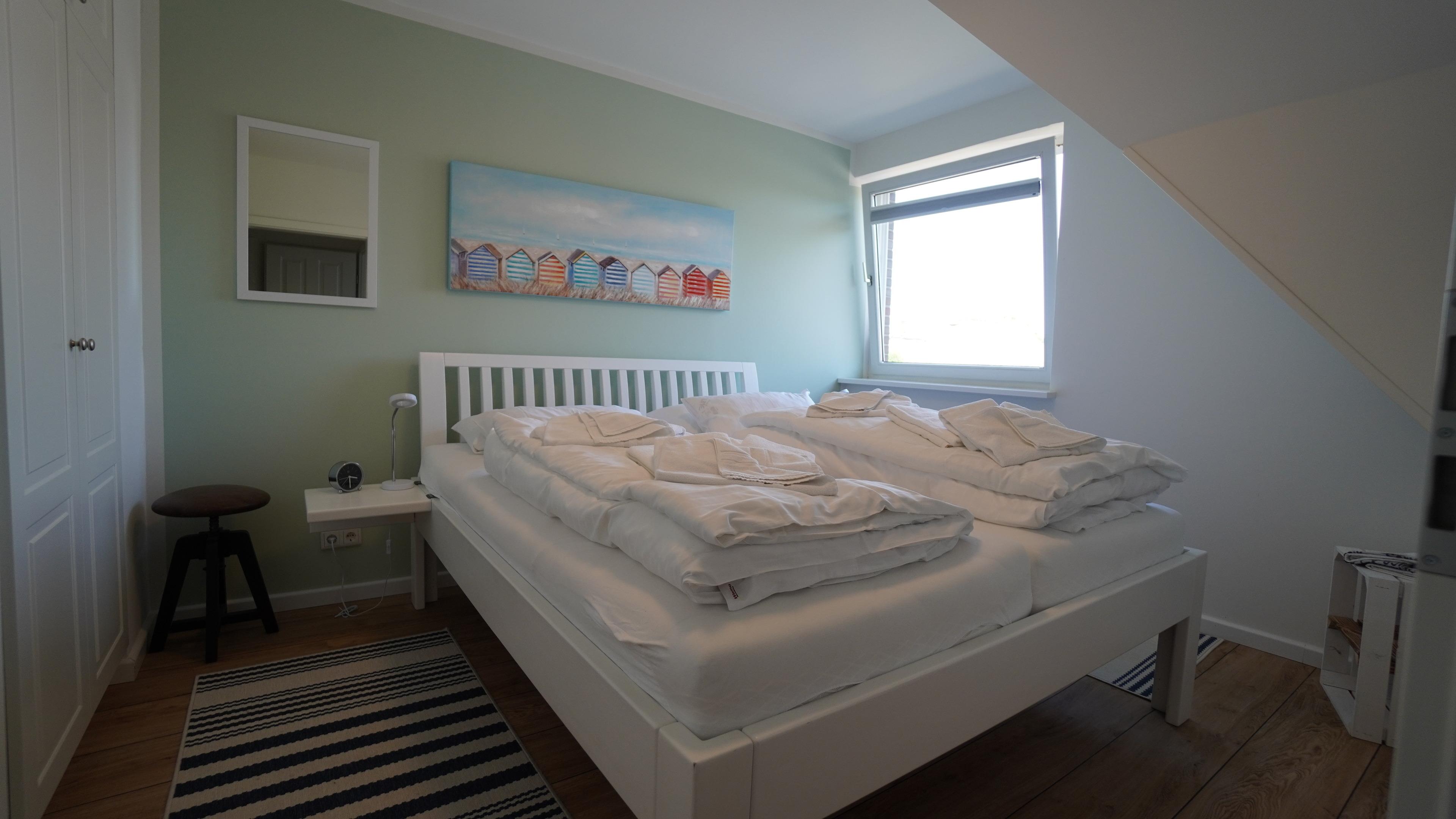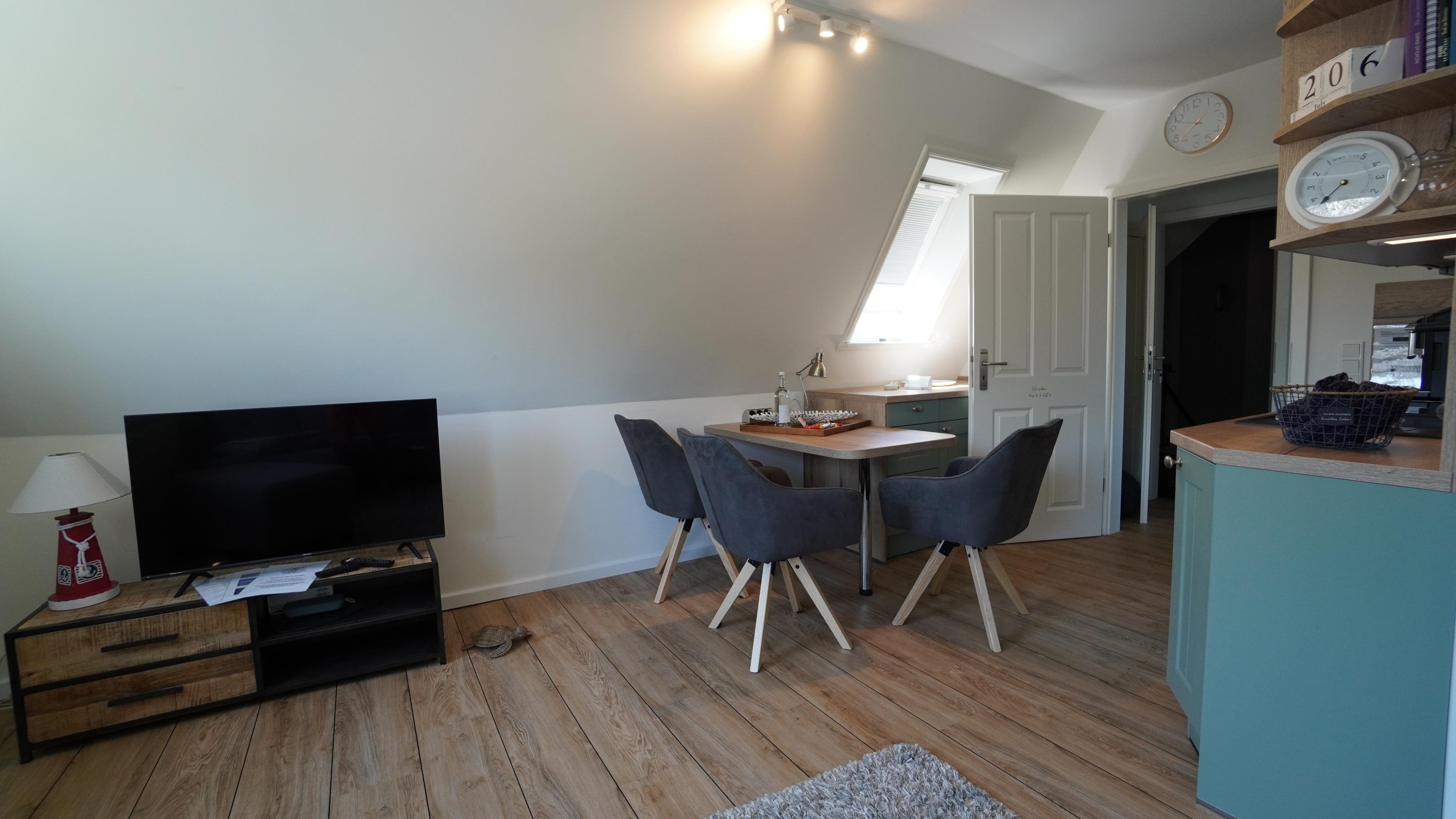 Das charmante Feriendomizil im Obergeschoss des Hauses bietet Platz für bis zu vier Personen (max. zwei Erwachsene) und überzeugt mit einem hellen Wohn- und Schlafbereich, welcher mit einem gemütlichen Schlafsofa ausgestattet ist. Zusätzlich verfügt die Wohnung über ein separates Schlafzimmer mit Einbauschrank und einem komfortablen Doppelbett.