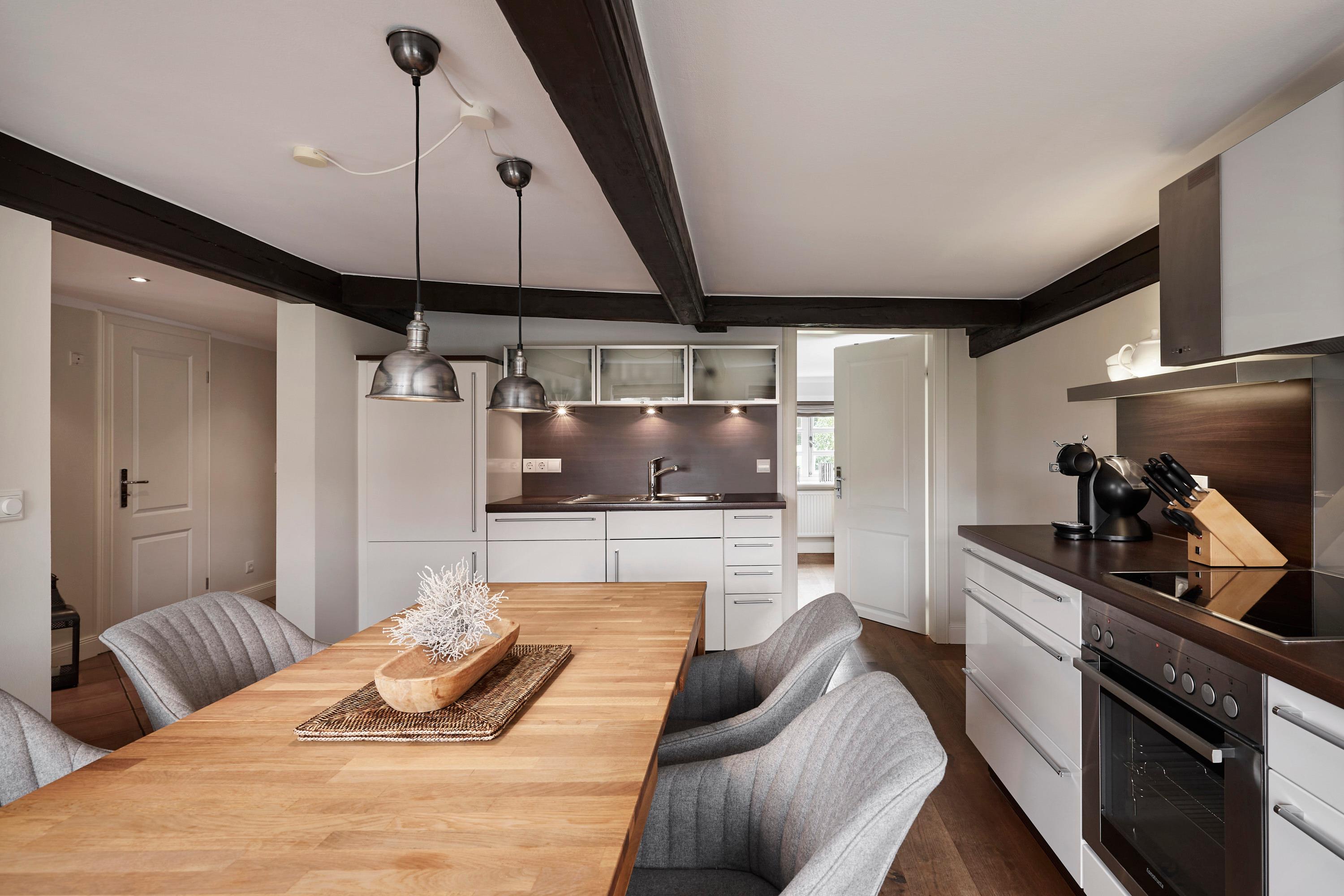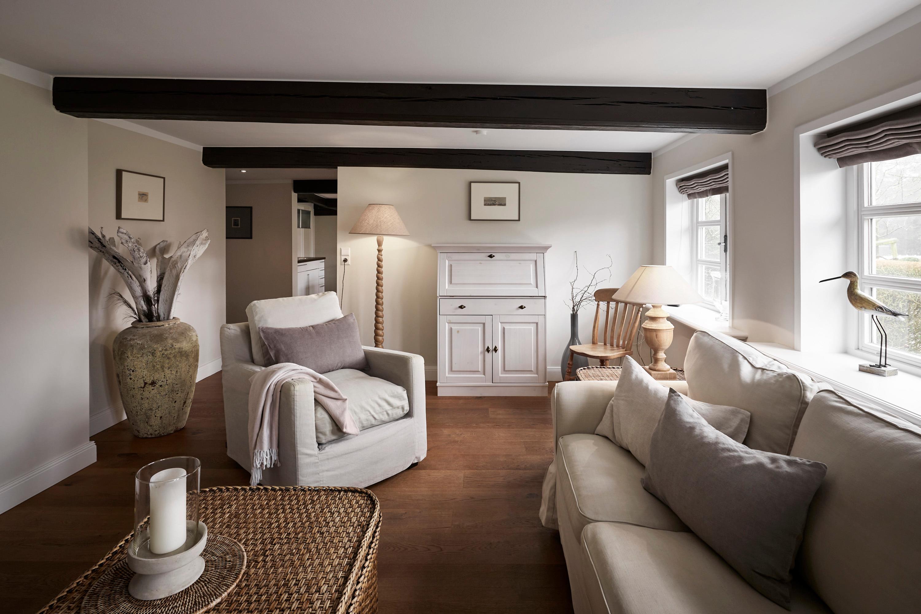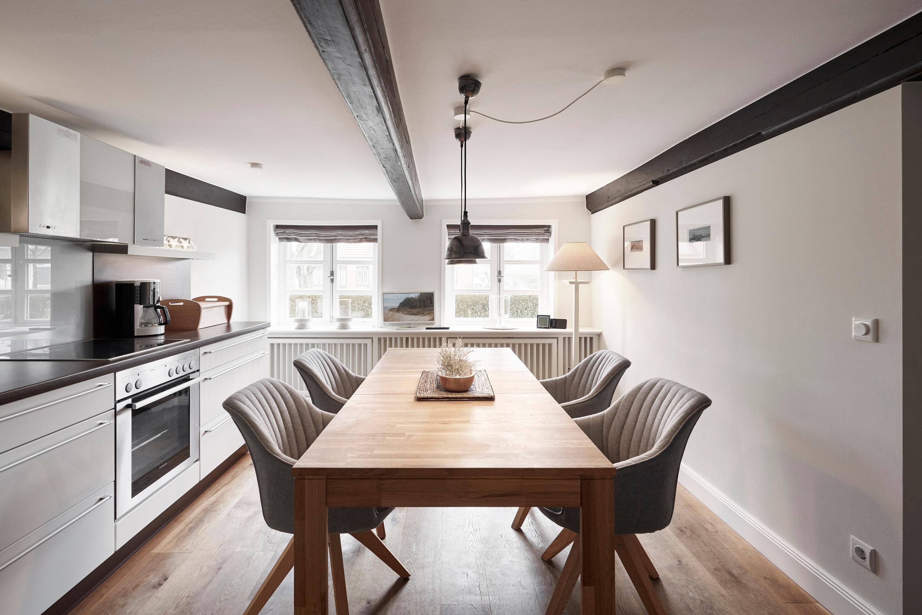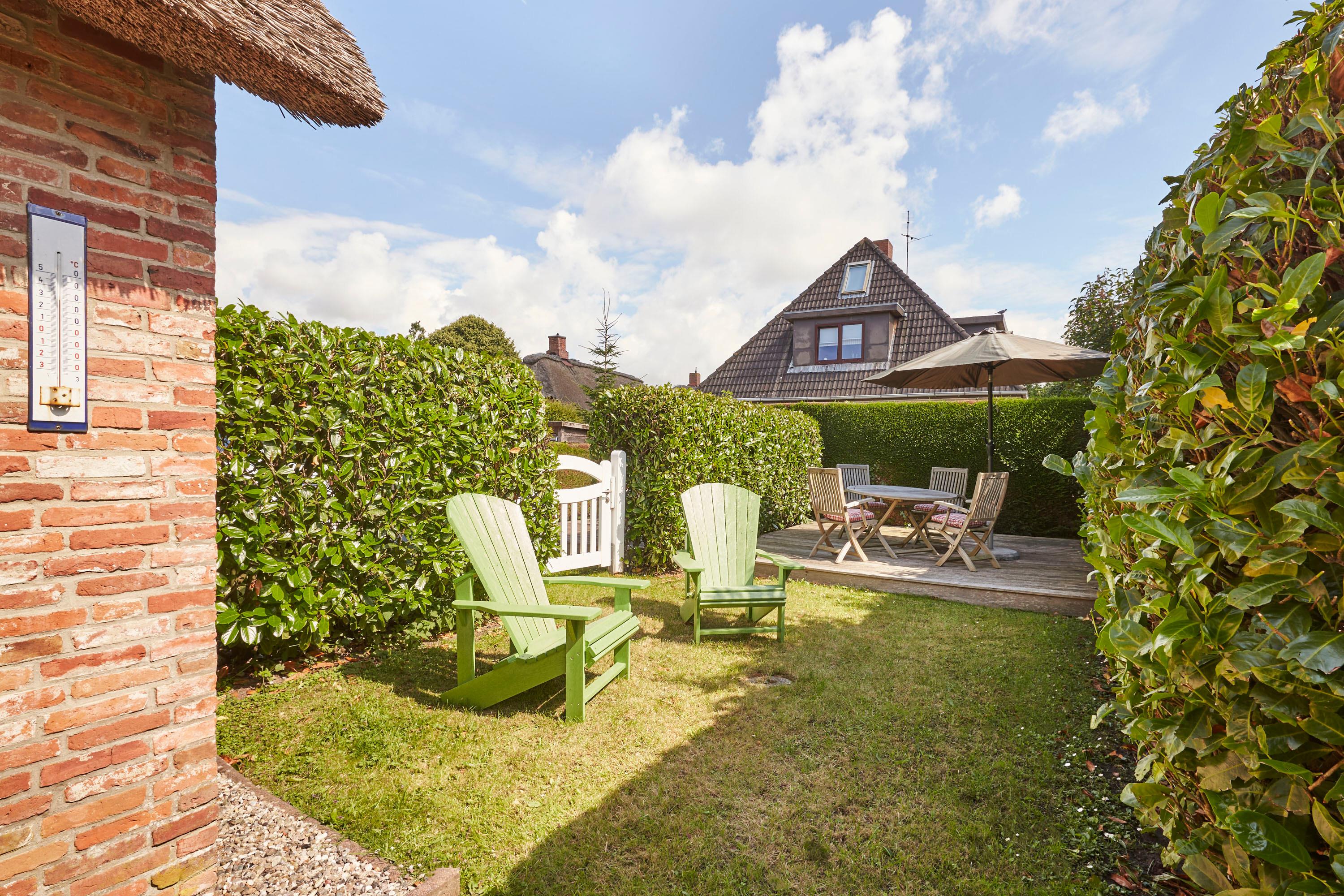 Diese Wohnung eines Friesenhauses aus dem 18. Jahrhundert liegt direkt am alten Dorfplatz von Boldixum. Die Eigentümer haben die Wohnung stimmungsvoll und gemütlich eingerichtet. Neben [nbsp]einem großen Wohnbereich befindet sich die Küche mit Essplatz. Zwei Duschbäder und auch zwei Schlafräume, sowie ein großer Flur und Eingangsbereich runden den Grundriss ab. Das Haus hat wunderschöne alte Deckenbalken. Wie in vielen alten Friesenhäusern üblich, ist daher die Deckenhöhe nicht viel höher als 1,80m, was den Charme dieser Häuser ausmacht. Ein kleiner sonniger Garten mit Sitzecke lädt zum Verweilen ein. Die Nähe zum Zentrum von Wyk, welches auch fussläufig erreichbar ist, sowie zum Fährhafen und Südstrand stellt einen weiteren Standortvorteil dar.