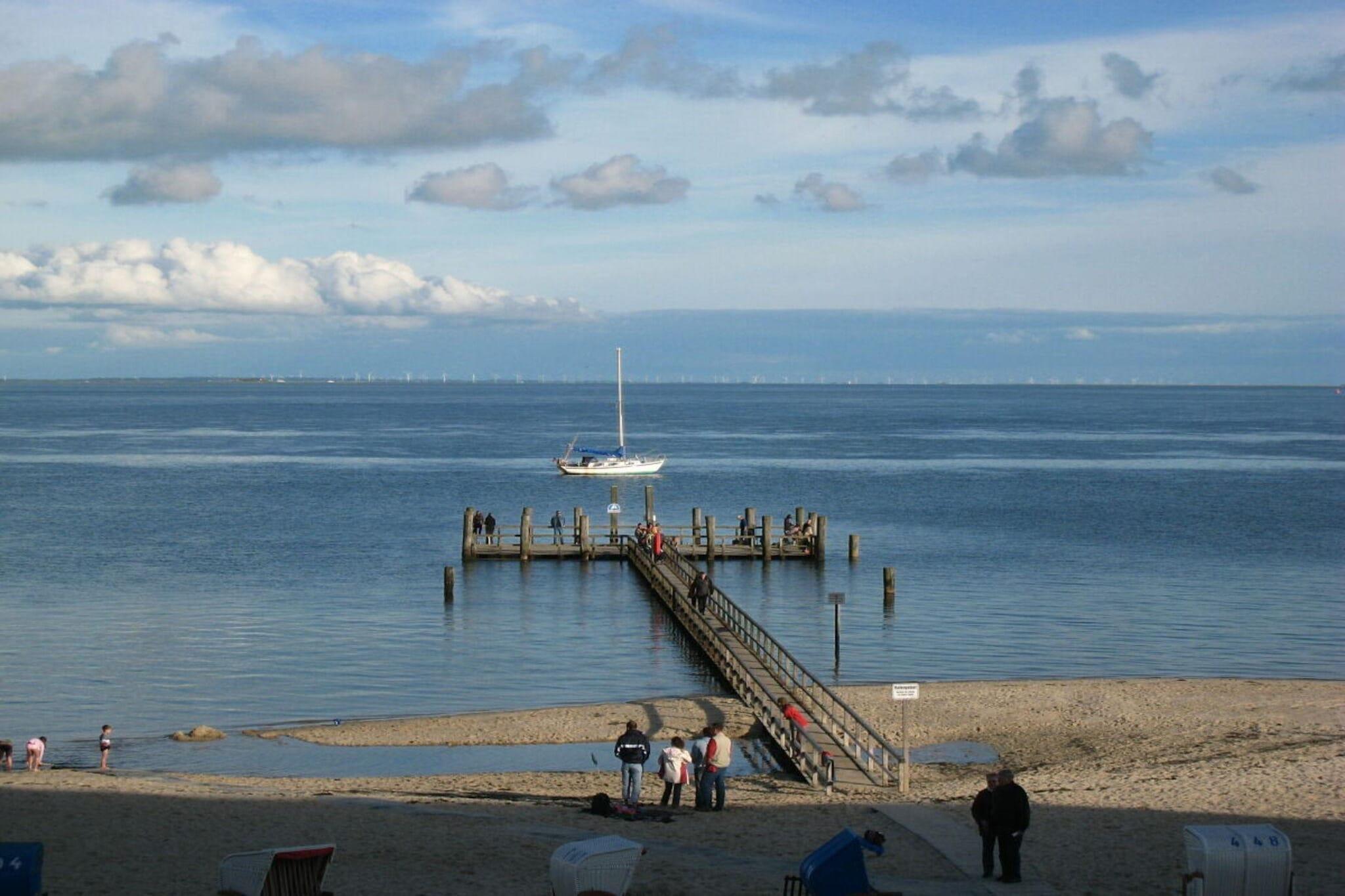 Die Dreizimmerwohnung Amrum (ca. 52m²) mit traumhaftem Meerblick, befindet sich in der 1. Etage. Sie ist nur durch die schmale Promenade vom herrlichen Sandstrand getrennt. Der Wyker Oststrand bietet beste Voraussetzungen zum Baden für groß und klein (im Uferbereich flach abfallend). Ob beim Essen im gemütlichen Wohnzimmer oder vom überdachten Balkon - Meerblick pur! Beobachten Sie Möwen, Segelboote und Fähren oder blicken Sie einfach auf das Wattenmeer mit seinen Halligen und beginnen zu träumen. Ein Kinderspielzimmer und ein Profi-Kicker-Tisch runden das Komplettangebot ab. Zwei LCD-Fernseher (WZ und SZ). Auf Wunsch stellen wir Ihnen gern ein Kinderbett und einen Hochstuhl bereit.