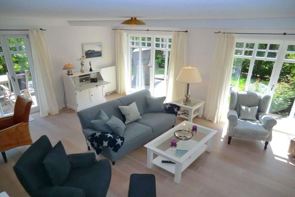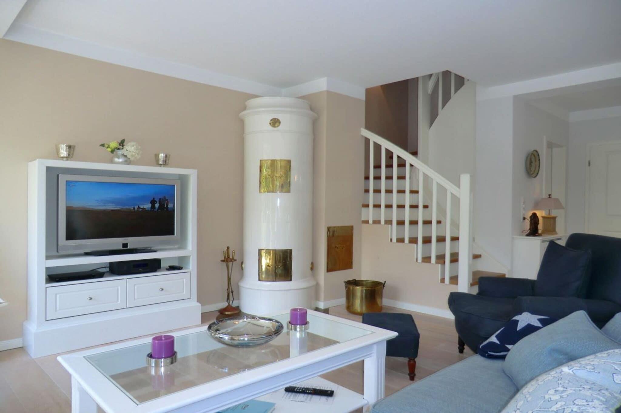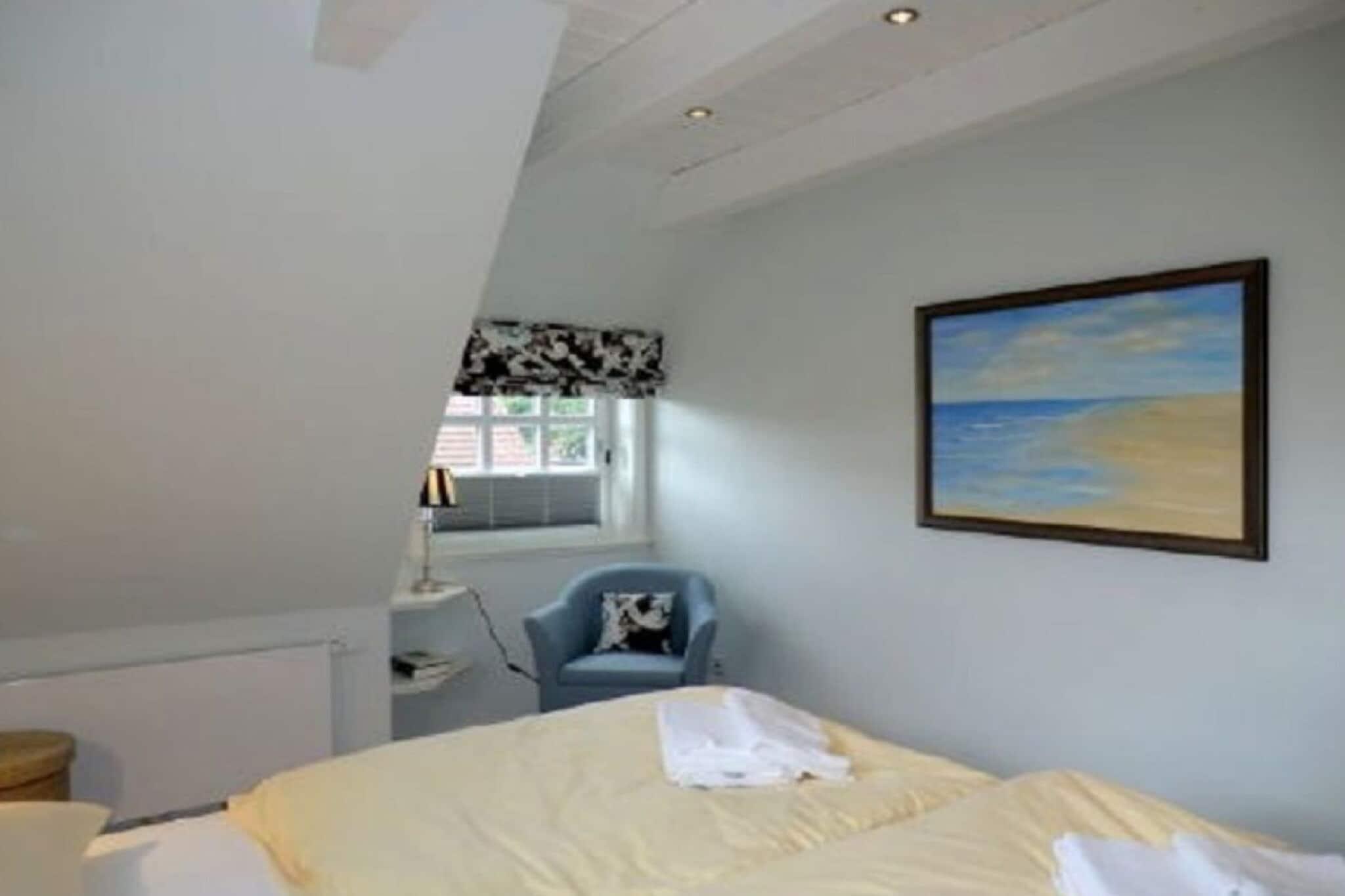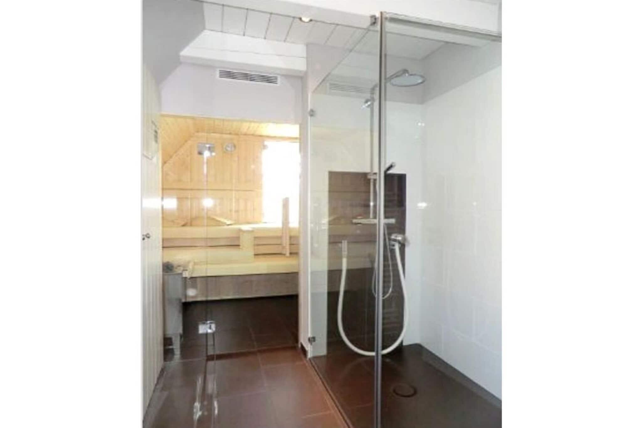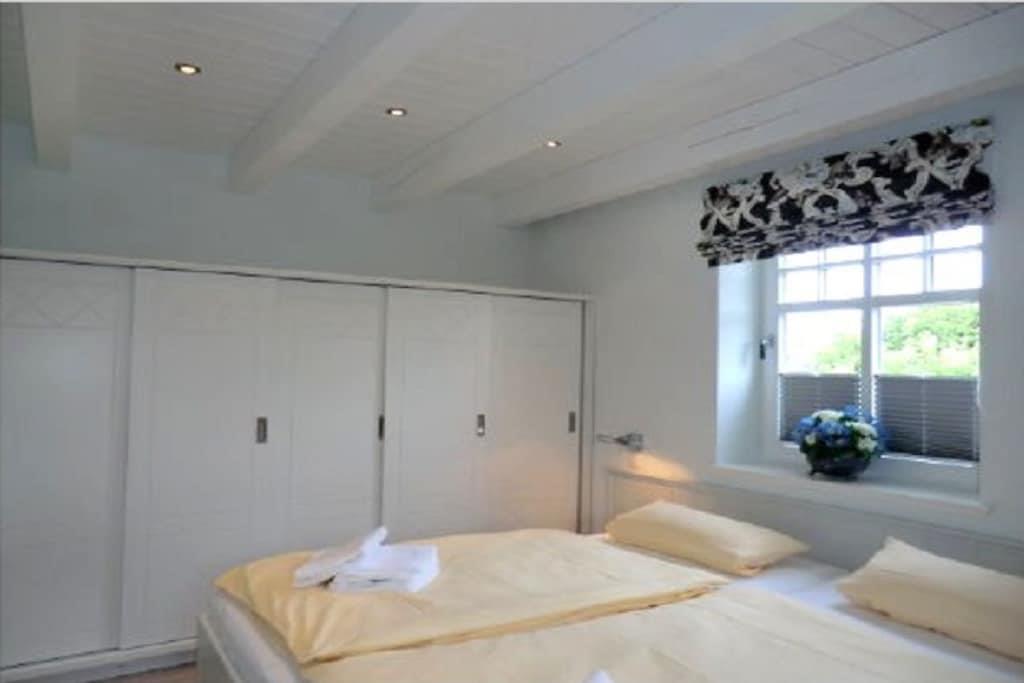 På 1. etage: (soveværelse(, , dobbeltseng), soveværelse(, enkeltseng, enkeltseng)) , , entre(, ), Køkken(tekøkken, kogeplade, kaffemaskine, ovn, opvaskemaskine ), stue / spisestue(, , Fjernsyn, spisebord, kakkelovn, DVD-afspiller, stereoanlæg), badeværelse(, toilet, badekar, bruser, håndvask), guest toilet(, toilet, håndvask), loungerum(sauna), Internetadgang, tørretumbler, vaskemaskine, varme, terrasse(Strand, havemøbler, solstole), have(Græsplæne), parkering, strygebræt, strygejern, tørreskab