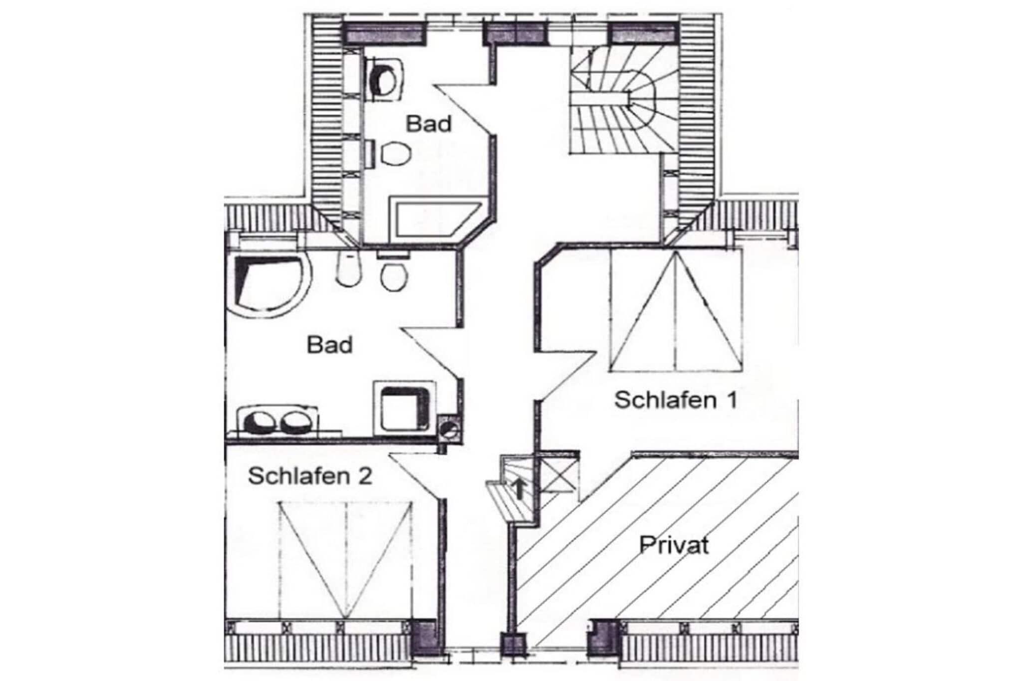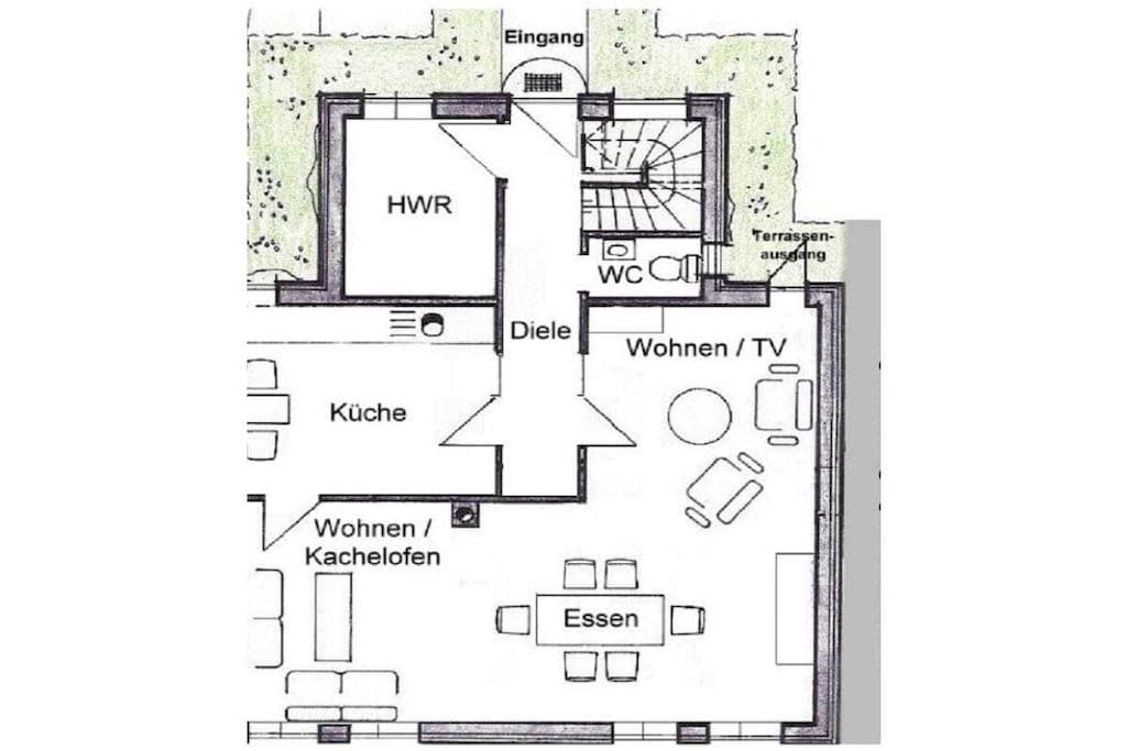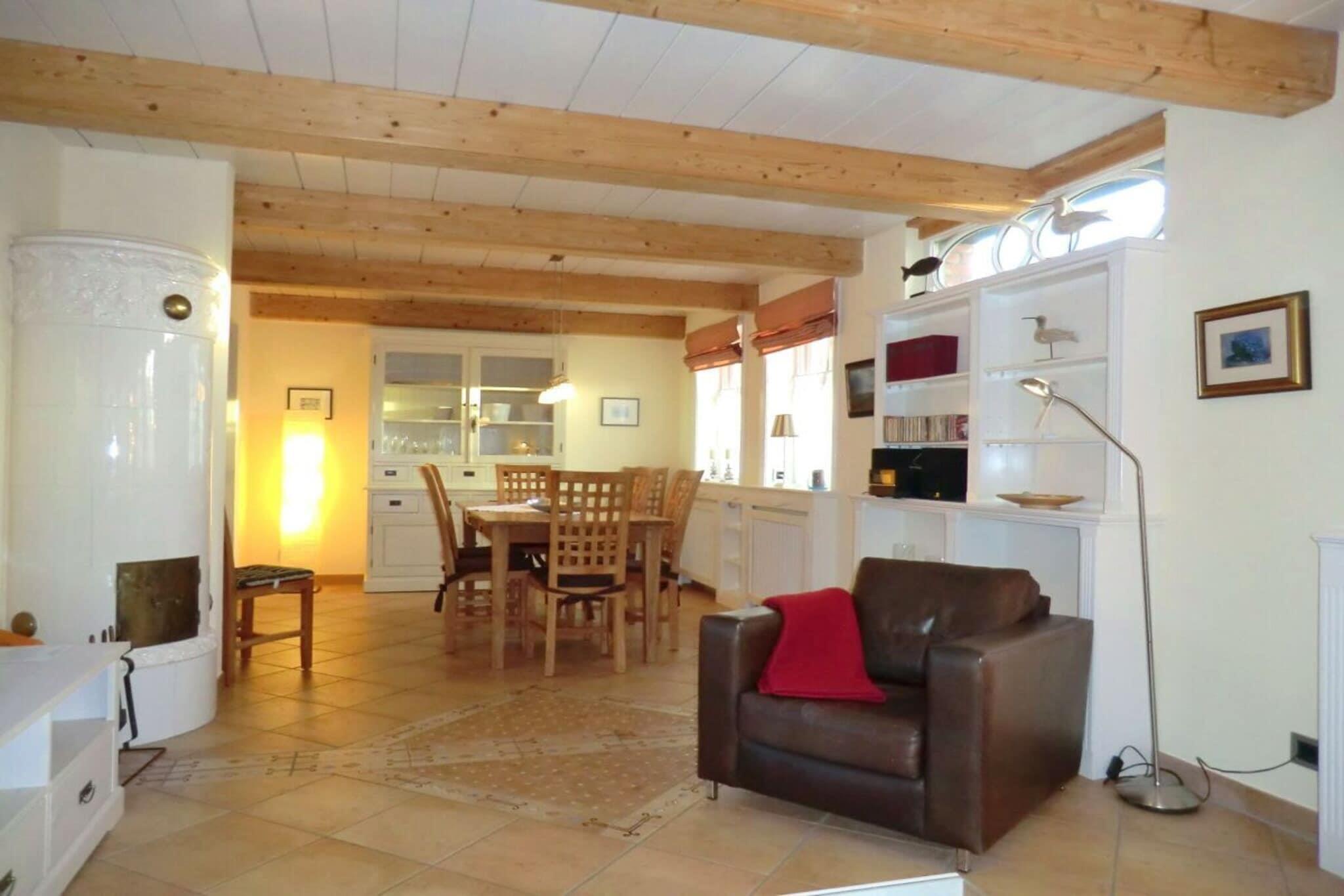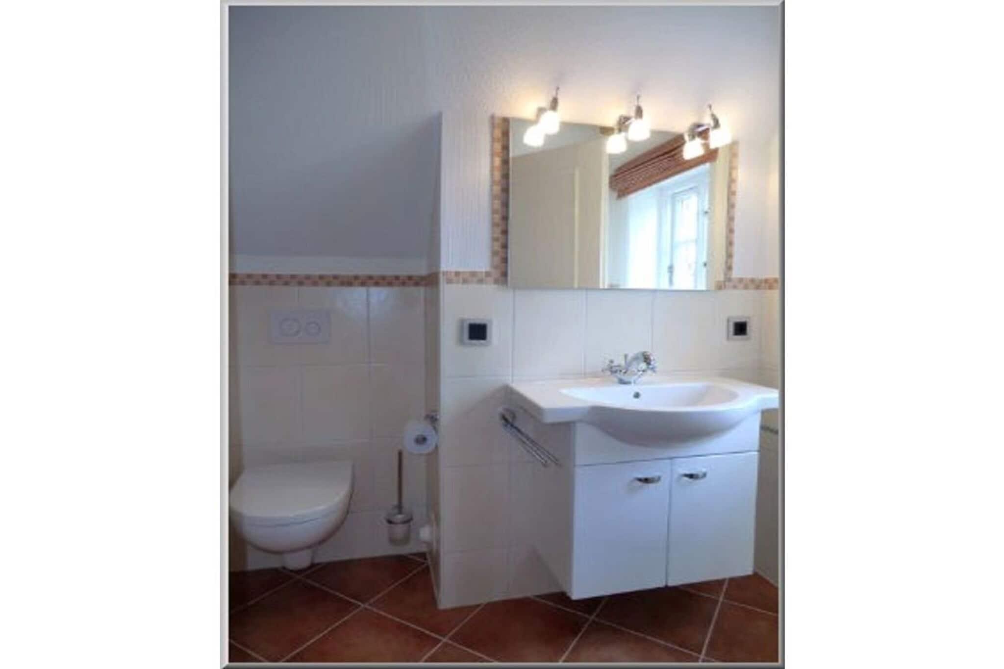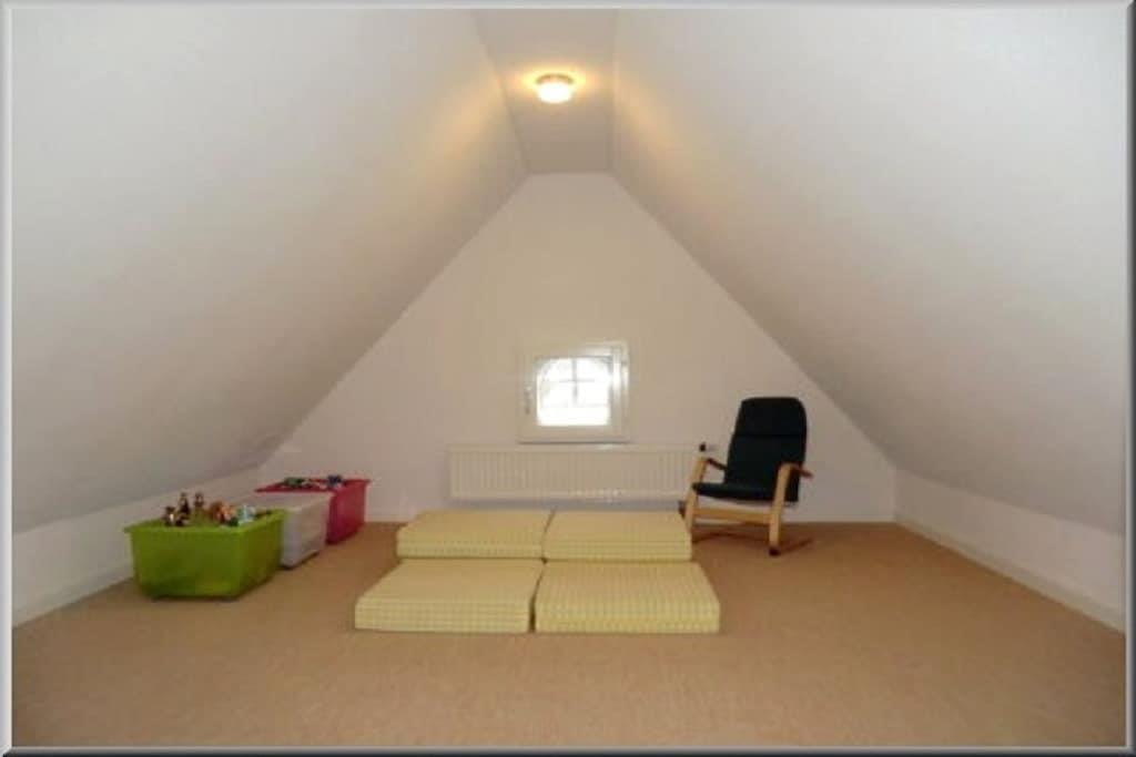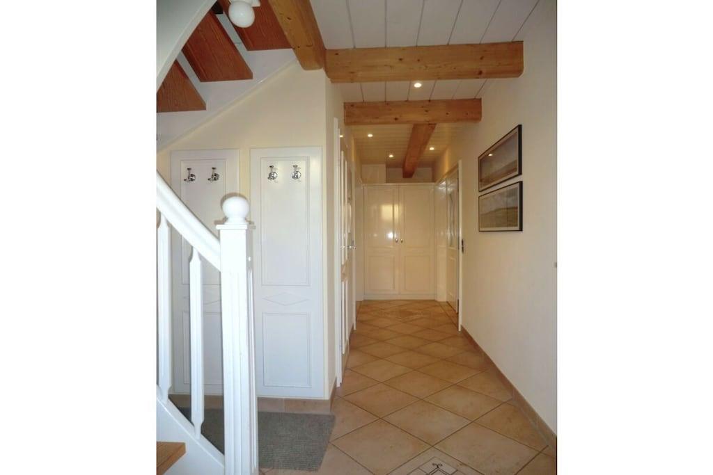 Denne ejendom tilbyder rigelig plads til 2-6 personer (ikke-ryger!) på cirka 140 m². Det rolige og private terrasseområde og den hyggelige atmosfære skaber de perfekte rammer for en afslappende ferie. Stueetage: Entré med trappe og garderobe, bryggers med vaskemaskine og tørretumbler, gæstetoilet, køkken med adgang til den rummelige stue og spisestue (med en historisk kakkelovn, to fladskærms-tv'er, dvd-afspiller osv.) og adgang til terrassen. Første sal: Brusebad/toilet, yderligere badeværelse med badekar, stor bruseniche med regnbruser og toilet, to soveværelser med hver en dobbeltseng, trappe til loftet. Loft: Børneværelse med to enkeltsenge, dejligt separat legeområde til børn.