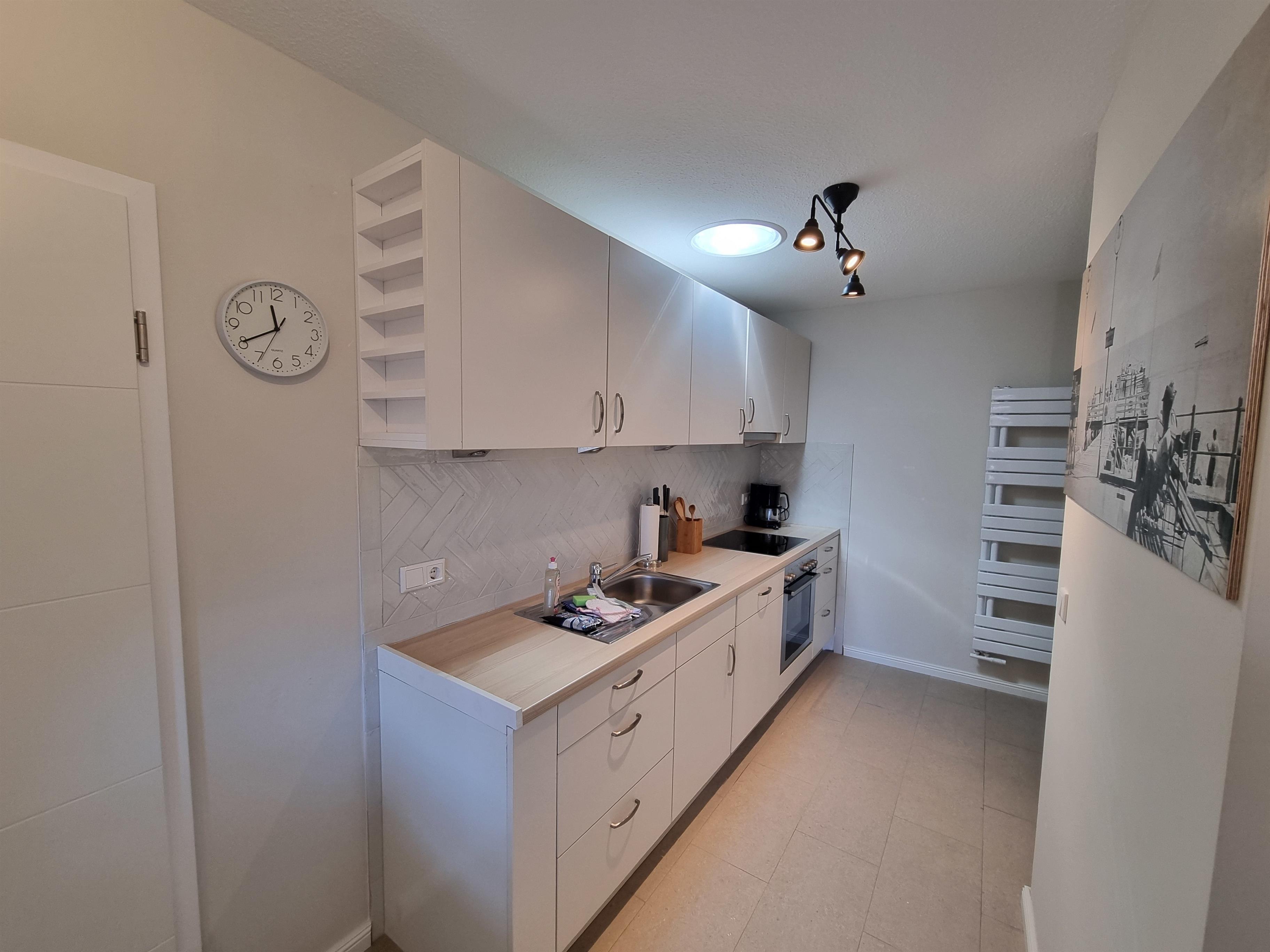 Mitten in der Innenstadt, nur 100m vom Strand entfernt, befindet sich im 2 Obergeschoss diese kleine 2 Zimmerwohnung mit 42 qm. Neben der offenen Küche mit Herd, Backofen und einem Kühlschrank, verfügt die Wohnung über ein Schlafzimmer mit einem Doppelbett von 1,80x2,00m. Im kleinen Wohnzimmer befindet sich neben der Sitzgarnitur ein LED- TV und ein Radio. Das Badezimmer ist mit Dusche, WC, Waschbecken und einem Föhn ausgestattet. Im Spitzboden befindet sich eine kleine Sitzecke zum Lesen. Bettwäsche und Handtücher sind für 25 Euro pro Person inklusive.