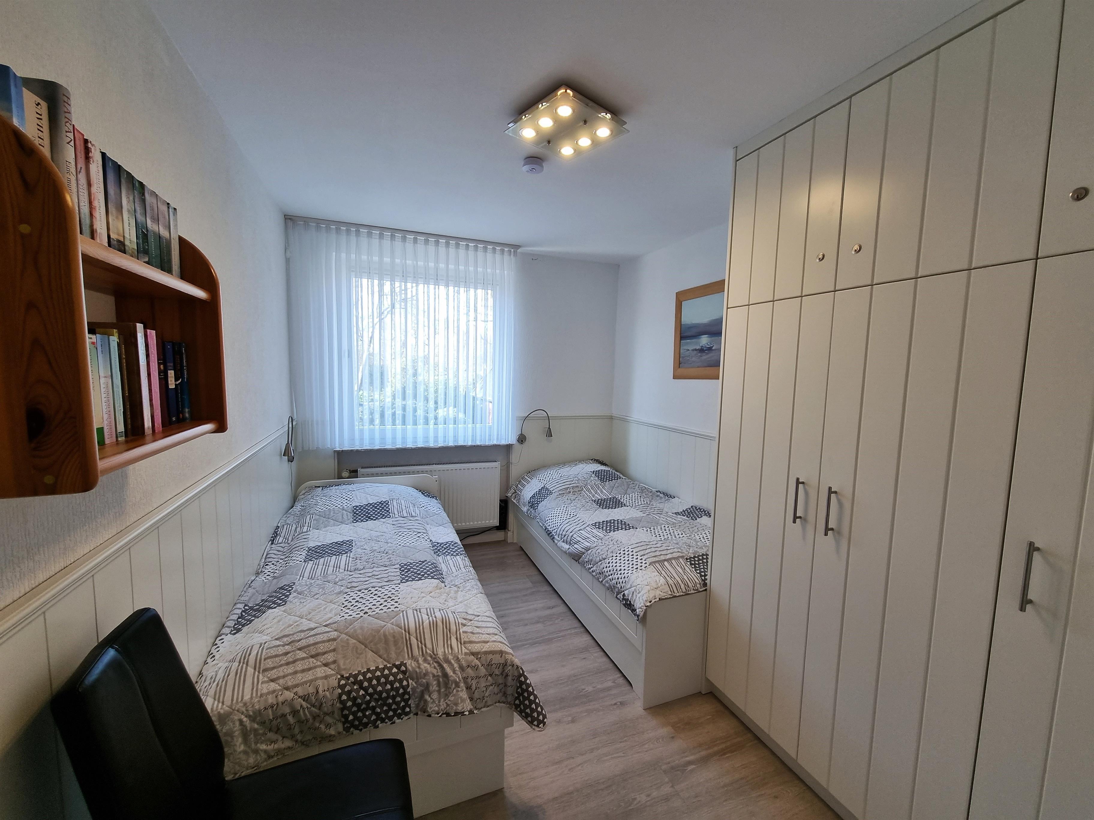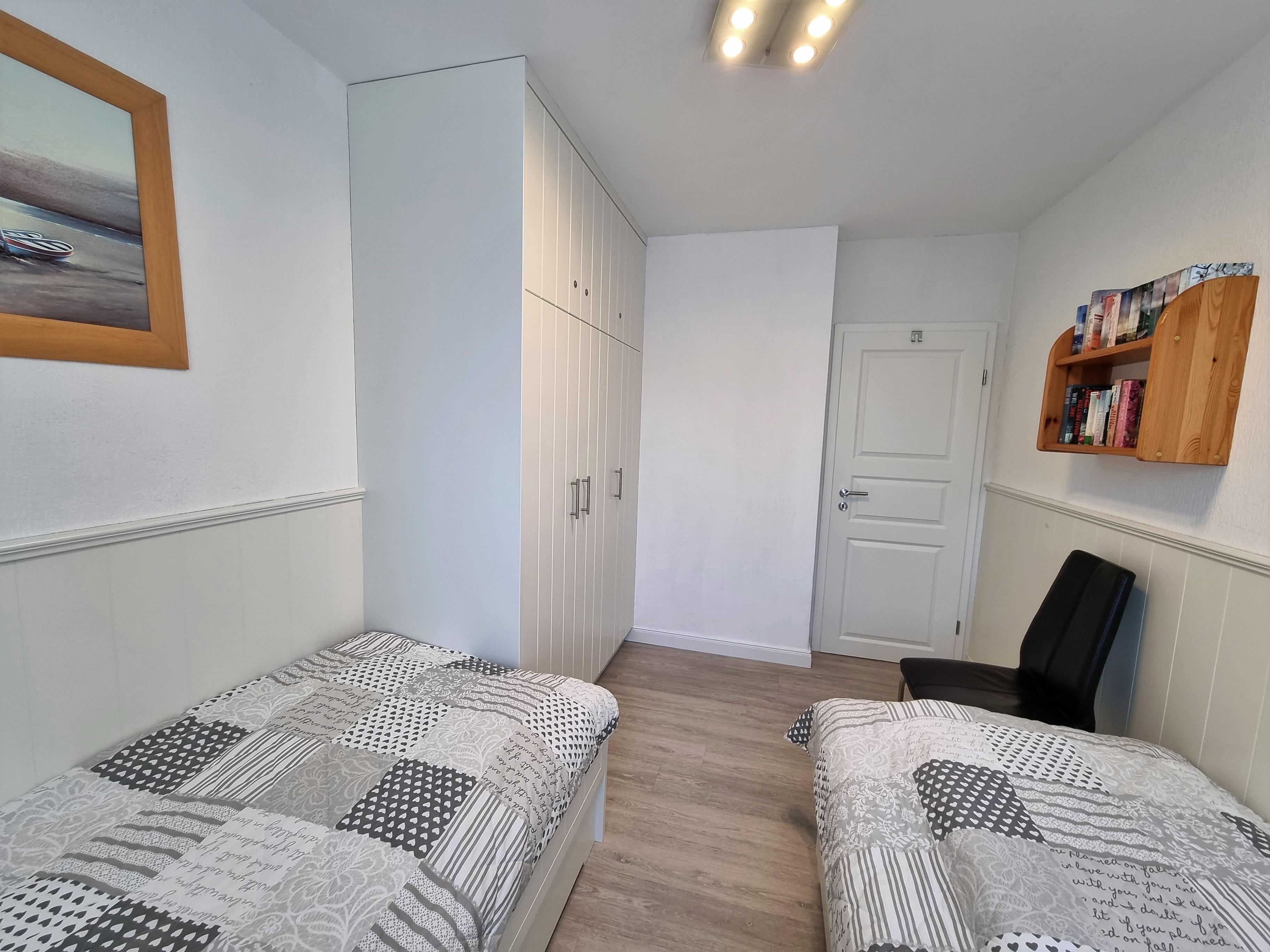 Das Kinderzimmer verfügt über zwei Einzelbetten (je 0,90 x 2,00 m) sowie einen Kleiderschrank. Im modernen Duschbad stehen Ihnen eine Waschmaschine und ein Föhn zur Verfügung, und der Zugang zum Duschbereich ist nahezu barrierefrei.