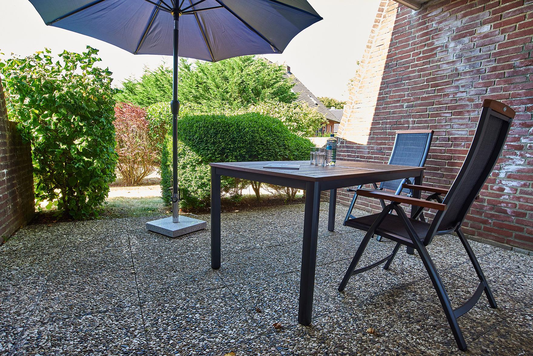 Diese helle Wohnung verfügt außerdem noch über eine große Südwestterrasse mit Sitzmöbeln und Sonnenschirm.