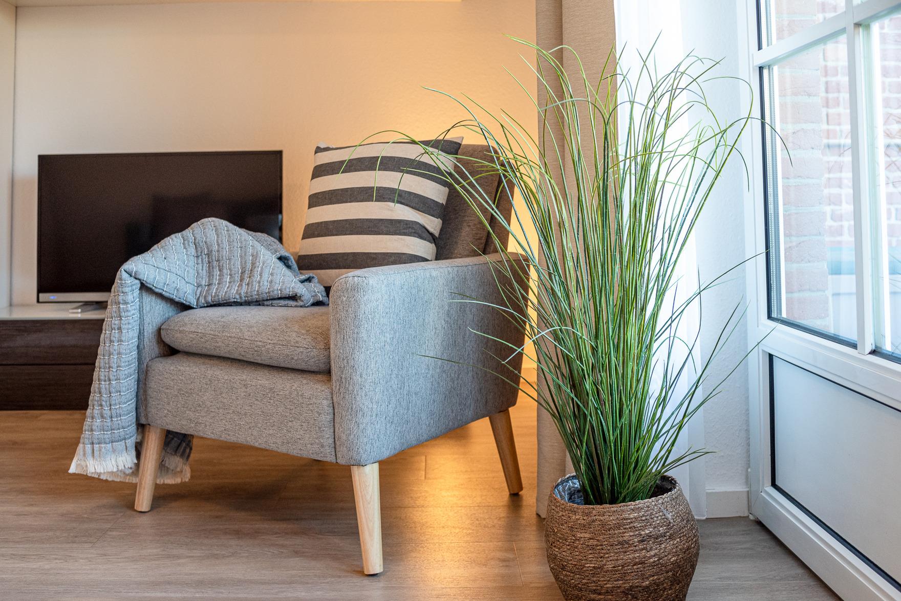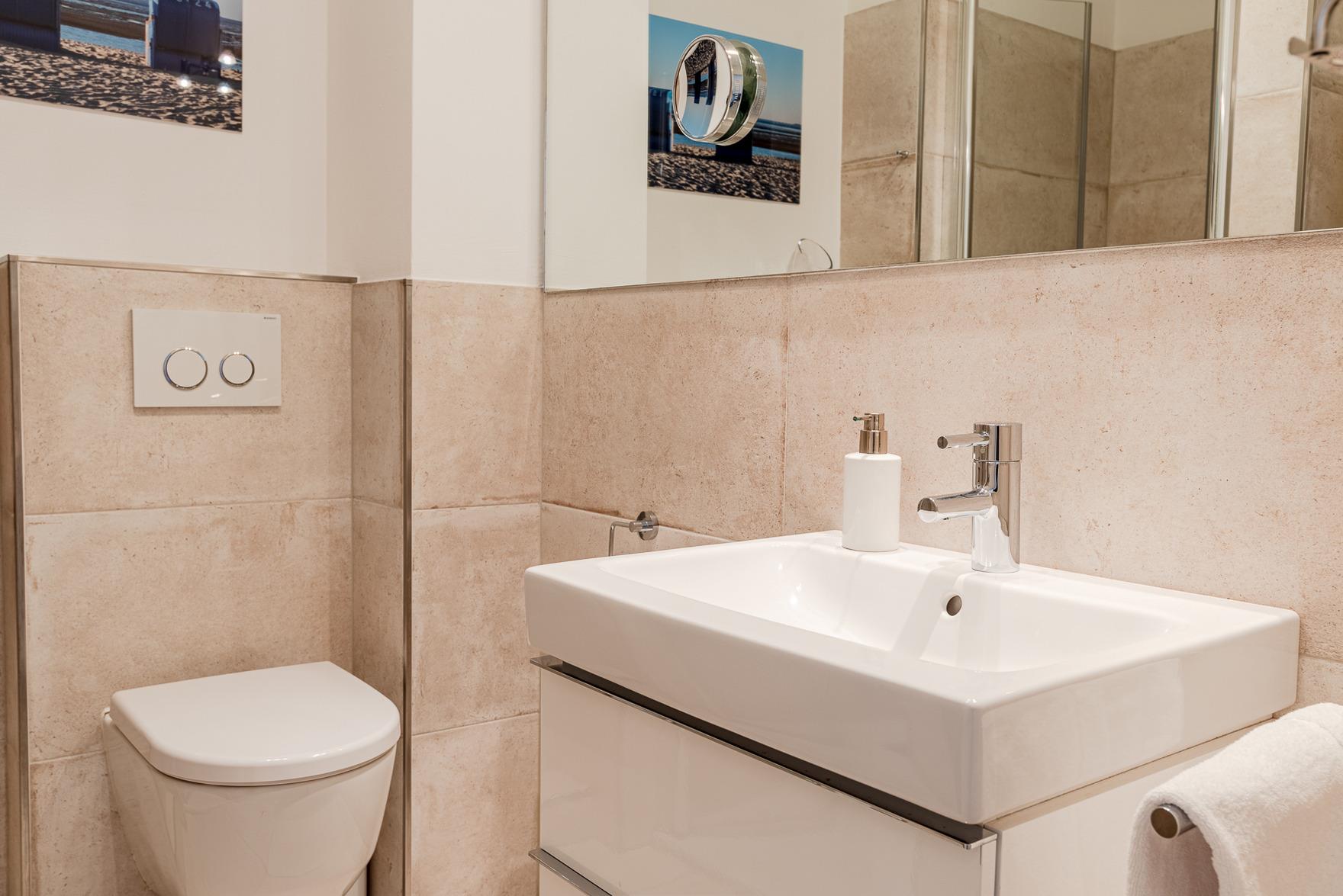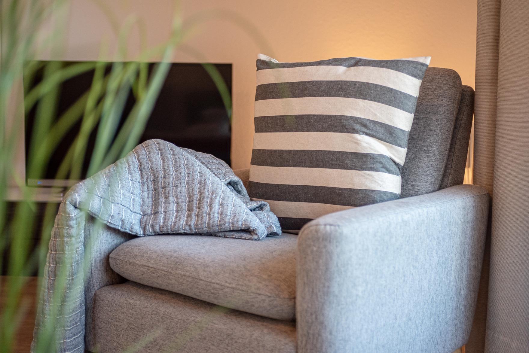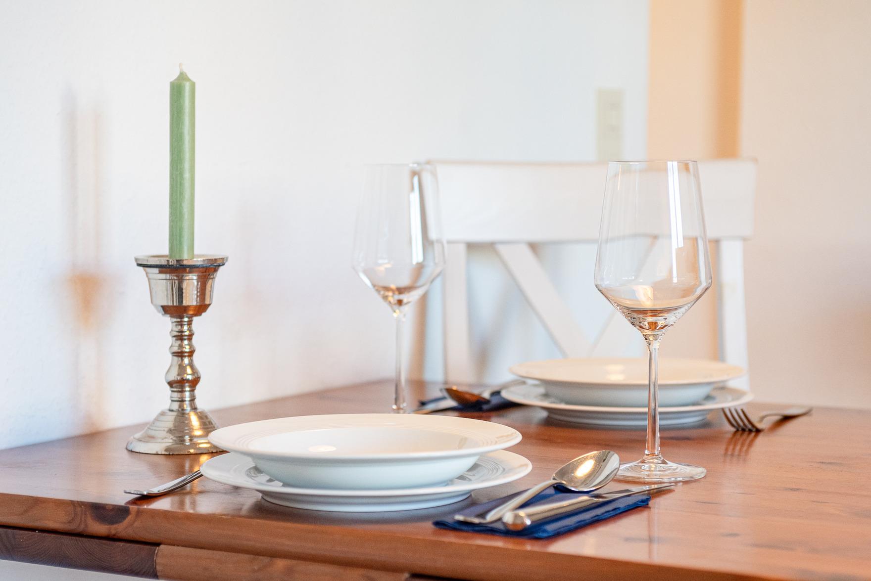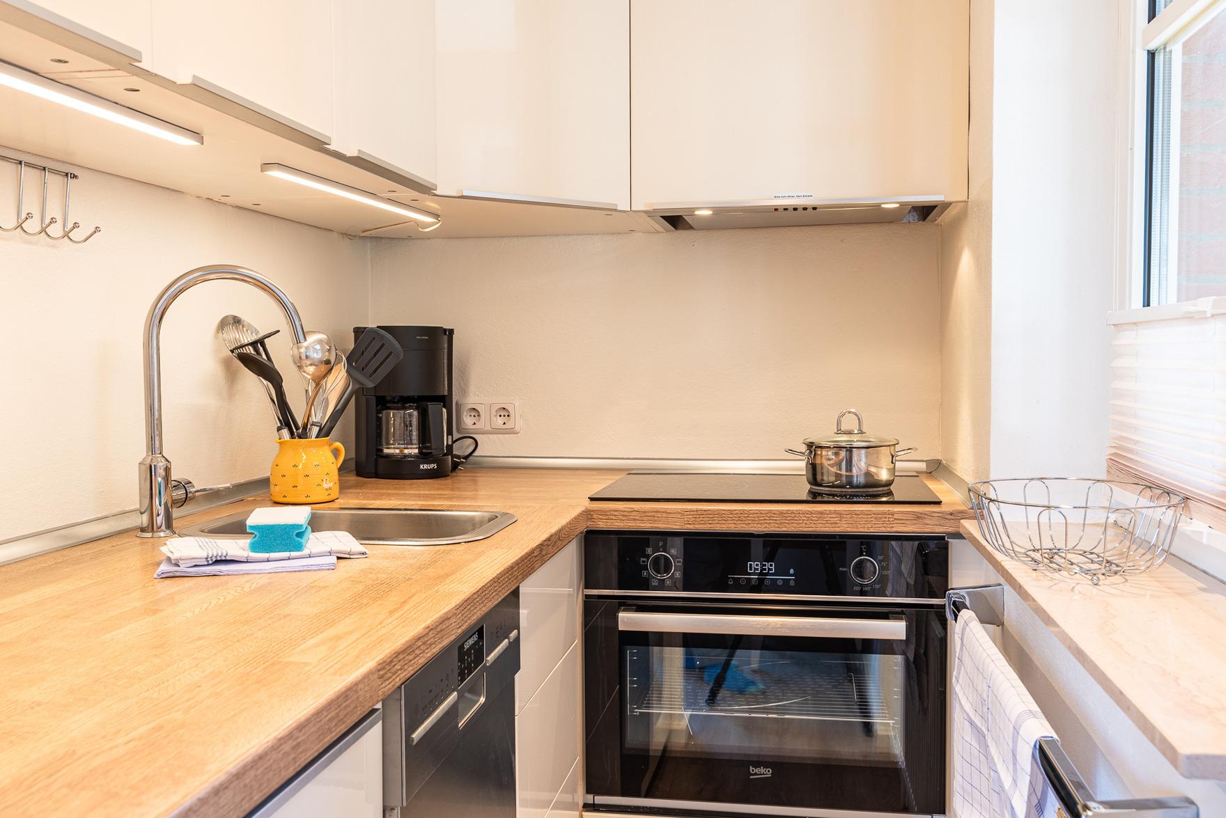 Die Wohnung verfügt über einen hellen Wohn- und Essbereich mit Zugang zur sonnigen Westterrasse. Hier finden Sie eine gemütliche Couch, ein Smart TV und eine offene Küchenzeile mit allen notwendigen Annehmlichkeiten vor. Zusätzlich gibt es ein Schlafzimmer mit einem Doppelbett (1,80m x 2,00m) und einem Kleiderschrank. Ein Badezimmer mit Dusche, WC und Handtuchheizung steht Ihnen ebenfalls zur Verfügung.