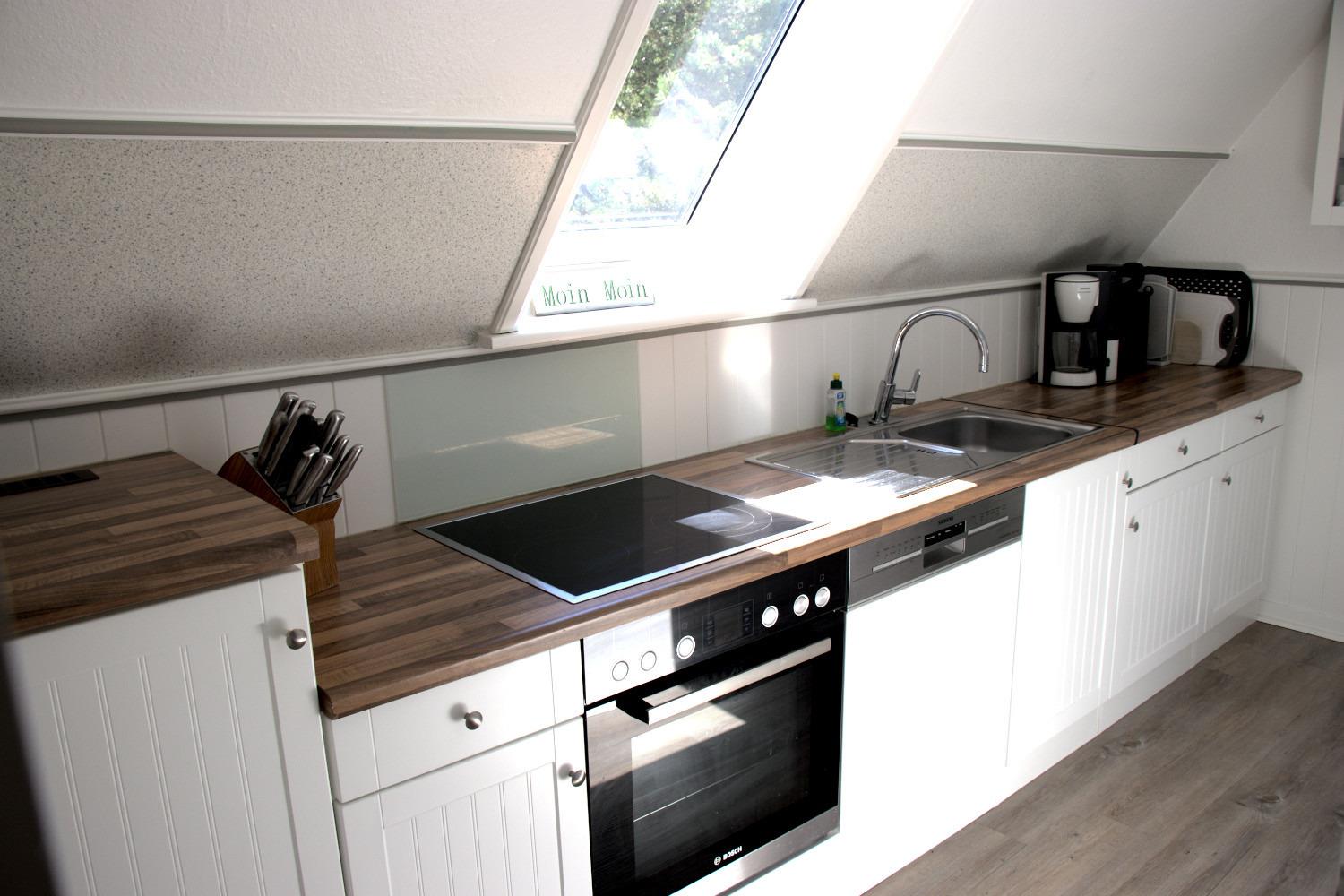 Die neue[nbsp] Küche ( separat) bietet alles, was zum täglichen Kochen benötigt wird: Backofen, Geschirrspüler u.v.m. Das Wohnzimmer verfügt über einen[nbsp]hellen Essplatz.