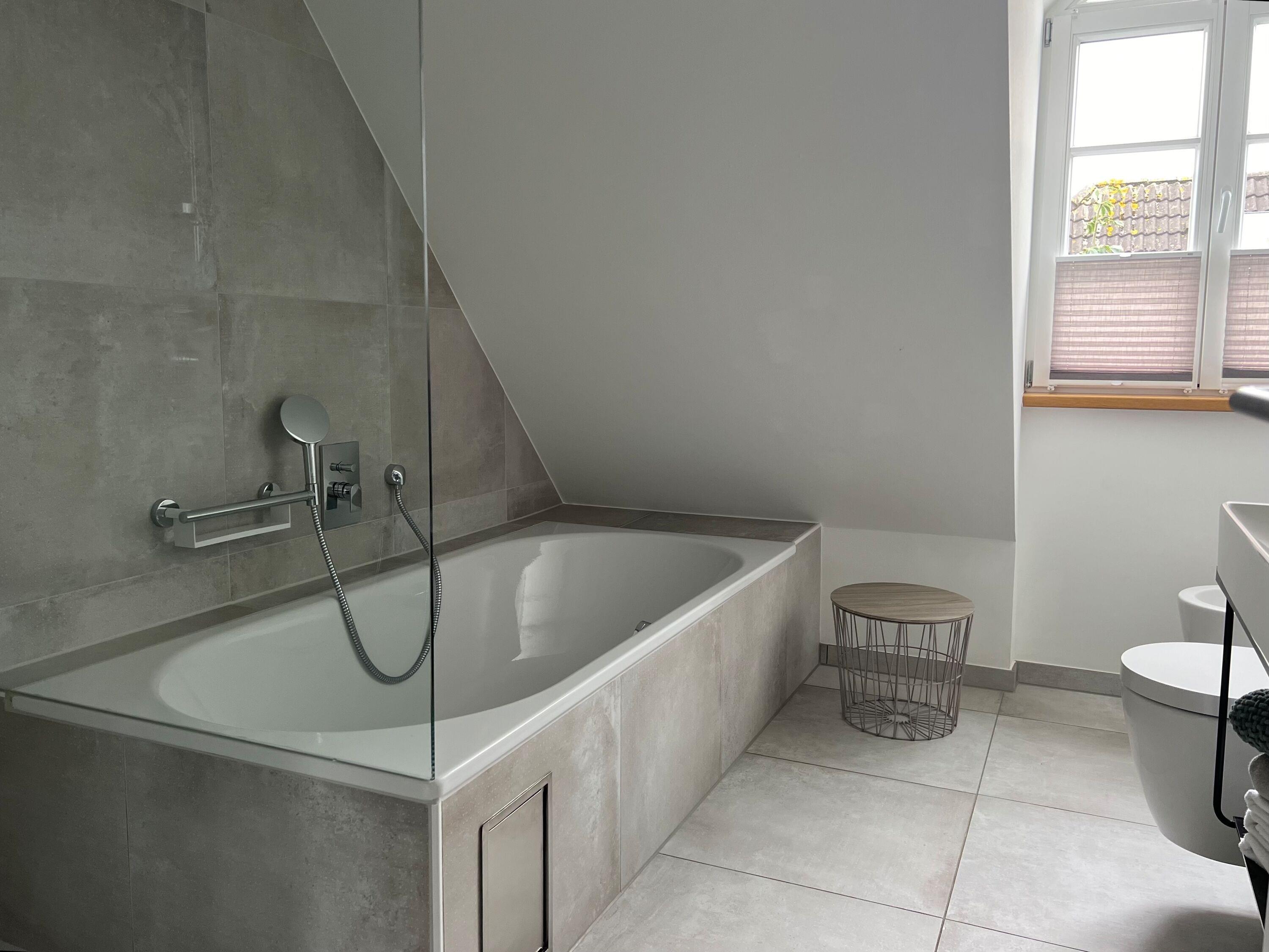 Badeværelse med bruser og badekar