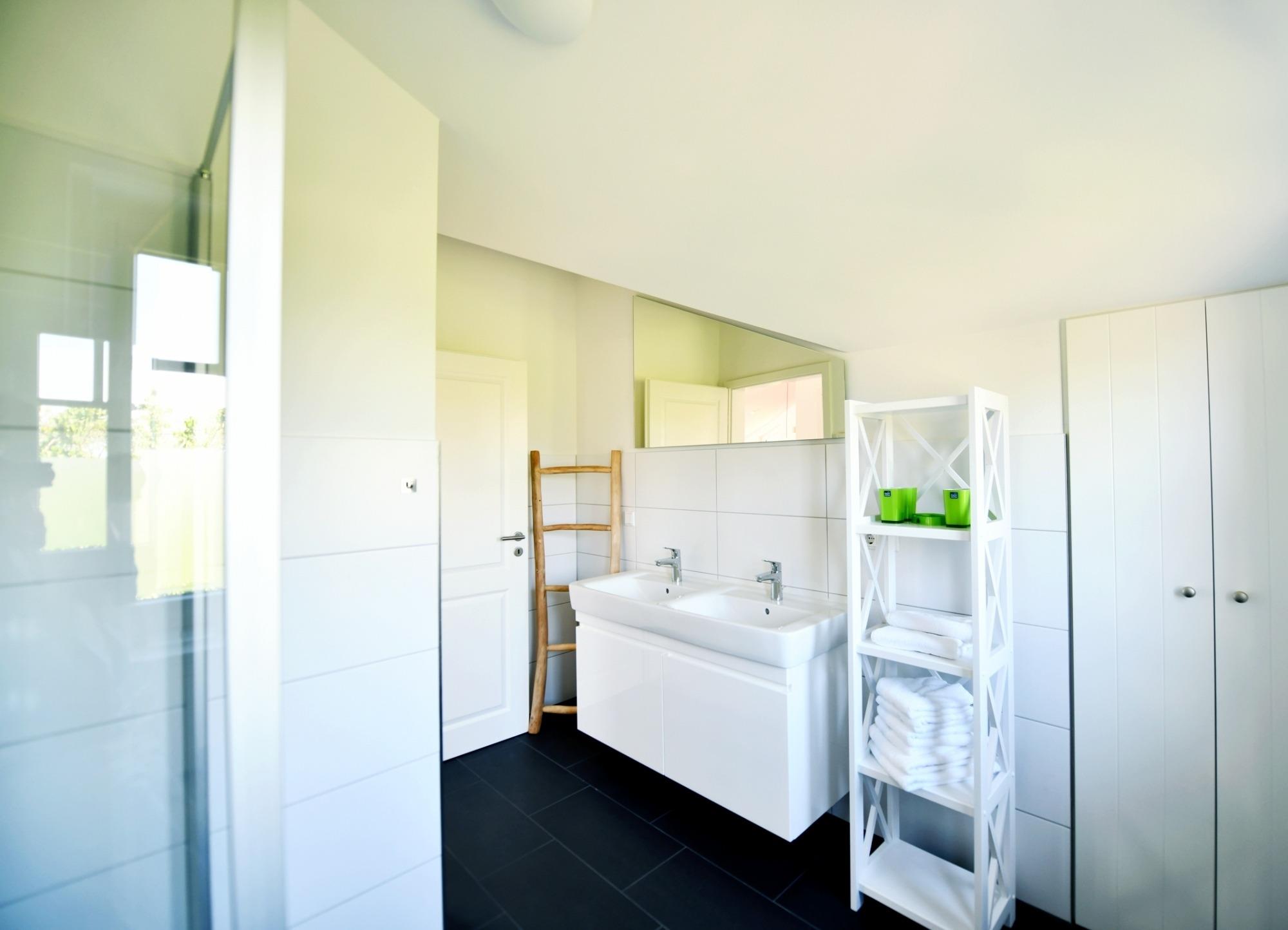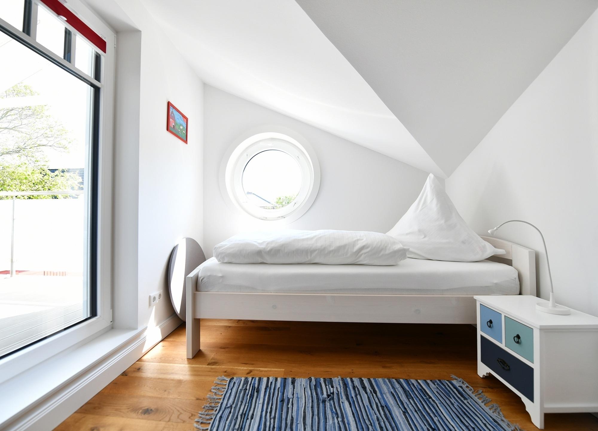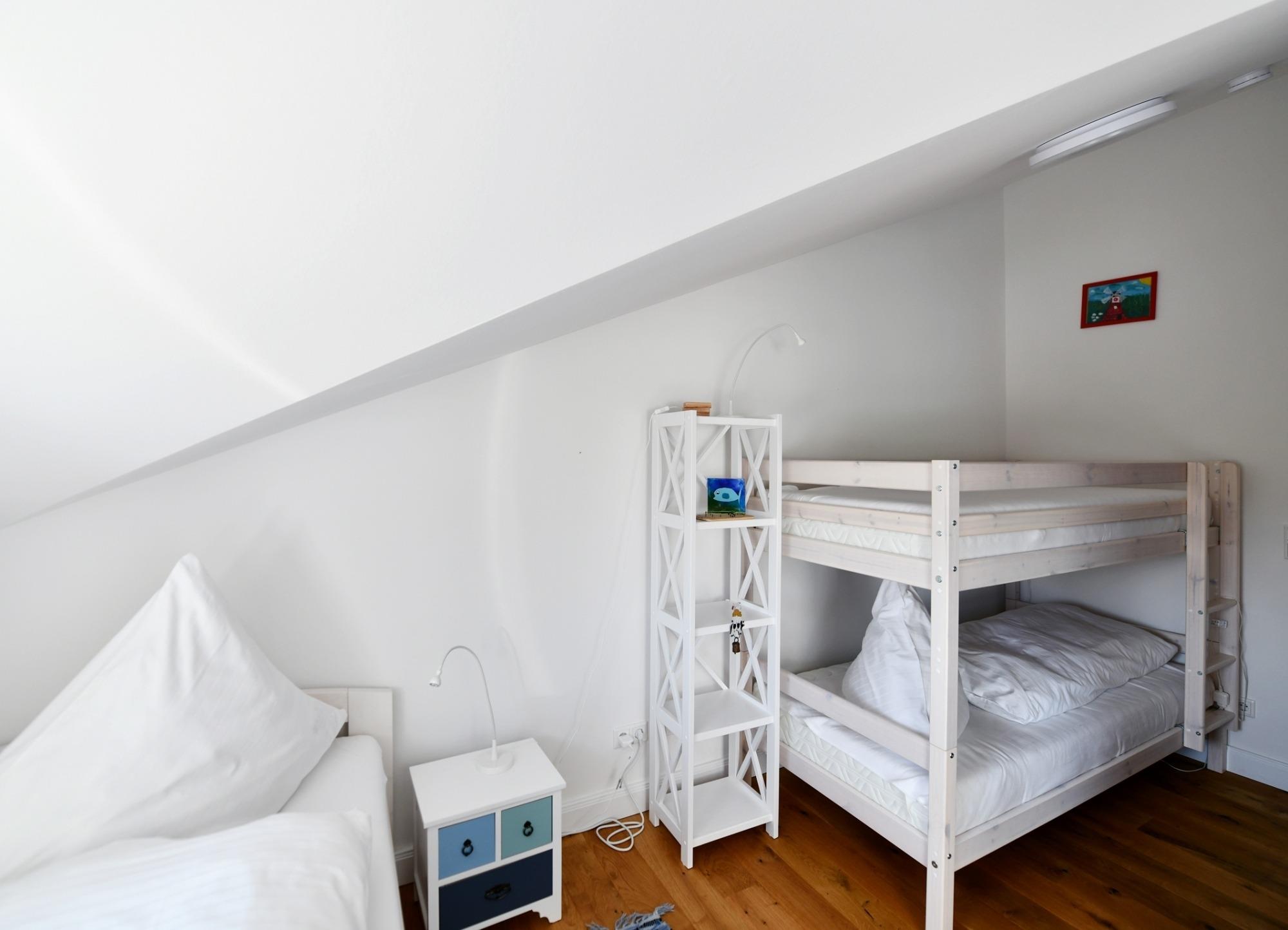 Die Ferienwohnung liegt im Dachgeschoss des Neubaus mit zwei Wohneinheiten, wobei jede ihren separaten Eingang hat.