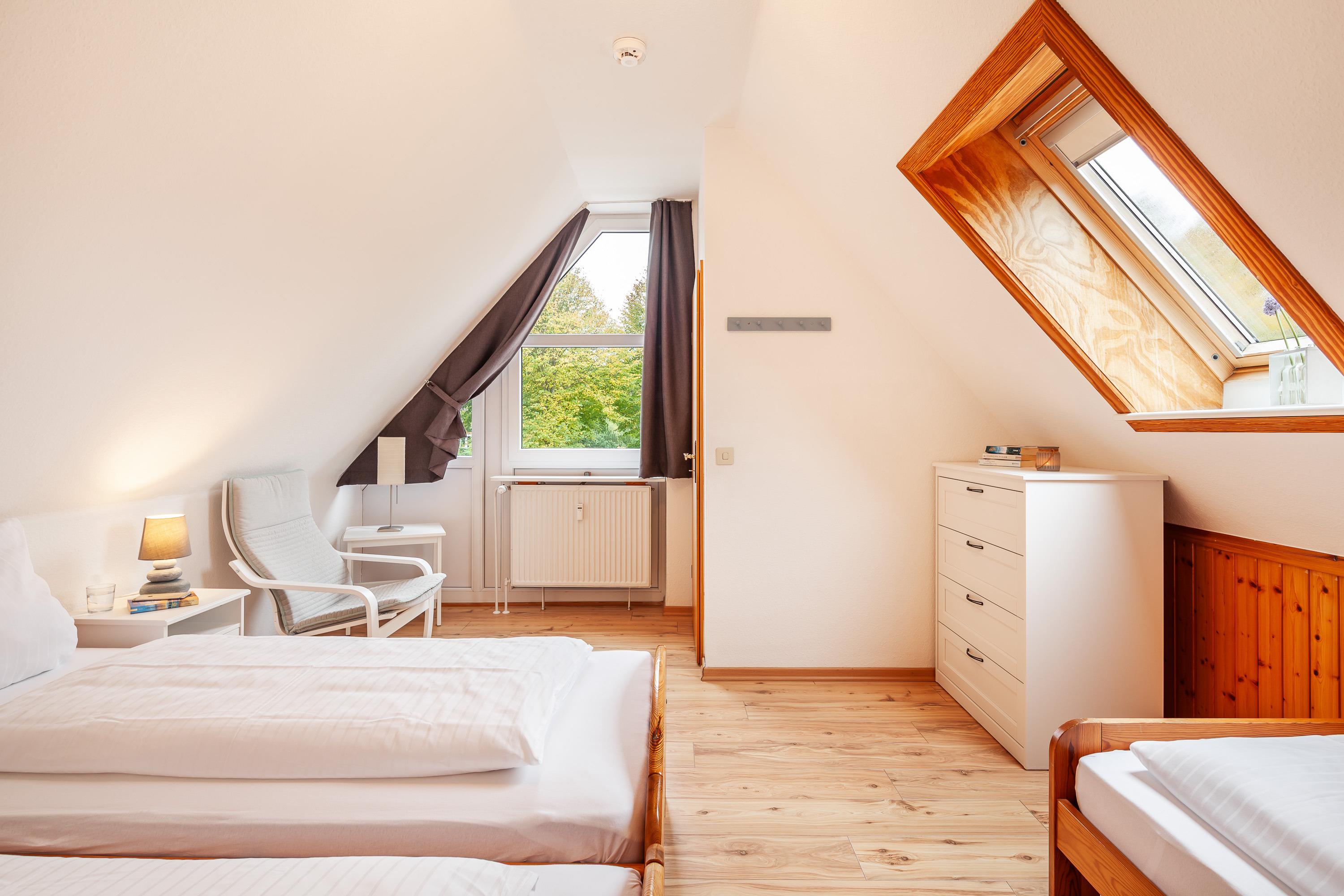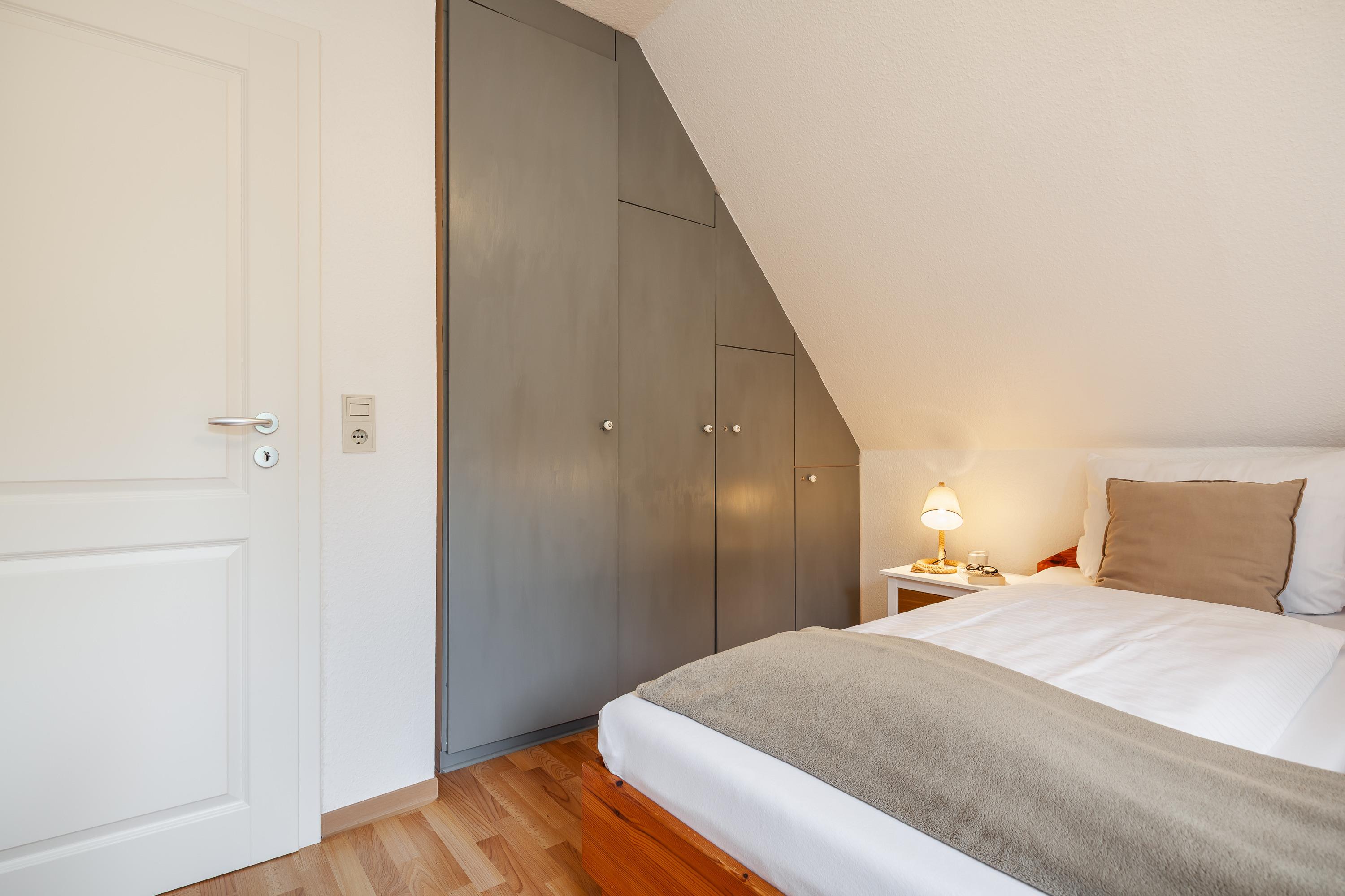 Es sind zwei Schlafzimmer vorhanden. Das Elternschlafzimmer verfügt über ein Doppelbett. Im großzügigen und abgeschlossenen Dachbodenzimmer der Wohnung befindet sich das zweite Schlafzimmer mit drei Betten.