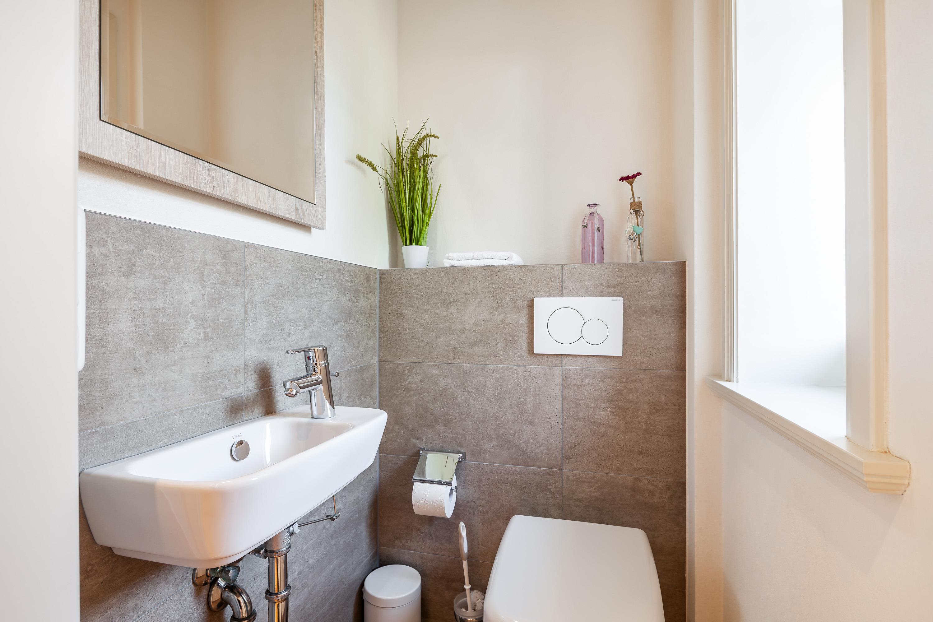 Im Obergeschoss befinden sich zwei Schlafzimmer und ein Duschbad mit Toilette, im Kellergeschoss ist neben der Sauna und dem geräumigen Schlafzimmer mit Doppelbett und großem Flachbildfernseher eine weitere Dusche. Im Erdeschoss ist eine Gästetoilette.