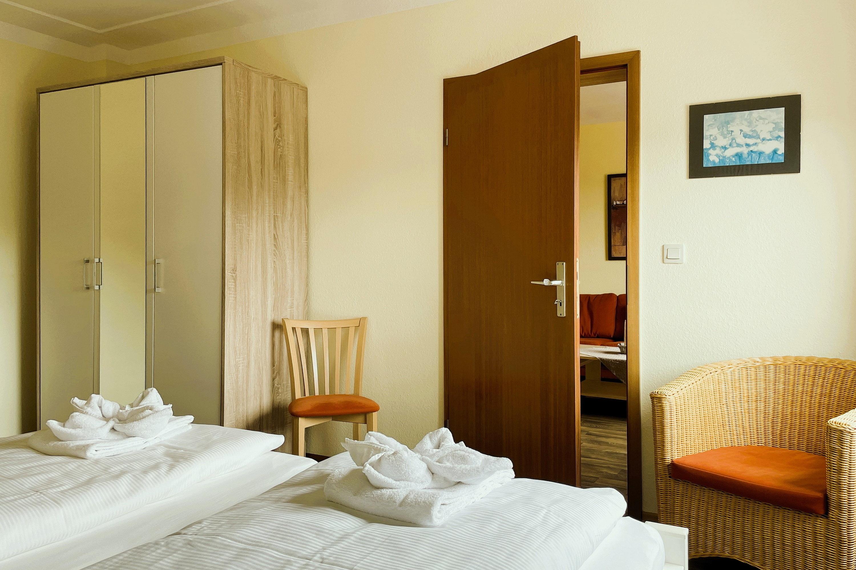 Im zweiten Obergeschoss befindet sich unsere hübsch eingerichtete Altastadtwohnung 4 auf 50 qm. Hier erwartet Sie ein gemütliches Domizil mit einem Wohnzimmer, welches über einen Flachbild-TV, WLAN, eine gemütliche Sitzgruppe und eine gut ausgestattete Küchenzeile verfügt und dabei hell und geräumig ist. Das Bad mit Dusche ist funktional und im separaten Schlafzimmer mit Doppelbett erleben Sie herrliche Träume. Von der Wohnung aus betreten Sie den Balkon, der zur Zeit noch gemeinschaftlich mit der Wohnung 5 genutzt wird. (Ein Sichtschutz ist für die Sommersaison 2021 in Planung). Von hier aus blicken Sie über die Dächer der Wyker Altstadt. Die Wohnung eignet sich ideal für 2 Personen, die gerne mitten im Geschehen Ihren Urlaub verbringen möchten und den Strand fußläufig in wenigen Minuten erreichen möchten.