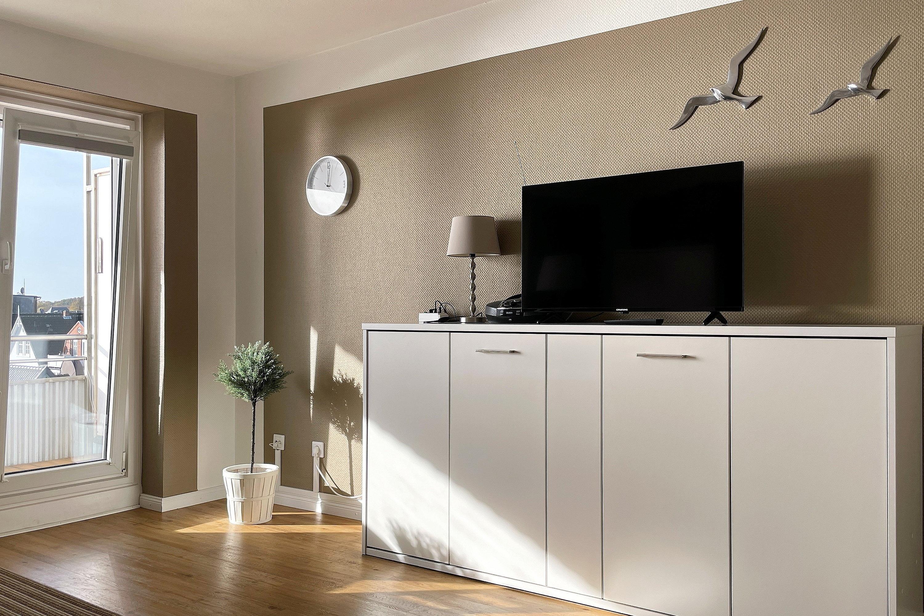 Genießen Sie traumhafte Urlaubstage in unserer ca. 60 qm großen Ferienwohnung "Atlantischer Hof 24" mit bis zu drei Personen. Lichtdurchflutet liegt der geschmackvoll eingerichtete Wohnraum in perfekter Lage mit direktem Blick auf die Nordsee! Relaxen Sie gemütlich in einer Wohnung mit Wohlfühlcharakter während Sie dem Schauspiel von Ebbe und Flut folgen oder genießen Sie die Nordseebrise direkt vom Balkon aus und lassen Ihren Blick über das Meer und den langen Sandstrand schweifen. Zur Wohnung gehört weiterhin ein kleines, funktionales Bad mit Dusche, eine separate Küche um sich selbst versorgen zu können, falls man mal nicht die kulinarischen Köstlichkeiten der fußläufig entfernt liegenden Restaurants genießen möchte und ein Schlafzimmer mit Doppelbett (180x200cm)und einem zusätzlichem TV. Die dritte Schlafmöglichkeit wird durch ein hochwertiges Schrankbett (90x200cm) im Wohnzimmer geboten. Die zentrale Lage ermöglicht es, alle Einkaufsmöglichkeiten des täglichen Bedarfs fußläufig zu erreichen und in nur wenige Schritten sind Sie am Strand und Meer!