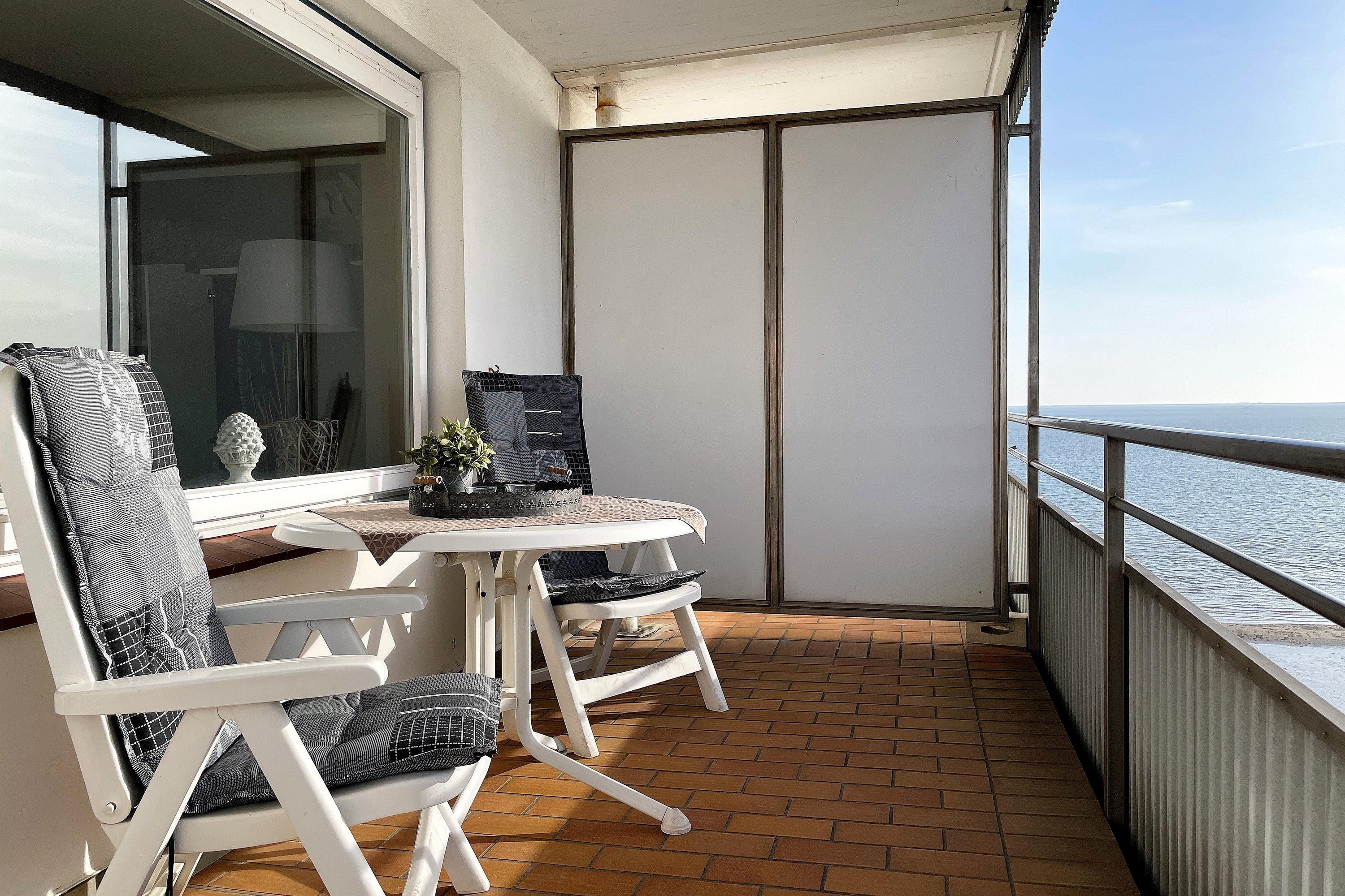 Traumhafte Aussichten auf den Föhrer Strand und das Wattenmeer erwarten Sie direkt aus der Wohnung des Atlantischen Hofs in der Königsstraße in Wyk. Erleben Sie direkt nach dem Aufstehen vom Balkon aus das schöne Wechselspiel von Ebbe und Flut und genießen Sie dabei die frische Föhrer Nordseebrise..
