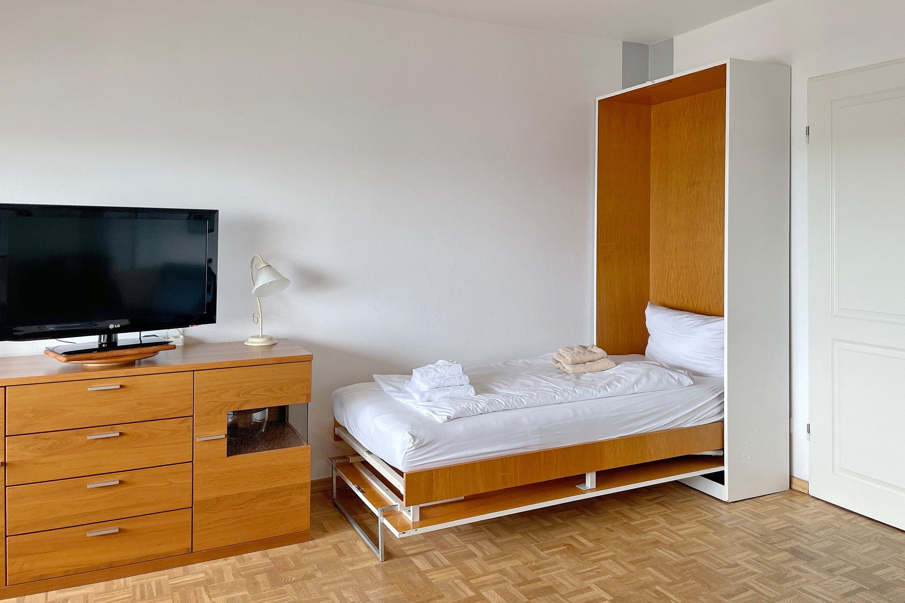 Warme Holzmöbel und eine bequeme Sitzgarnitur im Wohnbereich mit WLAN geben der Wohnung einen einladenden Charakter. Im Wohnzimmer befindet sich weiterhin eine gemütliche Essecke, die direkt am großen Fenster steht und ein Schrankbett (90 x 190 cm), welches eine weitere Schlafmöglichkeit für 1 Person anbietet. Von hier gelangen Sie auch auf den Südbalkon und können die Föhrer Nordseeluft atmen, den Möwen beim Fliegen zuschauen und das Meeresrauschen erleben. Das Schlafzimmer mit zwei Einzelbetten (90 x 200 cm) und Einbauschrank sorgt für eine angenehme Nachtruhe. Das kleine Bad mit Dusche ist hell und funktional und in der modern gestalteten separaten Küche mit Backofen, Ceranfeld und Geschirrspüler lassen sich kleine Gerichte wunderbar zubereiten, wenn Sie nicht in eines der vielen Cafés und leckeren Restaurants speisen möchten, die Sie überall in der Innenstadt finden werden. Kaum gehen Sie aus dem Haus haben Sie sämtliche Einkaufsmöglichkeiten, Cafés und Restaurants sowie natürlich Strand und Meer in unmittelbarer Nähe. Dem Haus stehen insgesamt 15 PKW-Stellplätze zur Verfügung, von denen Sie gerne einen Nutzen können falls er frei ist. Ansonsten ist fußläufig der große Inselparkplatz erreichbar. Genießen Sie den Erholungswert dieser Wohnung und schalten Sie vom Alltag ab. Erleben Sie entspannte Tage ohne Hektik sondern lassen Sie sich den Nordseewind ins Gesicht wehen und spüren Sie den feinen Sand des Strandes unter Ihren Füßen.