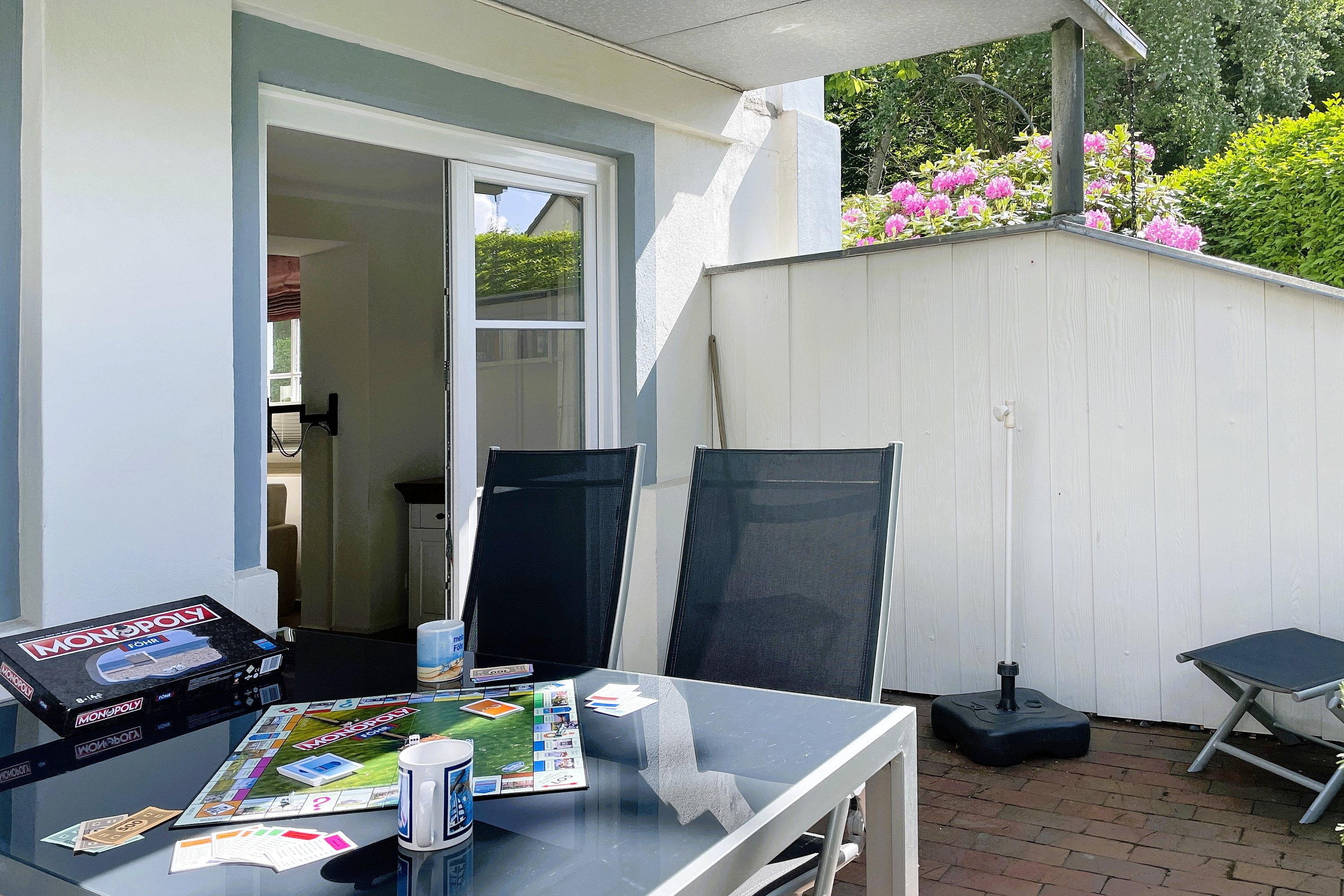 Von der in Hochparterre befindlichen Eingangstüre gehen Sie einige Stufen hinab ins Erdgeschoss, wo sich die Unterkunft Blanker Hans befindet. Die modern und liebevoll eingerichtete Ferienwohnung ist für bis zu drei Personen geeignet und verspricht traumhafte Urlaubstage. Der offene Wohnbereich mit einladender hochwertiger Schlafcouch (150 x 200 cm), Flachbild TV, DVD-Player, WLAN, Telefon und Stereoanlage und integrierter vollausgestatteter Küche mit Backofen, Mikrowelle und Geschirrspüler sowie großzügigem Essbereich ist hell und freundlich. Von hier aus gelangen Sie auf die kleine, gepflegte Terrasse, die ruhig und geschützt liegt. Das Schlafzimmer verfügt über zwei Einzelbetten (80 x200 cm), wo Sie morgens ausgeruht aufwachen können. Das Bad ist hell und verfügt über eine Dusche mit Schiebetür und Handtuchheizung. Insgesamt ist dies ein Domizil mit Wohlfühlcharakter. Egal ob Sie einen ruhigen oder aktiven Urlaub planen, die Wohnung Blanker Hans läßt durch Ihre Lage und die Ausstattung keine Wünsche offen!