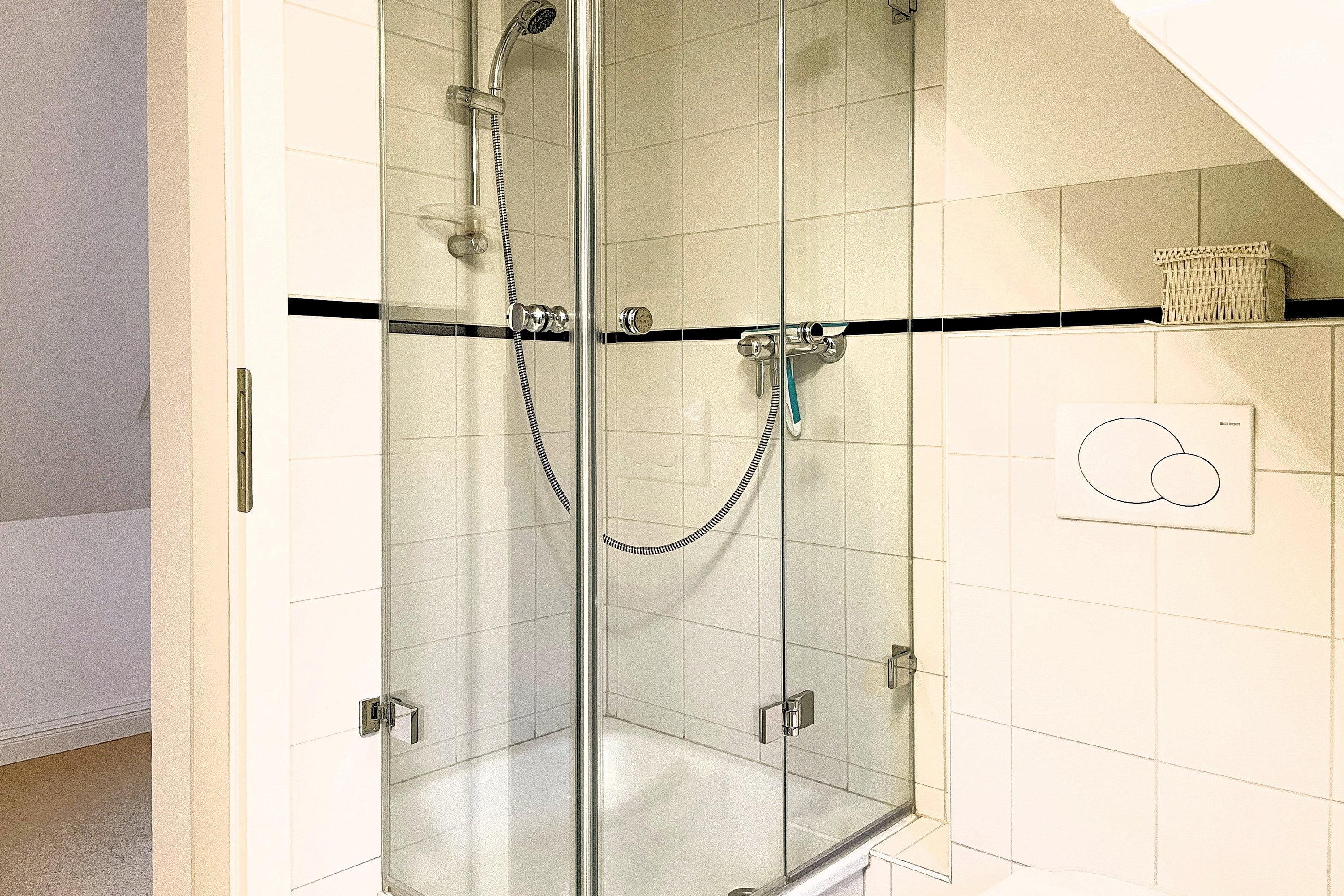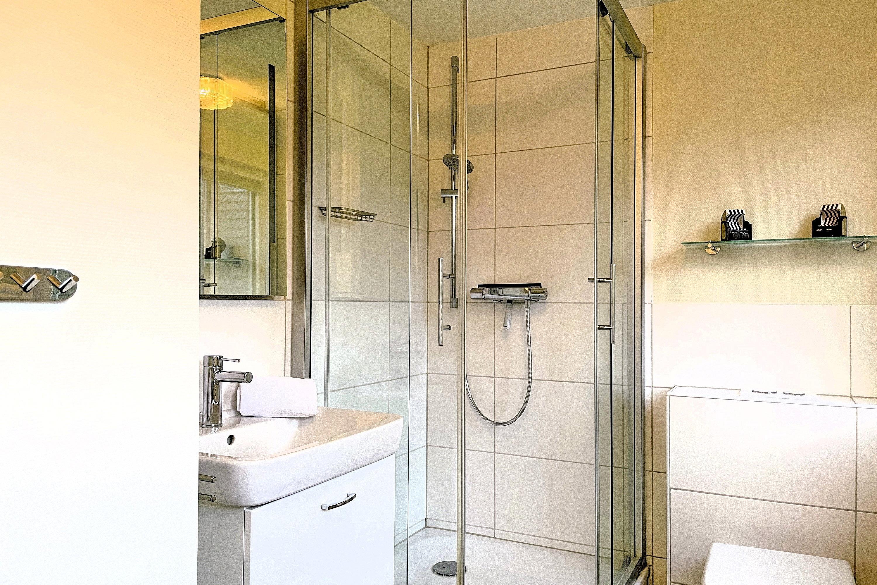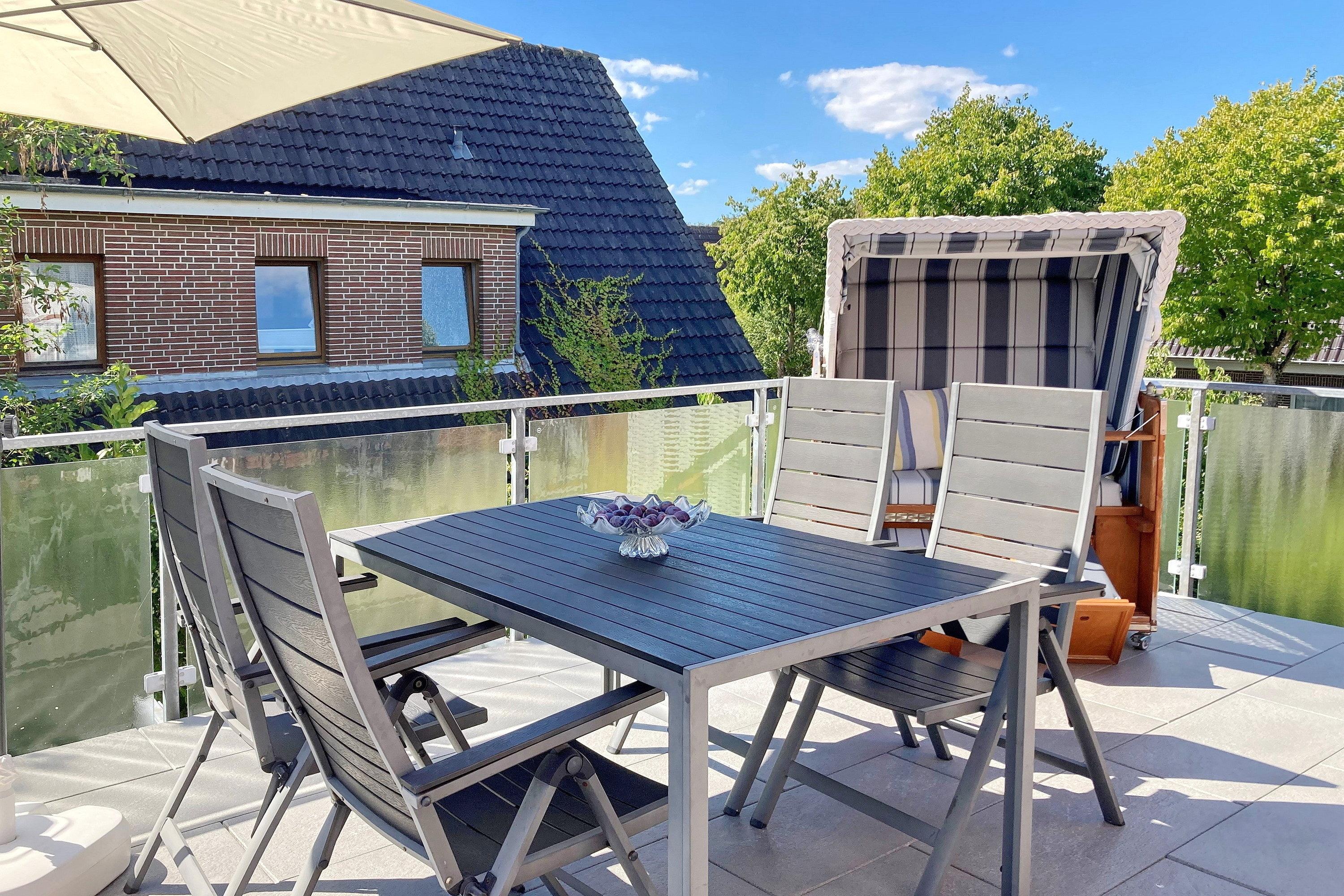 Das Haus Brossolat liegt zentral im Rebbelstieg unweit des bekannten Friesenmuseums. Das gepflegte Grundstück ist mit wunderschönen Blumen bewachsen und bietet Ihnen drei Wohnungen namens Brossolat EG, Brossolat EG2 und Brossolat OG jeweils mit separaten Eingängen. Die Wyker Innenstadt und der Stadtwald mit dem beliebten Abenteuerspielplatz sind nur wenige Gehminuten entfernt. Die exklusive und geschmackvolle Obergeschoßwohnung Brossolat OG befindet sich im ersten Stock des Hauses Brossolat und besticht mit Ihrem ganz eigenem Charme. Der offene Wohnbereich ist hell und freundlich. Hier finden Sie sowohl eine gemütliche Sitzecke mit großem Flachbild-TV,WLAN und Stereoanlage vor als auch den einladenden Essbereich mit hauseigenem Hochstuhl und eine kleine Kinderecke zum Malen und Spielen. Die offen gehaltene Küche ist charmant und sehr gut ausgestattet mit Spülmaschine, Mikrowelle, Ceranfeld und Backofen kann man hier wunderbar die friesischen Gerichte nachkochen und dabei doch am Familienleben teilhaben dank der herrlich offenen Architektur, die Küche und Wohnbereich so harmonisch vereint. Ein helles Schlafzimmer mit Doppelbett und Fernseher ermöglicht den Weg auf die nach Süden ausgerichtete Dachterrasse (ca.20m), welche mit ihren Gartenmöbeln im Sommer zu herrlichen Sonnenstunden einlädt. Das zweite Schlafzimmer ebenfalls mit Fernsehgerät und einem kleinen Schranktresor wirkt behaglich und lädt zu schönen Träumen ein. Hier schließt sich das zweite helle Badezimmer mit Dusche an. Im Keller befindet sich zur gemeinschaftlichen Nutzung eine Waschmaschine und ein Trockner, die Ihnen kostenlos zur Verfügung stehen.
