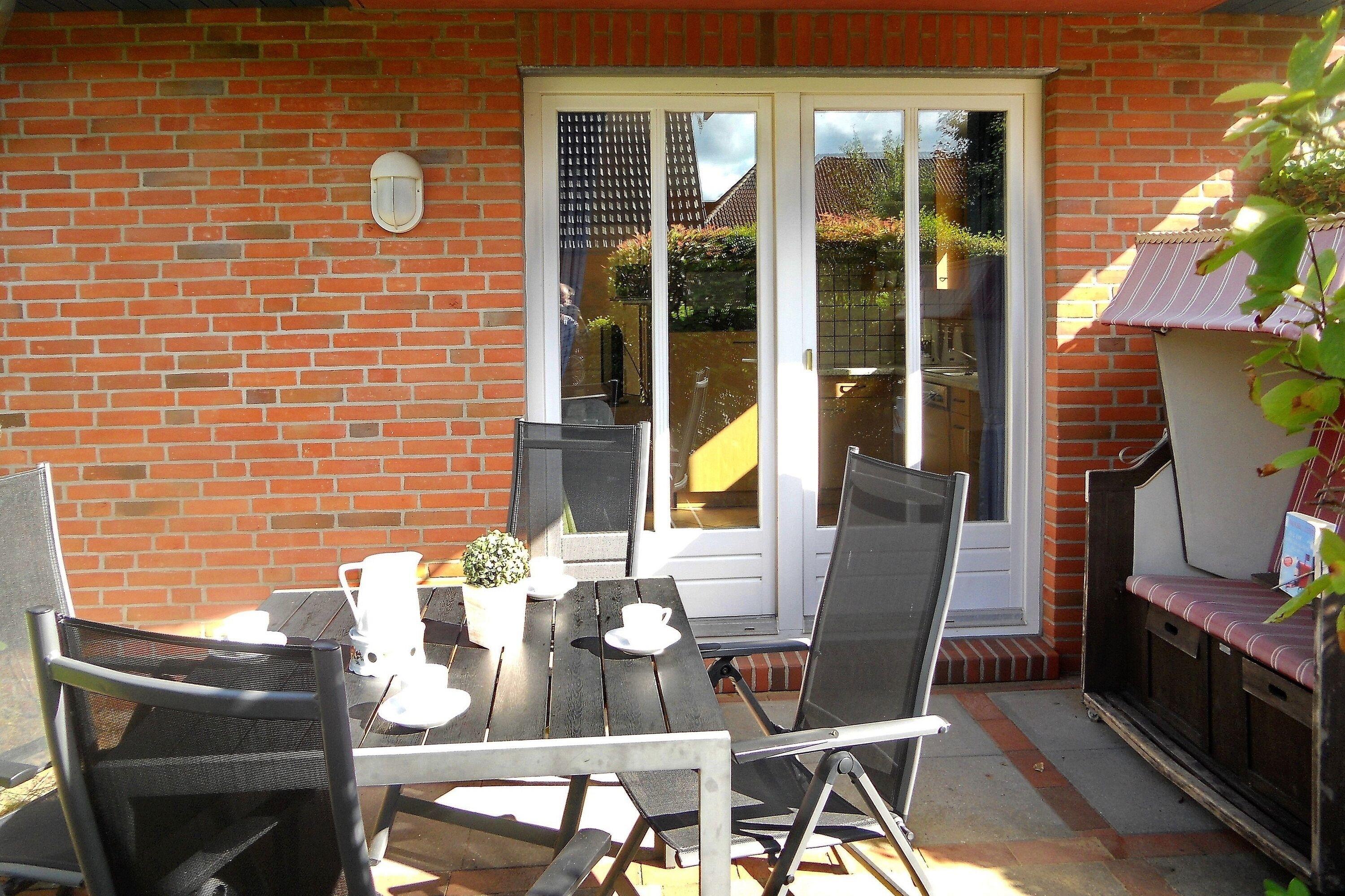 Die Terrasse ist nach Süden ausgerichtet, sodass Sie von morgens bis abends die Sonne genießen können. Der Zugang erfolgt direkt aus dem Wohn,-Küchenbereich über eine doppelflügelige Terrassentür. Die Lage des gesamten Terrassenbereiches ist absolut ruhig und so gestaltet, dass ein Sichtschutz und die grüne Bepflanzung zum Nachbargrundstück Ihnen die Privatsphäre gestattet, die Sie sich wünschen. Dies ist ein Domizil zum Wohlfühlen und zum Genießen Ihres Urlaubes.