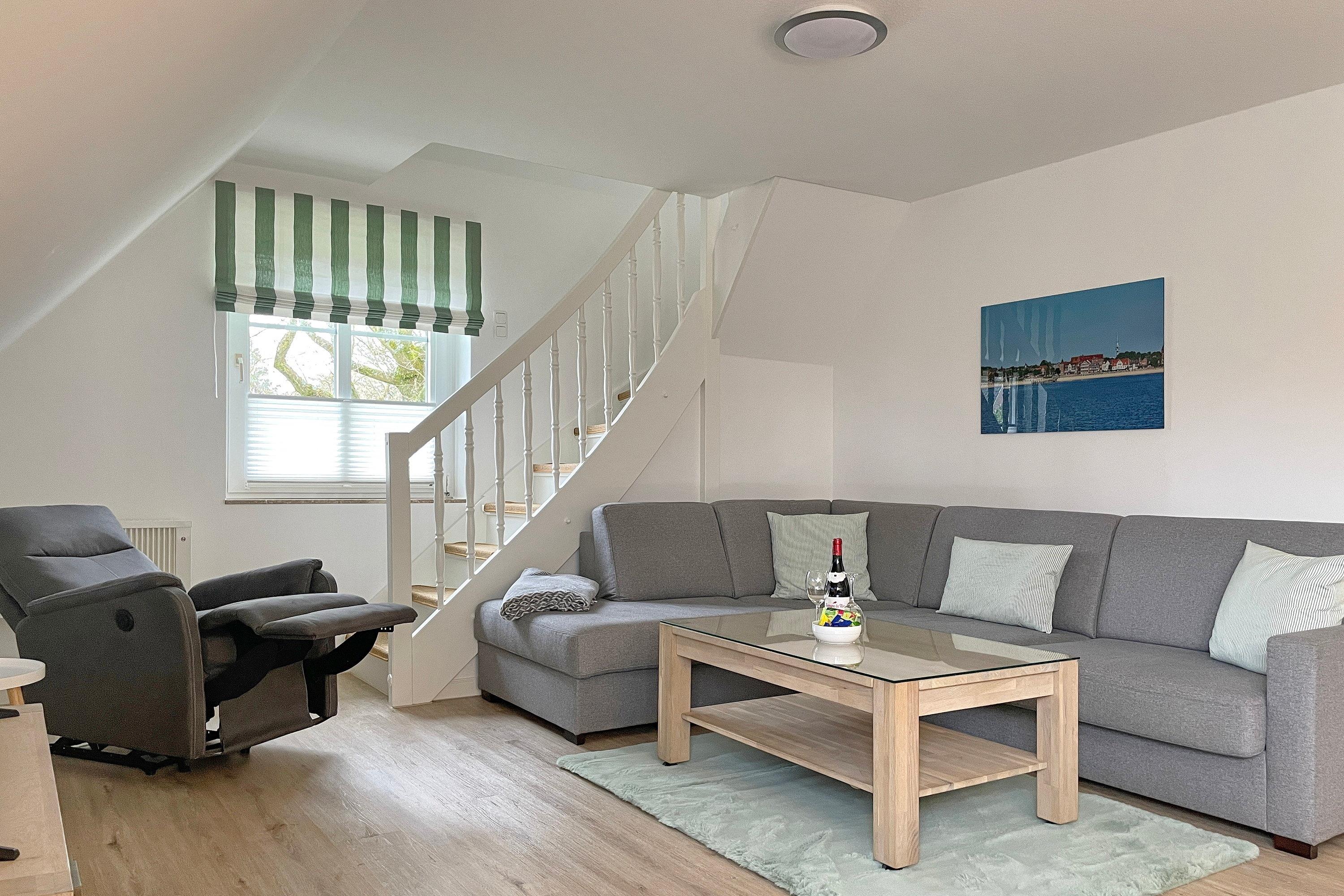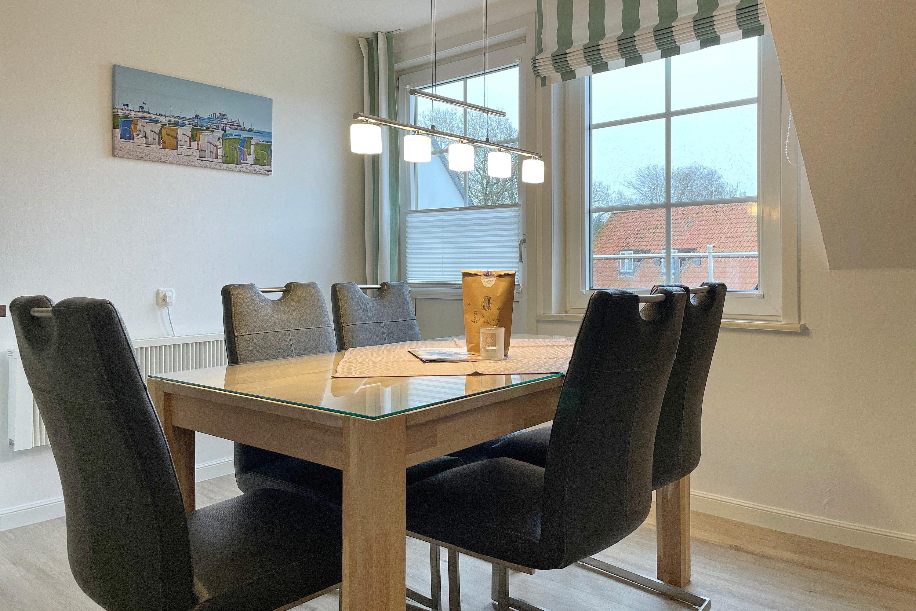 Am Grünstreifen in Wyk befindet sich diese geschmackvoll eingerichtete Wohnung für Familien in ruhiger Lage unweit des Strandes.
