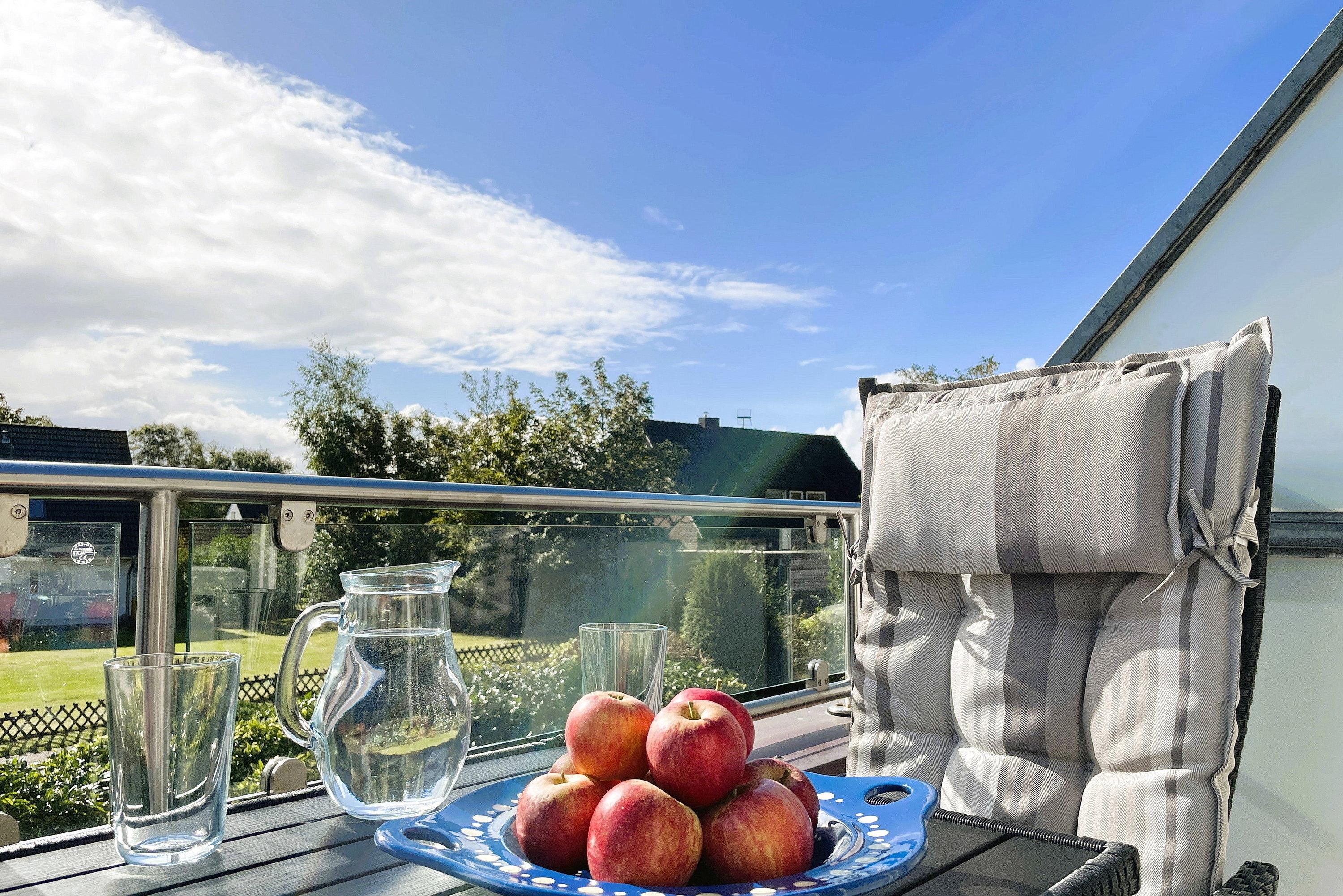 Herzlich Willkommen in unserer Lütt Eilun im Haus am Stadtwald! Die Lütt Eilun ist eine ca. 60 qm große Wohnung im ersten Obergeschoß, die sich ideal für einen Urlaub zu Zweit anbietet. Der geschmackvoll eingerichtete Wohnbereich geht nahtlos über in die gut ausgestattete Wohnküche mit gemütlicher Essgruppe und bietet reichlich Platz. Von der Küche aus erreichen Sie auch den kleinen, aber feinen Balkon. Das Duschbad mit Fenster ist hell und funktional ebenso wie das Schlafzimmer mit Doppelbett, das ruhige Träume verspricht. Zur gemeinschaftlichen Nutzung bietet das Haus am Stadtwald seinen Gästen einen Fitnessraum, Sauna und Solarium (gegen Gebühr) und einen herrlichen Gemeinschaftsgarten. Doch auch der Südstrand oder der Stadtwald sind nicht weit entfernt und laden zum Spazieren ein.