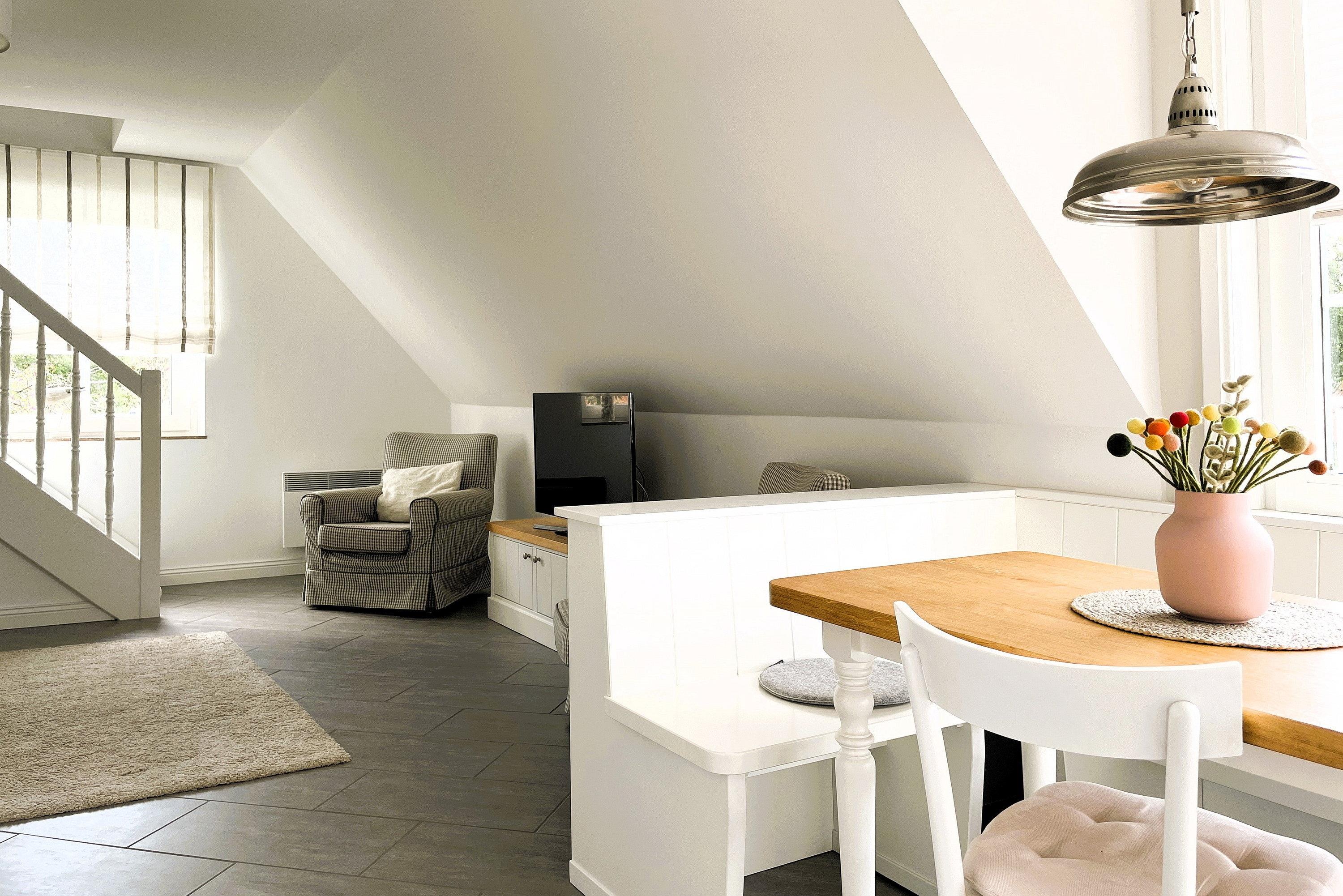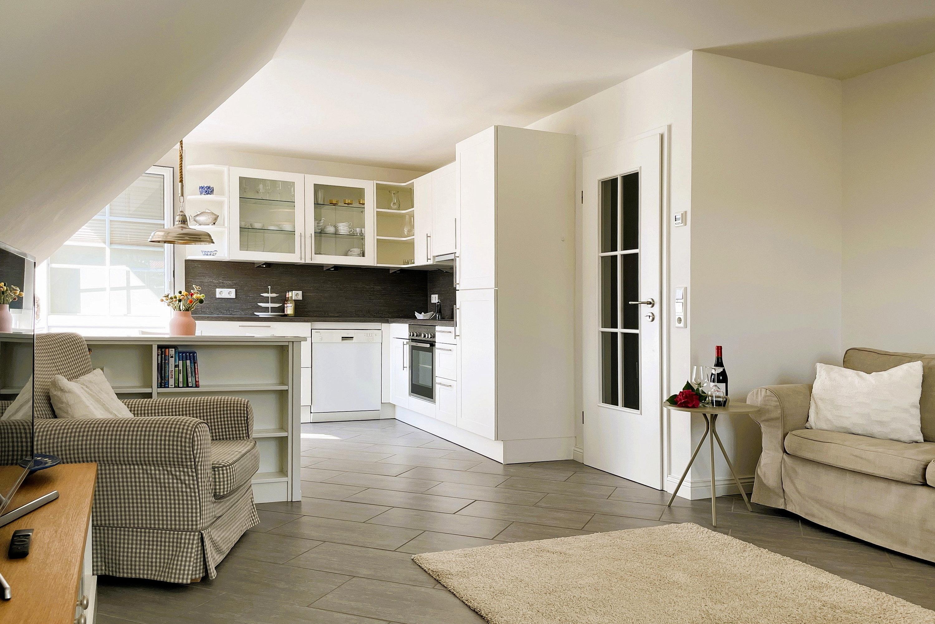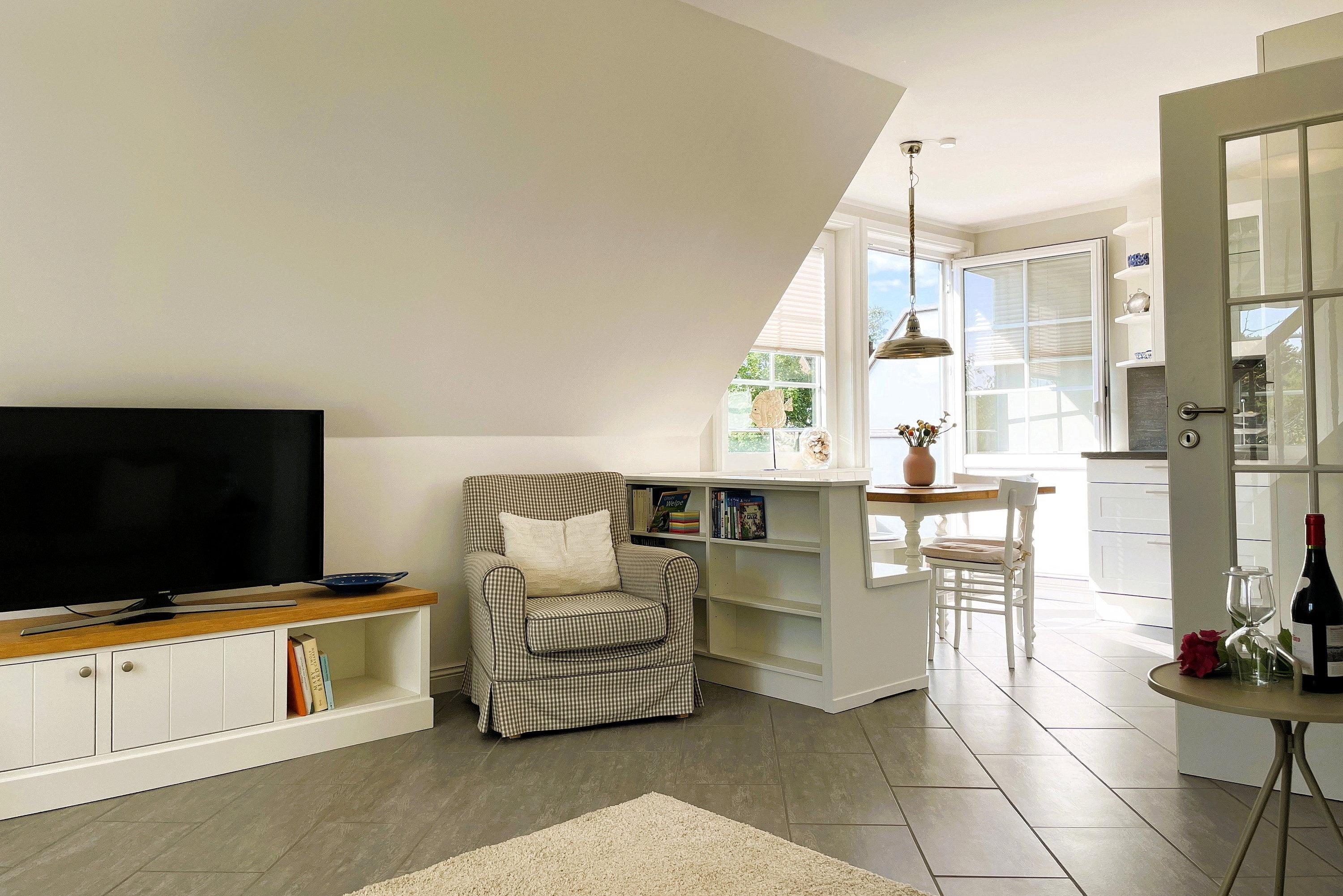 Am Grünstreifen in Wyk befindet sich diese geschmackvoll eingerichtete Wohnung im ersten Stock in einer ruhigen Lage.