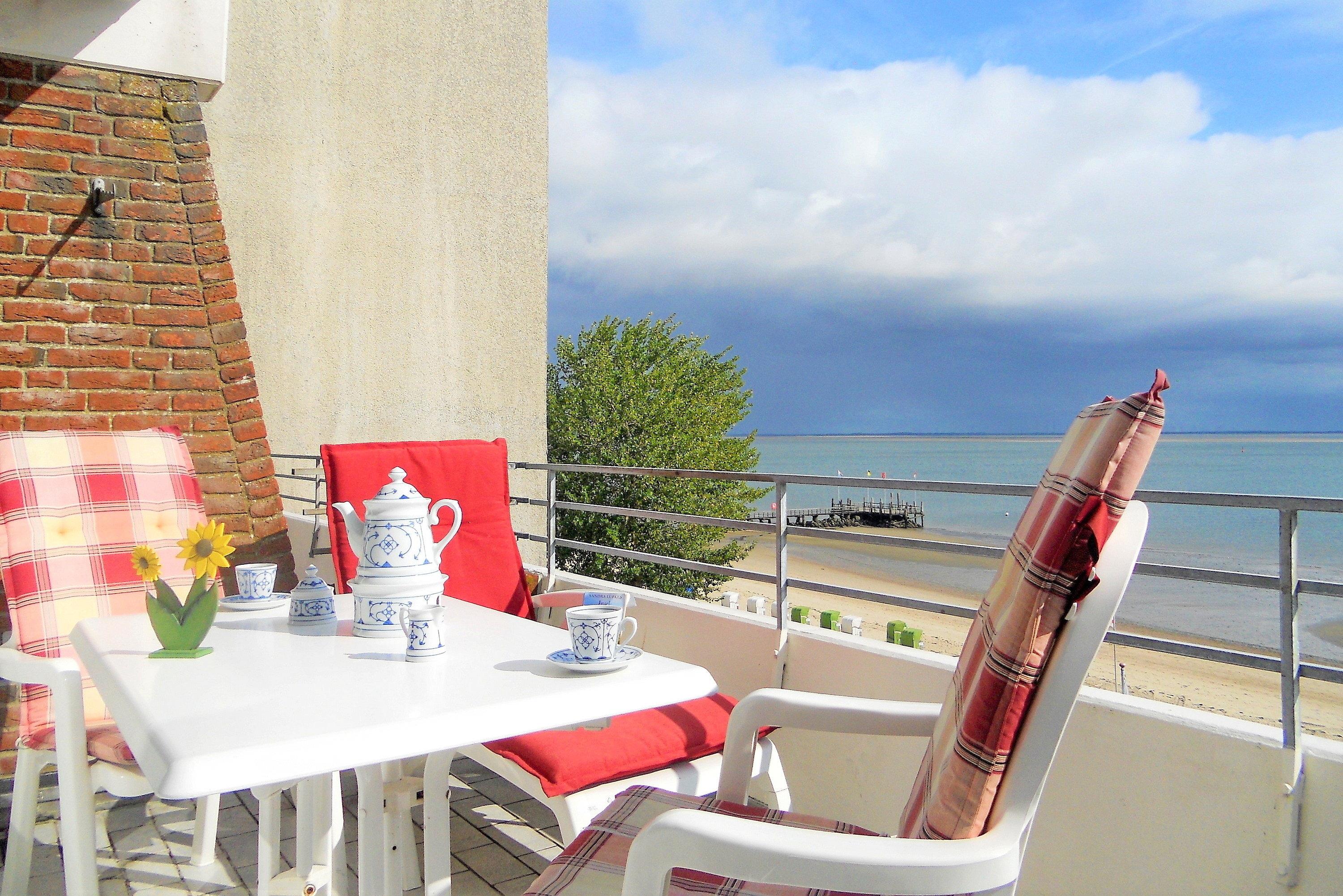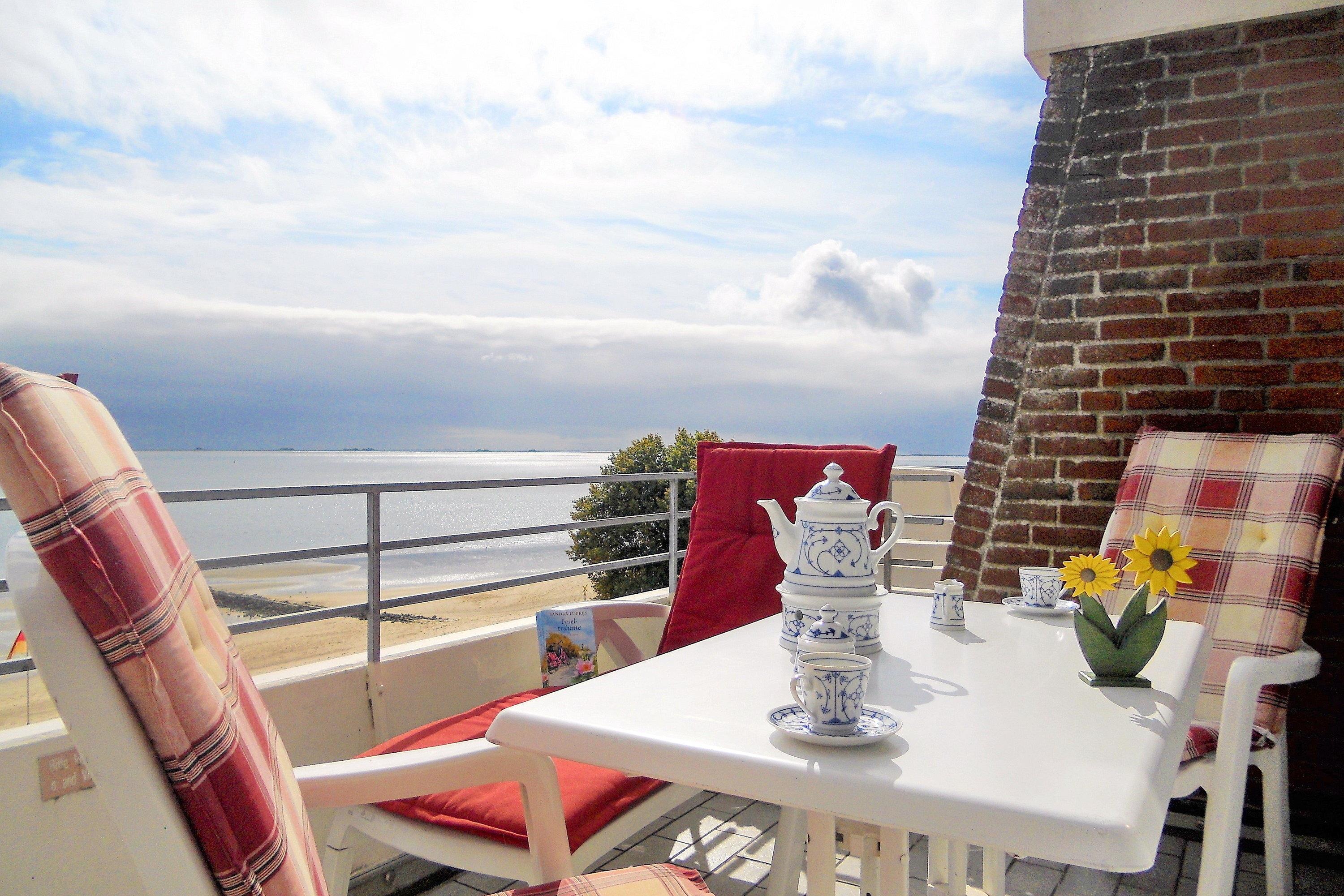 Die Föhrer Nordseebrise und die traumhafte Aussicht auf das Wattenmeer mit seinem wechselnden Schauspiel von Ebbe und Flut können Sie in unseren Wohnungen des Hauses Klaar Kiming am Sandwall in Wyk bereits nach dem Aufstehen vom Balkon aus genießen..
