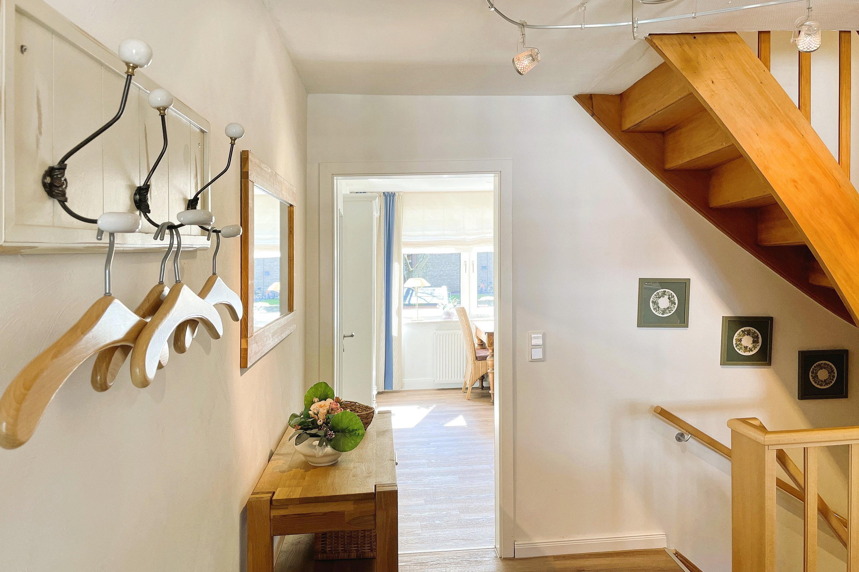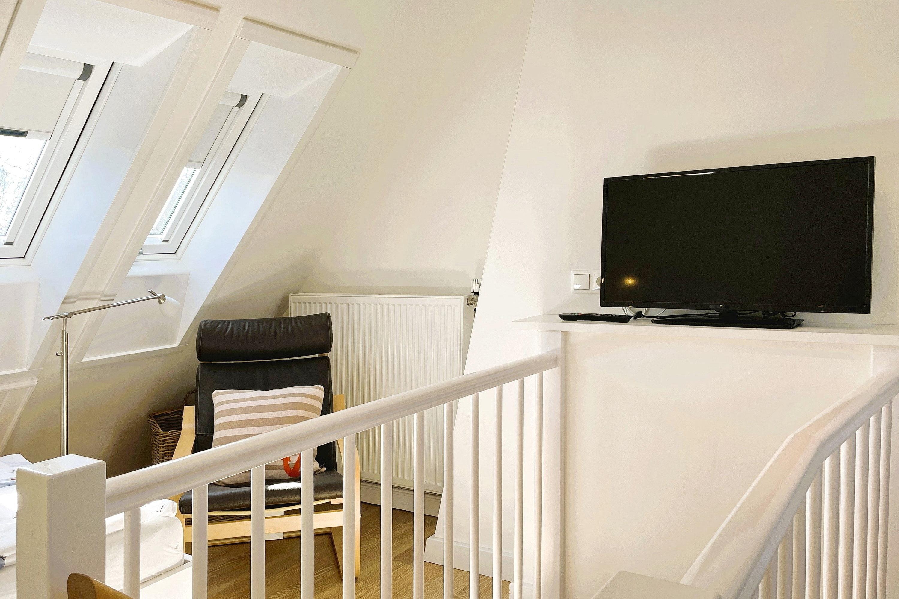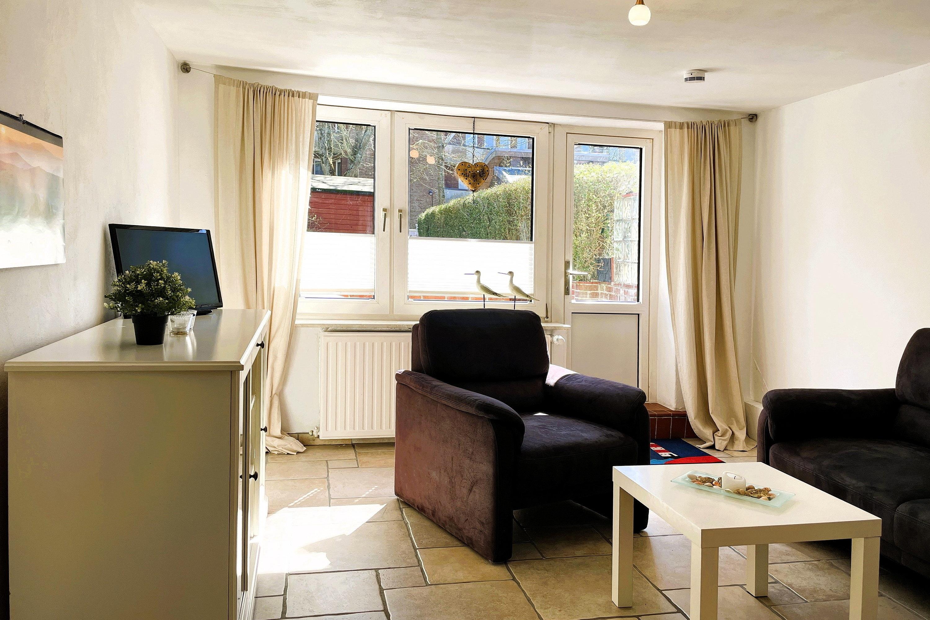 Entdecken Sie Ihren Traumurlaub in der exquisiten Ferienwohnung "Leuchtturm" auf der malerischen Insel Föhr! Diese charmante Unterkunft im Herzen von Wyk bietet Ihnen den perfekten Rückzugsort für bis zu 4 Personen. Verteilt über vier Etagen erwartet Sie ein herrliches Domizil: Im Hochparterre genießen Sie die hochwertige Einbauküche und das gemütliche Wohnzimmer mit Parkettboden. Eine Etage höher finden Sie ein geschmackvolles Duschbad mit ebenerdiger Dusche, ein separates Gäste-WC sowie das Elternschlafzimmer mit Doppelbett, während im Dachgeschoss das zweite Schlafzimmer mit zwei Einzelbetten das ideale eigene Reich für Kinder ist. Im Souterrain steht Ihnen neben einem zweiten Bad mit ebenerdiger Dusche ein Lesezimmer als Rückzugsort mit direktem Zugang zur Terrasse und zum kleinen Garten zur Verfügung, ideal für entspannte Stunden im Freien. Unser "Leuchtturm" lässt keine Wünsche offen: Moderne Technik wie Flachbild-TV sowohl im Wohnzimmer, in den beiden Schlafzimmern und im Leseraum sowie eine Musikanlage und WLAN sorgen für Unterhaltung. Eine Waschmaschine und ein Trockner sind ebenfalls vorhanden und kostenfrei nutzbar. Zentral und dennoch ruhig gelegen, bietet die Ferienwohnung "Leuchtturm" den idealen Ausgangspunkt für Ihre Entdeckungstouren auf Föhr. Der kurze Weg zum Strand lädt zu ausgedehnten Spaziergängen und erholsamen Stunden am Meer ein. Erleben Sie unvergessliche Momente in dieser geschmackvoll eingerichteten Ferienwohnung, die mit ihrer hochwertigen Ausstattung und Ihrem Charme begeistert. Ihr Traumurlaub beginnt hier, im "Leuchtturm" – Ihrem Zuhause auf Zeit!