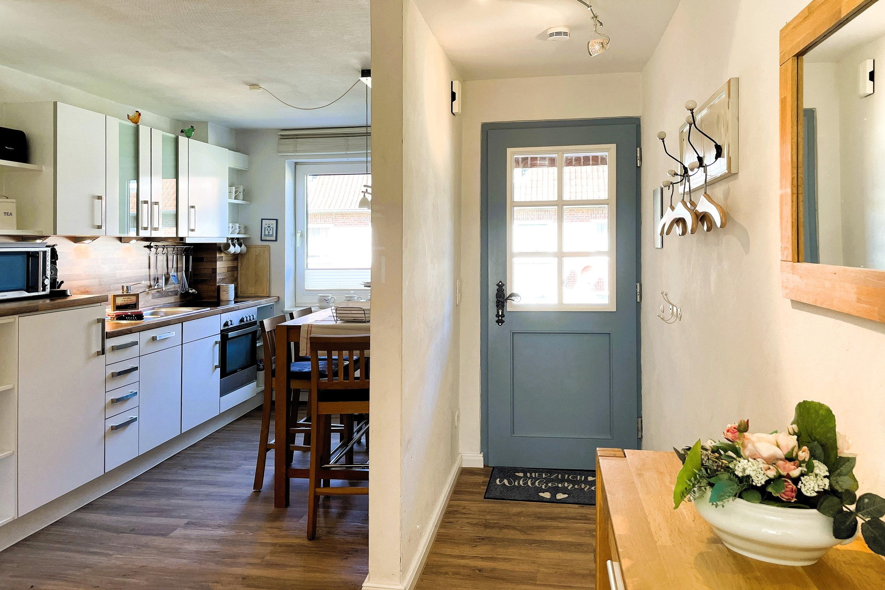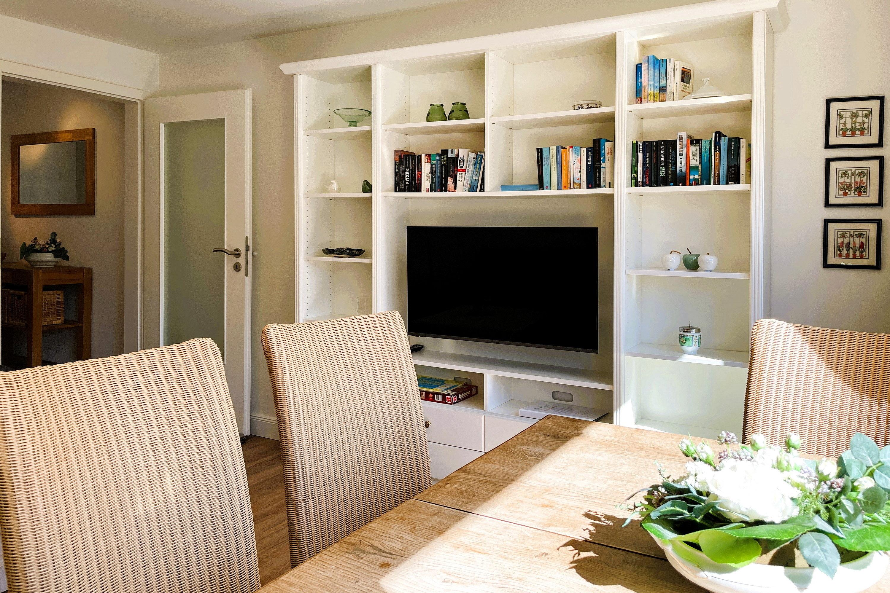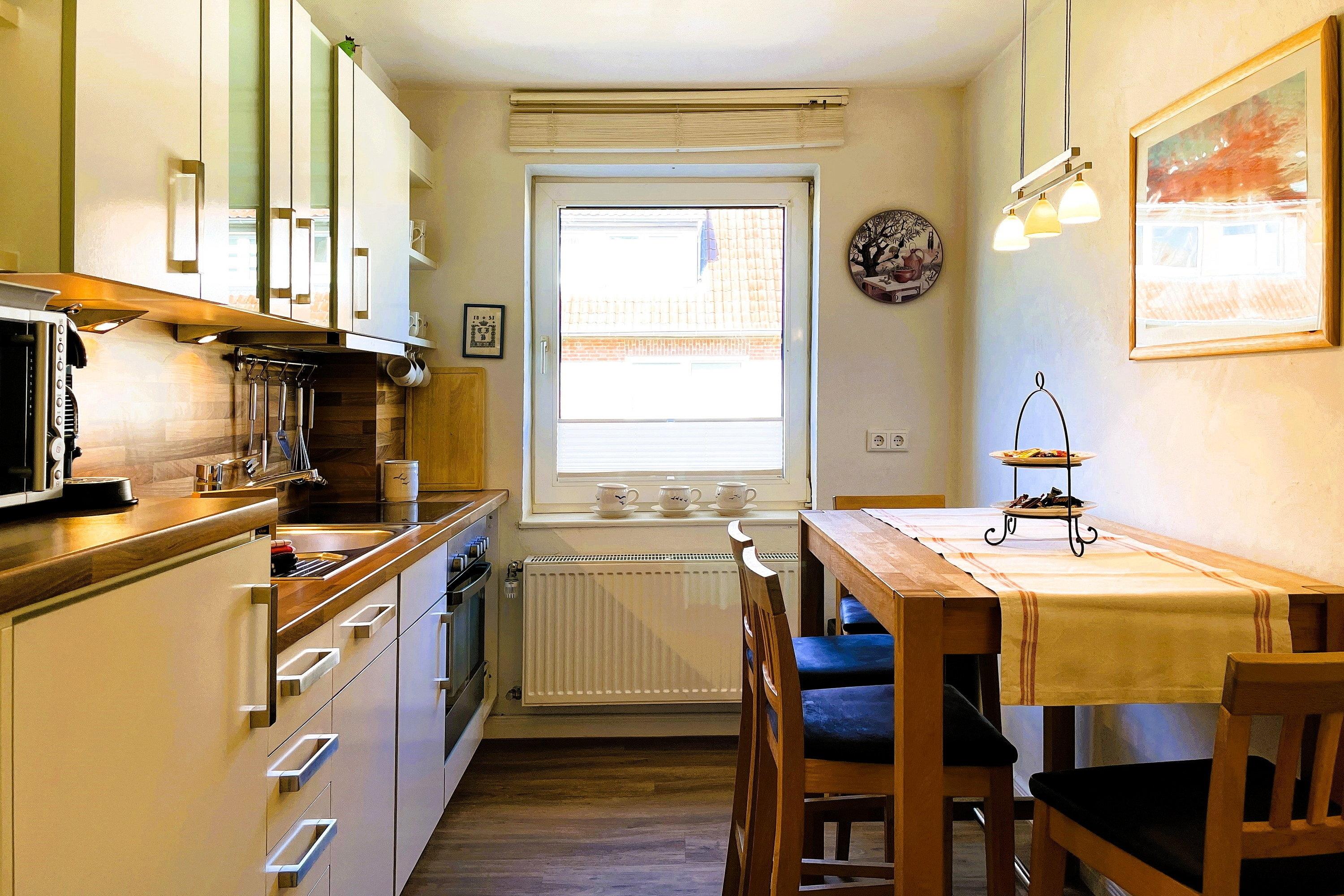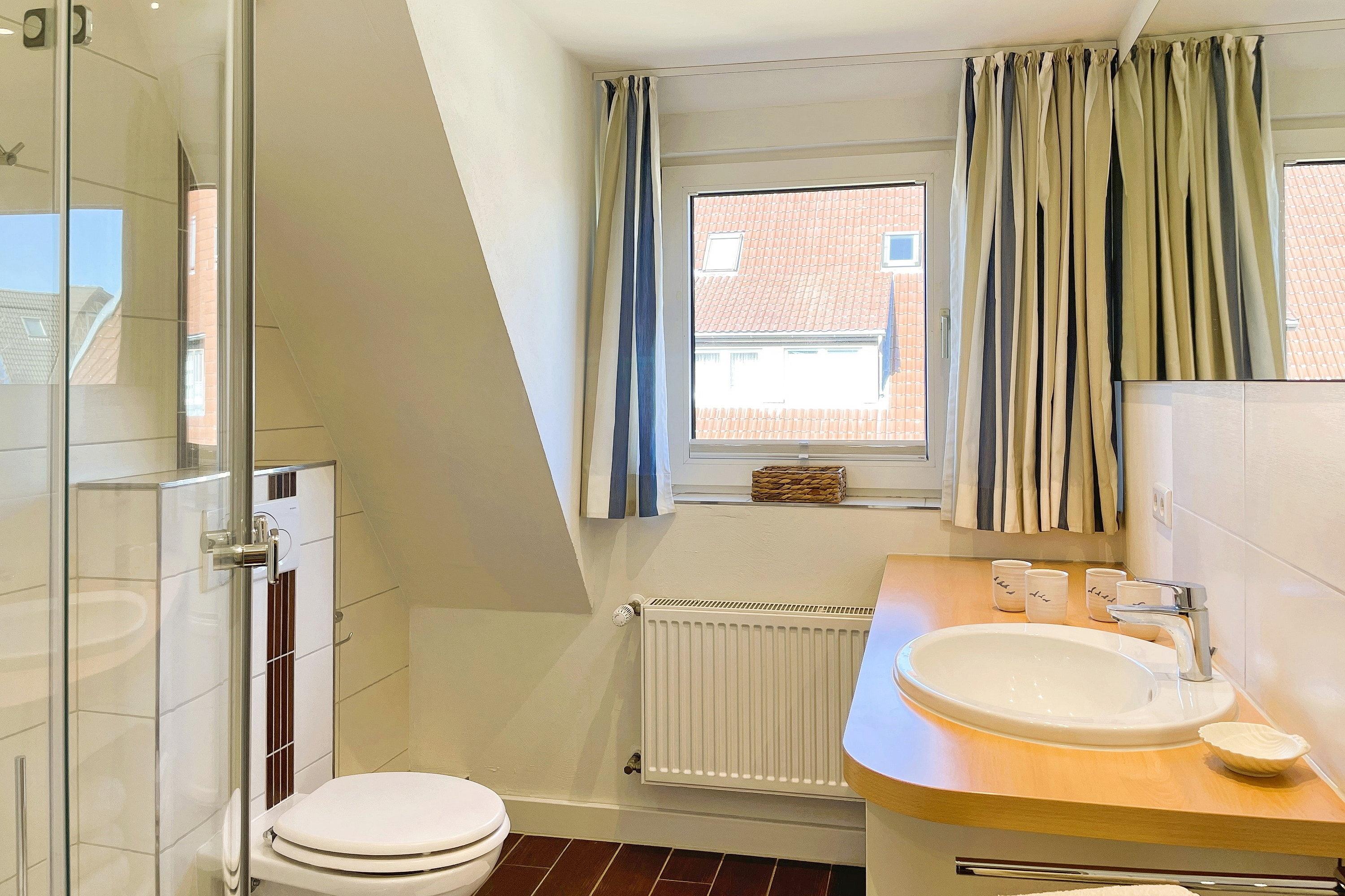Entdecken Sie Ihren Traumurlaub in der exquisiten Ferienwohnung "Leuchtturm" auf der malerischen Insel Föhr! Diese charmante Unterkunft im Herzen von Wyk bietet Ihnen den perfekten Rückzugsort für bis zu 4 Personen. Verteilt über vier Etagen erwartet Sie ein herrliches Domizil: Im Hochparterre genießen Sie die hochwertige Einbauküche und das gemütliche Wohnzimmer mit Parkettboden. Eine Etage höher finden Sie ein geschmackvolles Duschbad mit ebenerdiger Dusche, ein separates Gäste-WC sowie das Elternschlafzimmer mit Doppelbett, während im Dachgeschoss das zweite Schlafzimmer mit zwei Einzelbetten das ideale eigene Reich für Kinder ist. Im Souterrain steht Ihnen neben einem zweiten Bad mit ebenerdiger Dusche ein Lesezimmer als Rückzugsort mit direktem Zugang zur Terrasse und zum kleinen Garten zur Verfügung, ideal für entspannte Stunden im Freien. Unser "Leuchtturm" lässt keine Wünsche offen: Moderne Technik wie Flachbild-TV sowohl im Wohnzimmer, in den beiden Schlafzimmern und im Leseraum sowie eine Musikanlage und WLAN sorgen für Unterhaltung. Eine Waschmaschine und ein Trockner sind ebenfalls vorhanden und kostenfrei nutzbar. Zentral und dennoch ruhig gelegen, bietet die Ferienwohnung "Leuchtturm" den idealen Ausgangspunkt für Ihre Entdeckungstouren auf Föhr. Der kurze Weg zum Strand lädt zu ausgedehnten Spaziergängen und erholsamen Stunden am Meer ein. Erleben Sie unvergessliche Momente in dieser geschmackvoll eingerichteten Ferienwohnung, die mit ihrer hochwertigen Ausstattung und Ihrem Charme begeistert. Ihr Traumurlaub beginnt hier, im "Leuchtturm" – Ihrem Zuhause auf Zeit!
