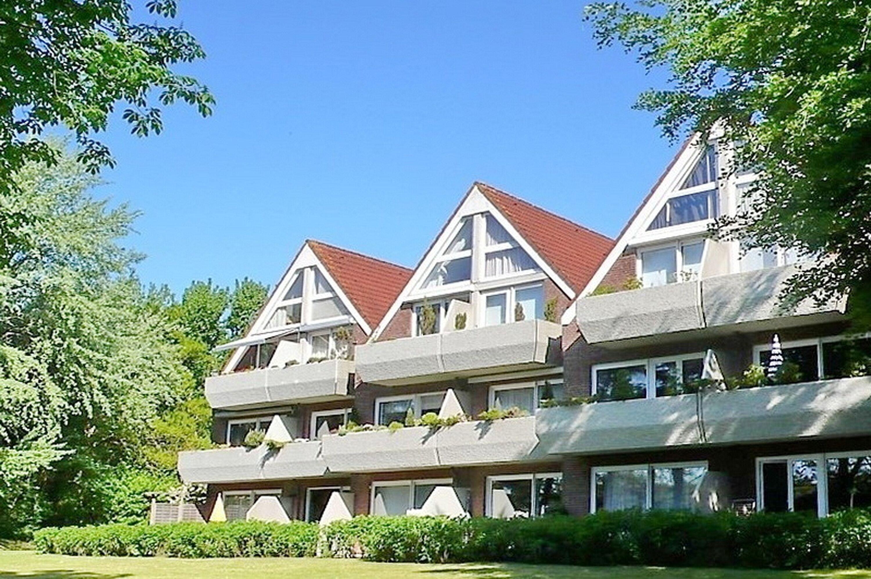 In einer schönen und gepflegten Anlage mehrerer Reihenhäuser befindet sich unsere Wohnung Meeresrauschen sehr ruhig gelegen und nur wenige Gehminuten entfernt vom Meer und dem Wyker Leuchtturm .