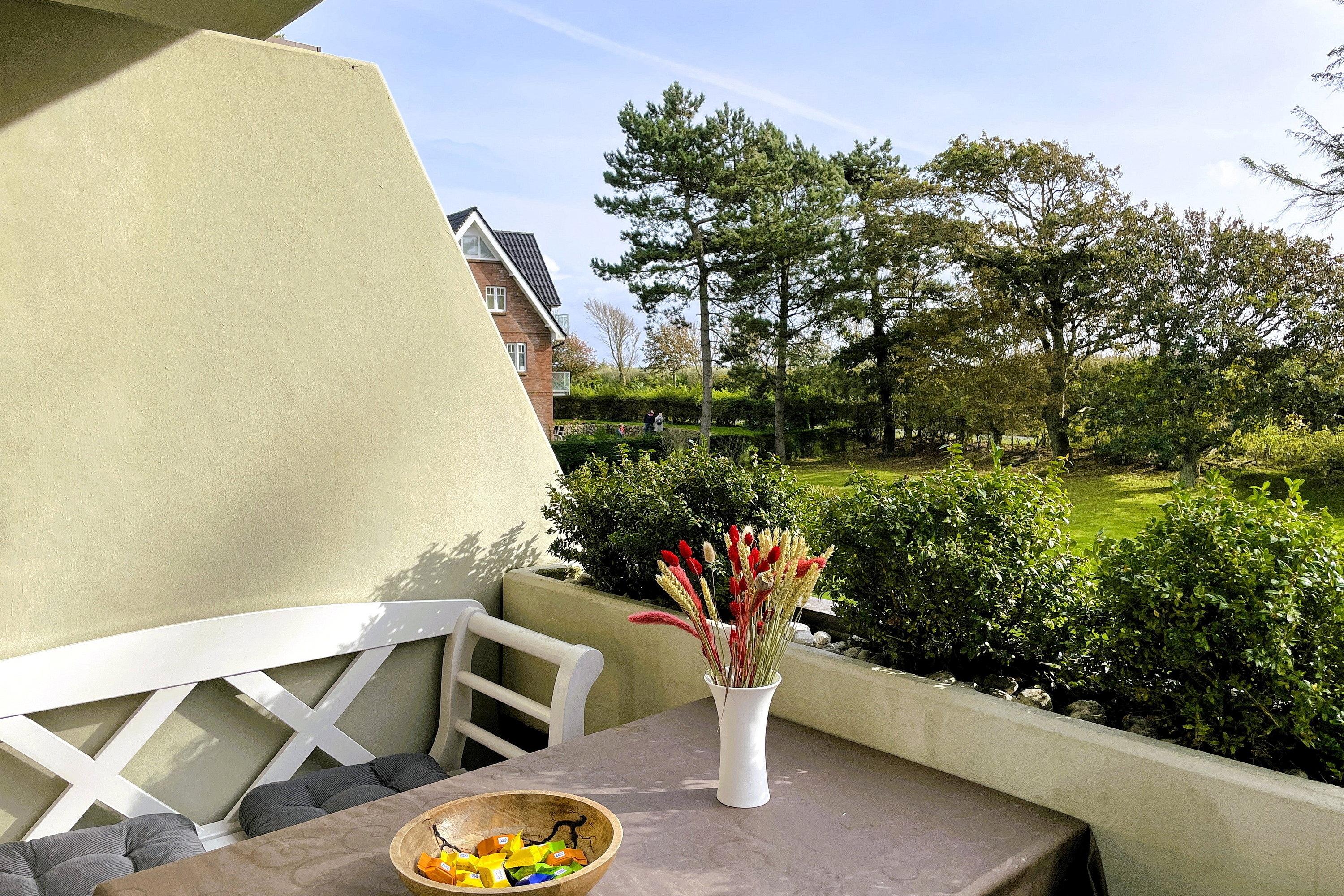 Unsere schöne Wohnung Meeresrauschen (45 qm) befindet sich im ersten Obergeschoss dieser gepflegten und strandnahen Ferienanlage. Liebevoll gestaltet und mit maritimen Accessoires ausgestattet, haben sich die Eigentümer bei der Gestaltung der Wohnung viel Mühe gegeben. Erfrischende Farben verleihen dem Domizil einen individuellen Charme. Vom Flur aus abgehend erreichen Sie das gemütliche Schlafzimmer mit Doppelbett (160x200cm) und Kommode, das moderne Bad mit Dusche und Handtuchheizkörper und den hellen einladenden Wohnbereich mit WLAN. In der gut ausgestatteten Küchenzeile mit Kompaktbackofen (Heißluft und Grill), Cerankochfeld, Geschirrspüler, Kühlschrank und vielem mehr bereitet das Kochen Freude. Der großzügige Essplatz lädt zu einem reichhaltigen Frühstück ein und die schöne Sitzgruppe bestehend aus einem Korbsessel und einer großzügigen Couch (mit Schlaffunktion 130x 200 cm) verspricht ruhige, gemeinsame Stunden nach einem erlebnisreichen Urlaubstag. Von hier gelangen Sie auf den sonnigen Balkon, der teilweise windgeschützt und überdacht ist. Genießen Sie den Blick über den Deich und erleben Sie die erfrischende Nordseeluft. Ab ca. Mitte April bis ca. Mitte Oktober steht Ihnen ein Strandkorb direkt am Leuchtturm in erster Reihe zur Verfügung.