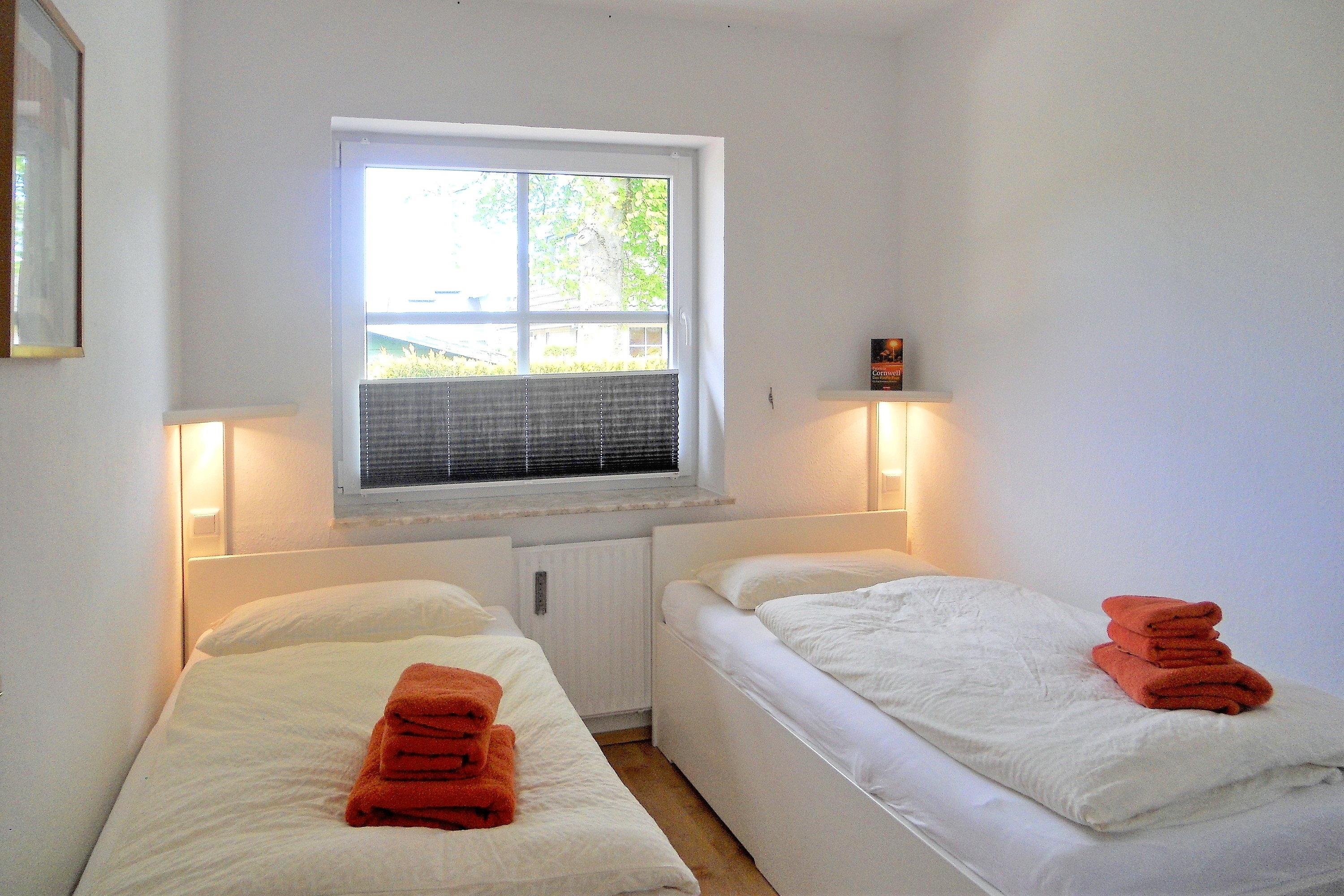 Ruhig gelegen mitten in der kleinen Föhrer Stadt Wyk liegt unsere gepflegte, kleine Erdgeschosswohnung "Rugstieg 8/2" (33qm) für 2 Personen. Das lichtdurchflutete Wohnzimmer mit Schlafsofa, Flachbild-TV, DVD-Player, WLAN, Stereoanlage und integrierter Essecke bietet Ihnen den Zugang zur eigenen kleinen Terrasse, wo Sie schöne Sonnenstunden genießen können. Eine Pantryküche mit 2 Kochplatten, Kühlschrank mit Gefrierfach, Kaffeemaschine (Senseo Duo) und Wasserkocher ist zweckmäßig und funktional. Das Das Bad mit Fenster verfügt über eine Dusche mit Schiebetür und ist hell gefliest. Im Schlafzimmer finden Sie zwei Einzelbetten vor, die geruhsame Nächte versprechen. Das Haus mit seinen vier allergikergerechten Ferienwohnungen bietet seinen Gästen zur gemeinschaftlichen Nutzung weiterhin im Untergeschoss Waschmaschine und Trockner, eine Sauna und einen kleinen Fitnessraum an sowie den gemeinschaftlich Garten.