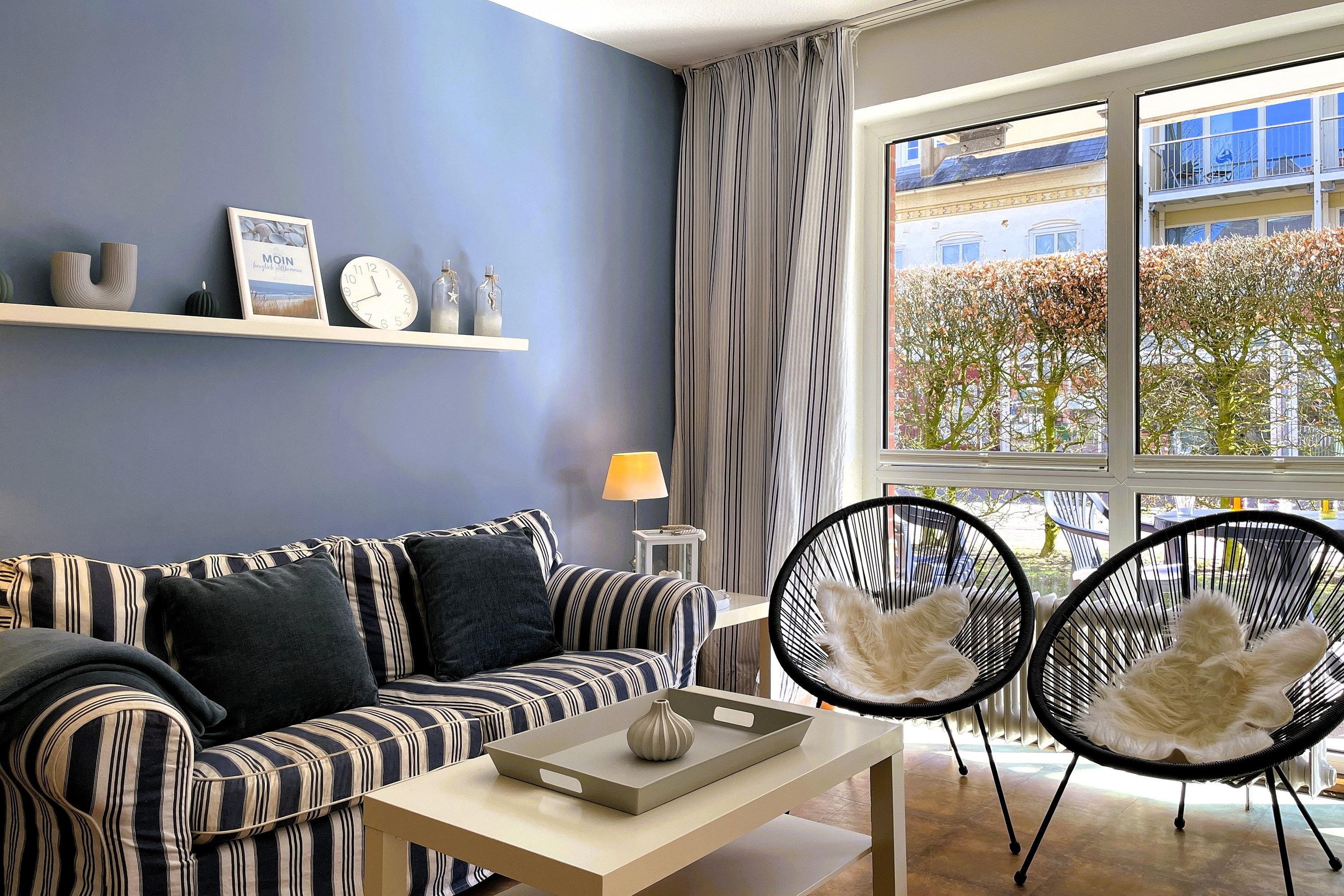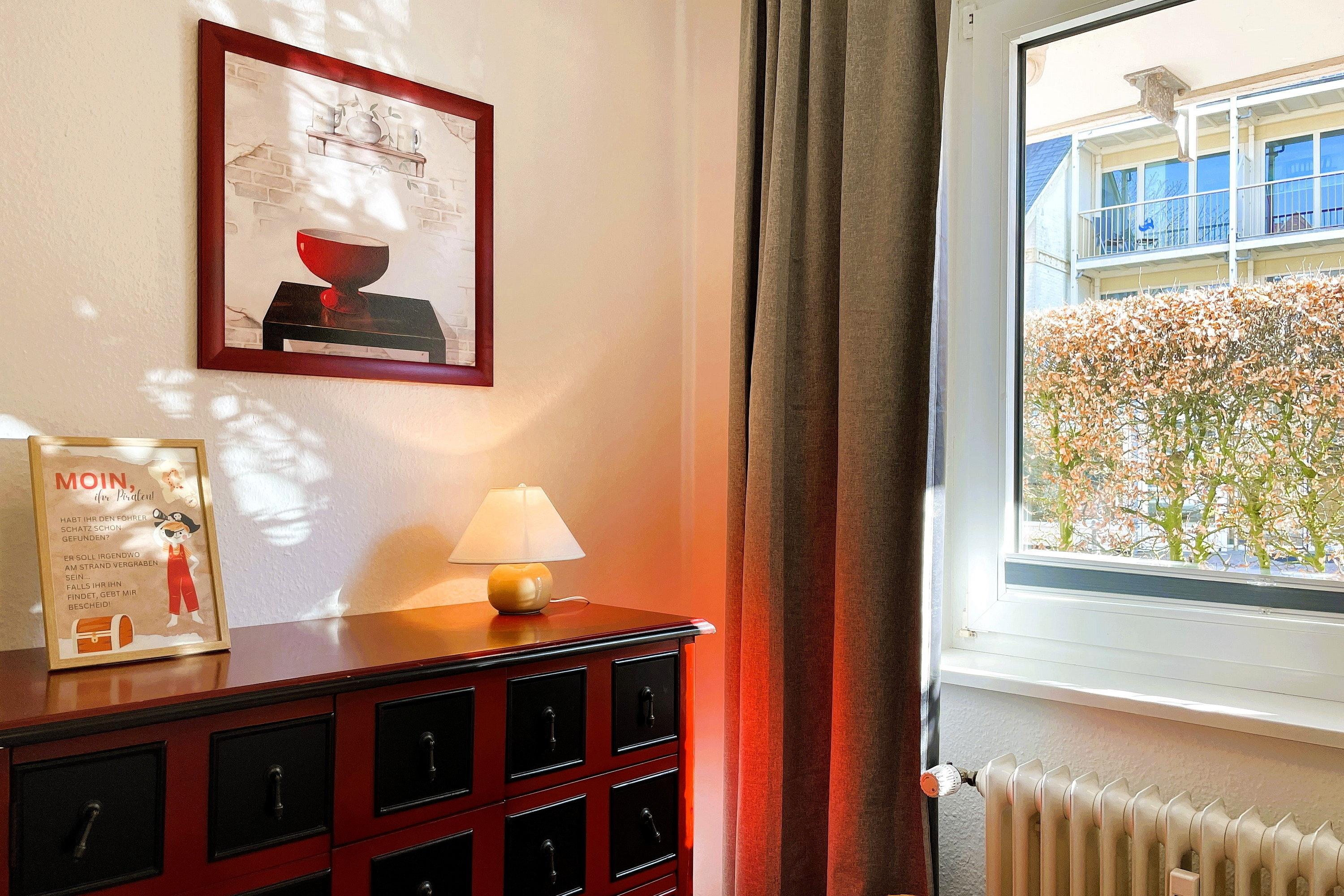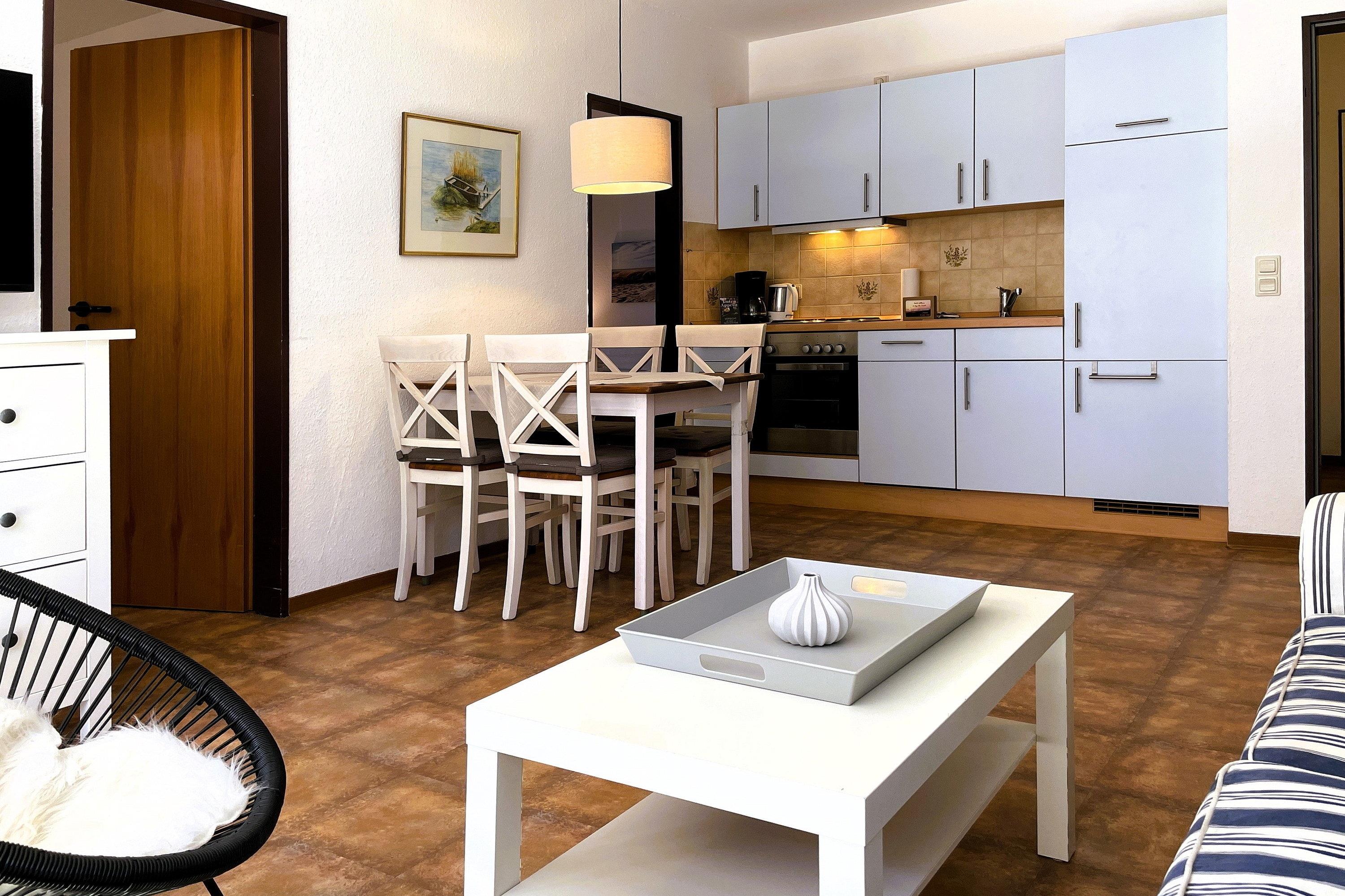 Zentral gelegen eignen sich die Wohnungen im Haus Seeadler ideal für alle Gäste, die gerne schnell mitten im Geschehen sein wollen. In wenigen Schritten sind Sie am Strand, in der Innenstadt oder erreichen die einladenden Restaurants und Cafés. Unser Seeadler 02 ist eine helle EG-Wohnung in der beliebten Lage am Sandwall- unweit der Wyker Innenstadt. Genießen Sie herrliche Urlaubstage in dieser lichtdurchfluteten Wohnung. Mit einem Elternschlafzimmer mit Doppelbett und einem Kinderzimmer mit 2 Einzelbetten, dem modernen Bad mit Dusche und dem einladenden Wohnraum, der das Herzstück der Wohnung bildet, bietet sich die Wohnung ideal für einen Urlaub für 2 bis 4 Personen an. Im Wohnraum erwartet Sie eine gemütliche Sitzecke mit integriertem Esstisch und einer gut ausgestatteten Küchenzeile. Maritime Accessoires geben der Wohnung ihren nordfriesischen Charme. Im Sommer lädt die eigene Terrasse zum Verweilen ein, wenn es Sie mal nicht direkt an den Strand zieht, der nur wenige Schritte entfernt liegt. Buchen Sie unseren Seeadler 02 für erholsame Urlaubstage!
