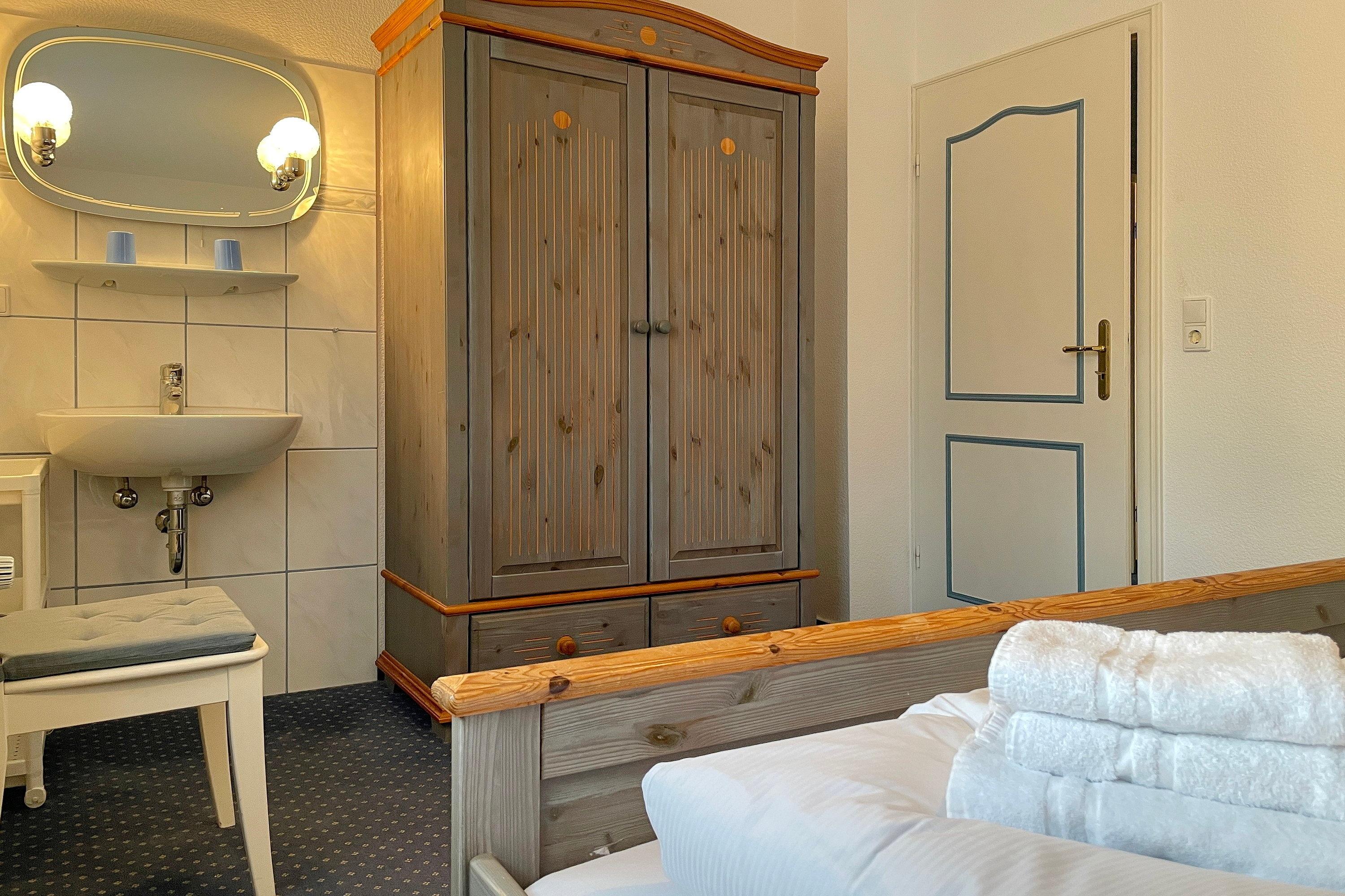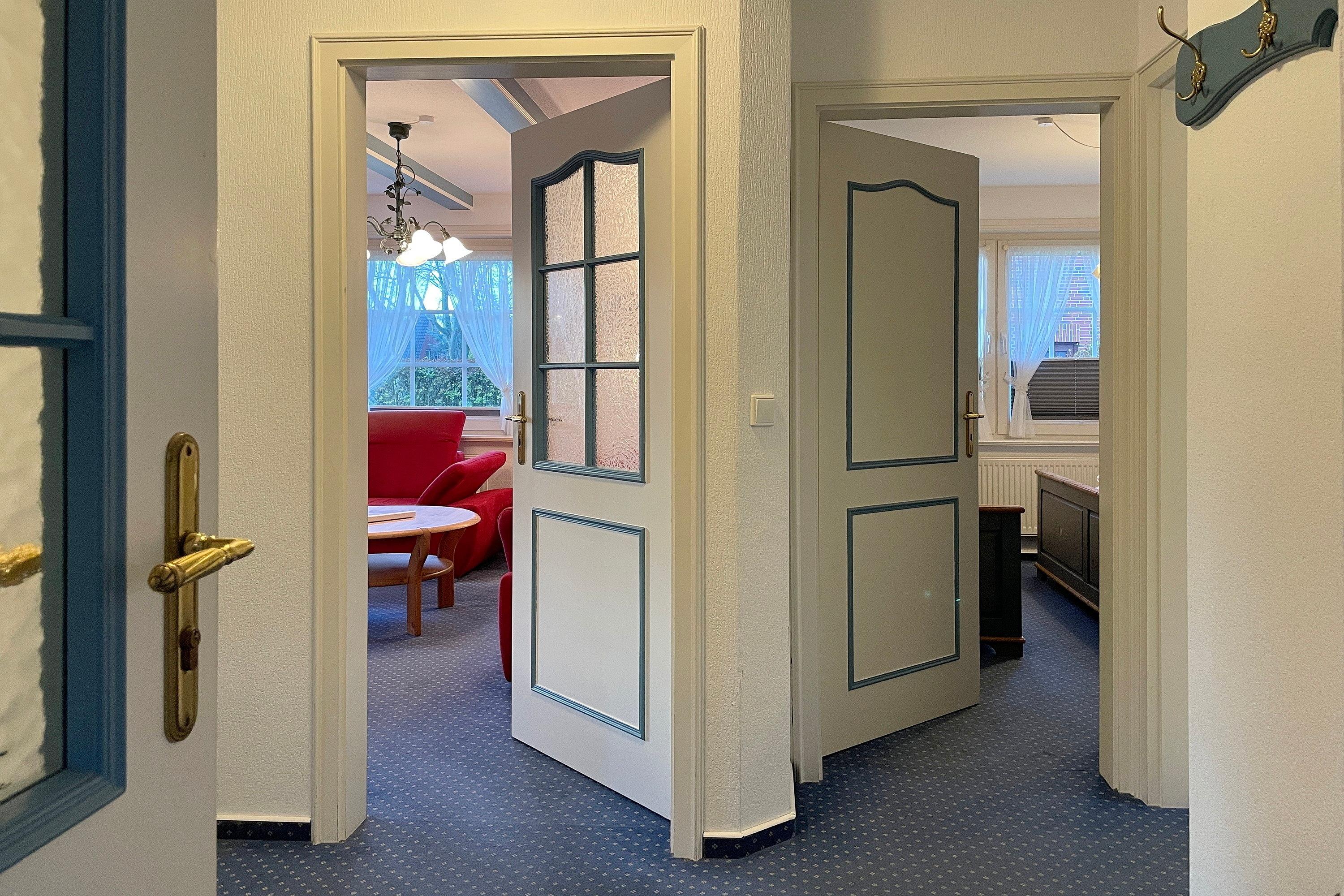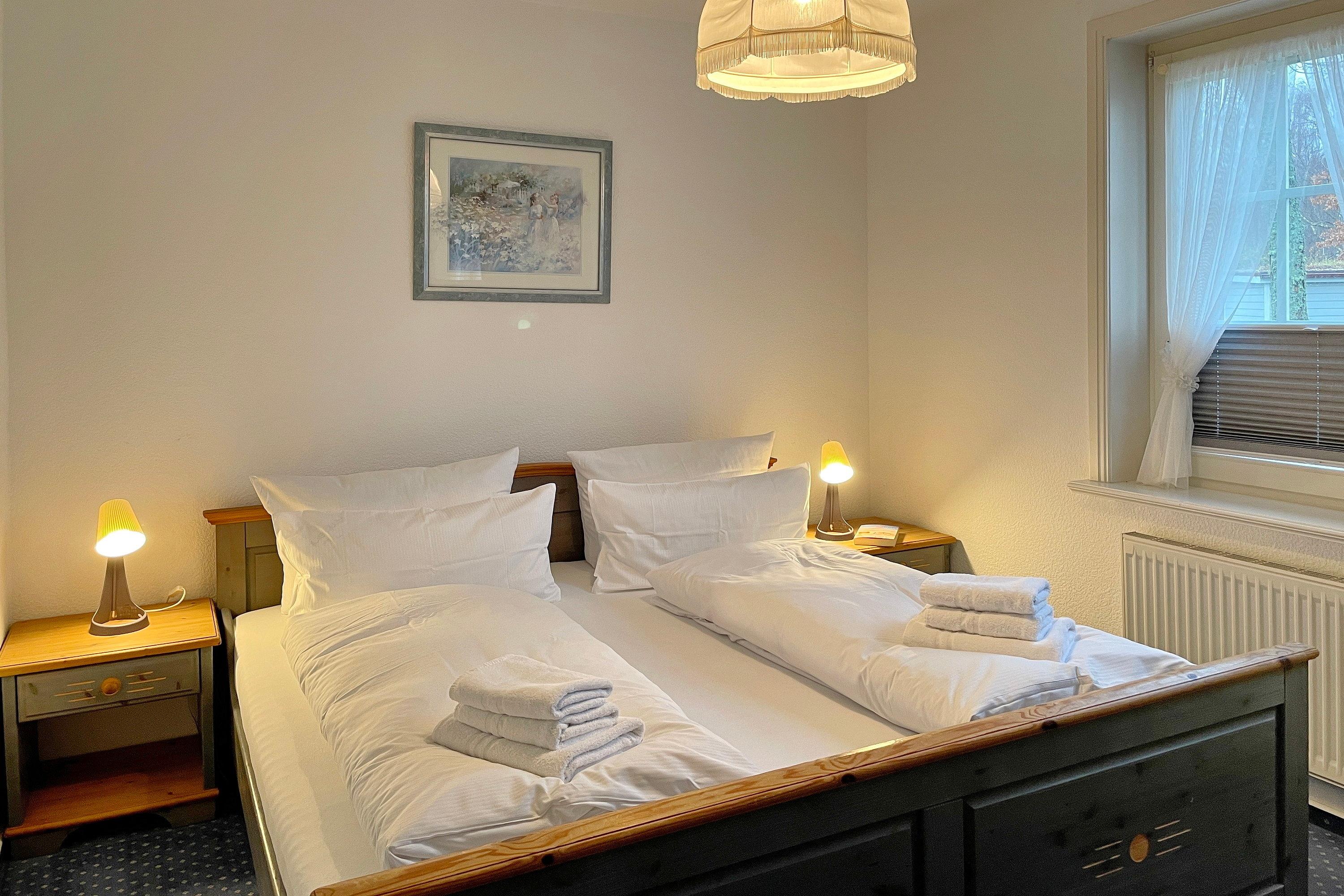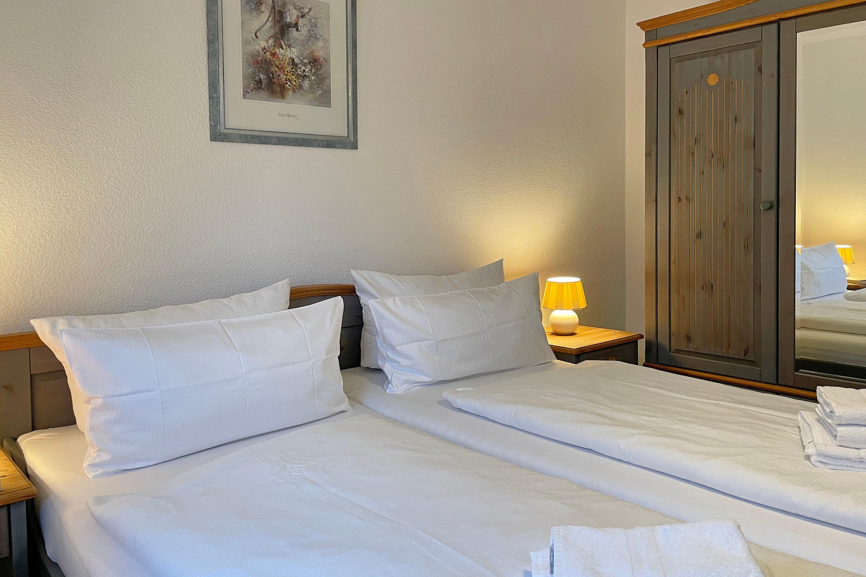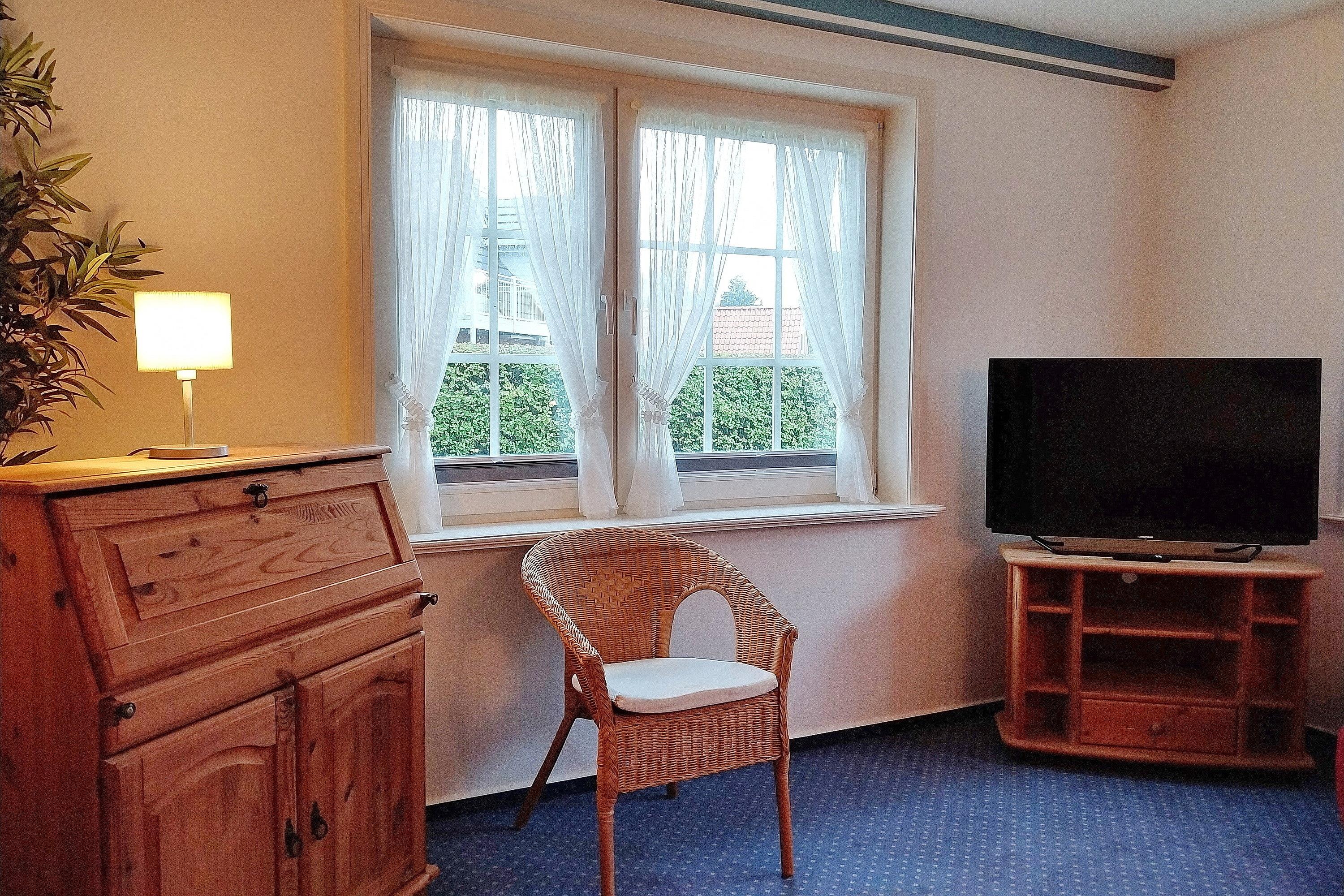 Unsere ca. 66 qm große Erdgeschosswohnung Sieck 01 bietet sich für 4 bis maximal 5 Personen an, um herrliche Urlaubstage zu erleben. Die gepflegte Wohnung wurde liebevoll eingerichtet und alle Zimmer sind vom Flur aus zu erreichen. Lichtdurchflutet und mit W-Lan, Flachbild-TV und CD-Player ausgestattet, können Sie eine gemütliche, gemeinsame Zeit im Wohnzimmer verbringen. Eine bequeme Sitzgruppe lädt zum Relaxen ein. Das Elternschlafzimmer verfügt neben dem Doppelbett und einem Kleiderschrank auch über ein zusätzliches Waschbecken. Im zweiten Schlafraum befinden sich ein Kleiderschrank, ein Doppel- und ein Einzelbett. Das Bad ist hellgefliest und zweckmäßig mit Dusche, Fenster und Handtuchheizkörper gestaltet. In der gut ausgestatteten Küche mit Sitzecke, Ceranfeldherd mit Backofen, Geschirrspüler, Kühlschrank mit Gefrierfach und Kaffeemaschine macht das Kochen auch zu Hause Spaß! Besonders für unsere Gäste, die gerne ruhig und doch zentral wohnen möchten, bietet sich unser Haus Sieck ideal an.