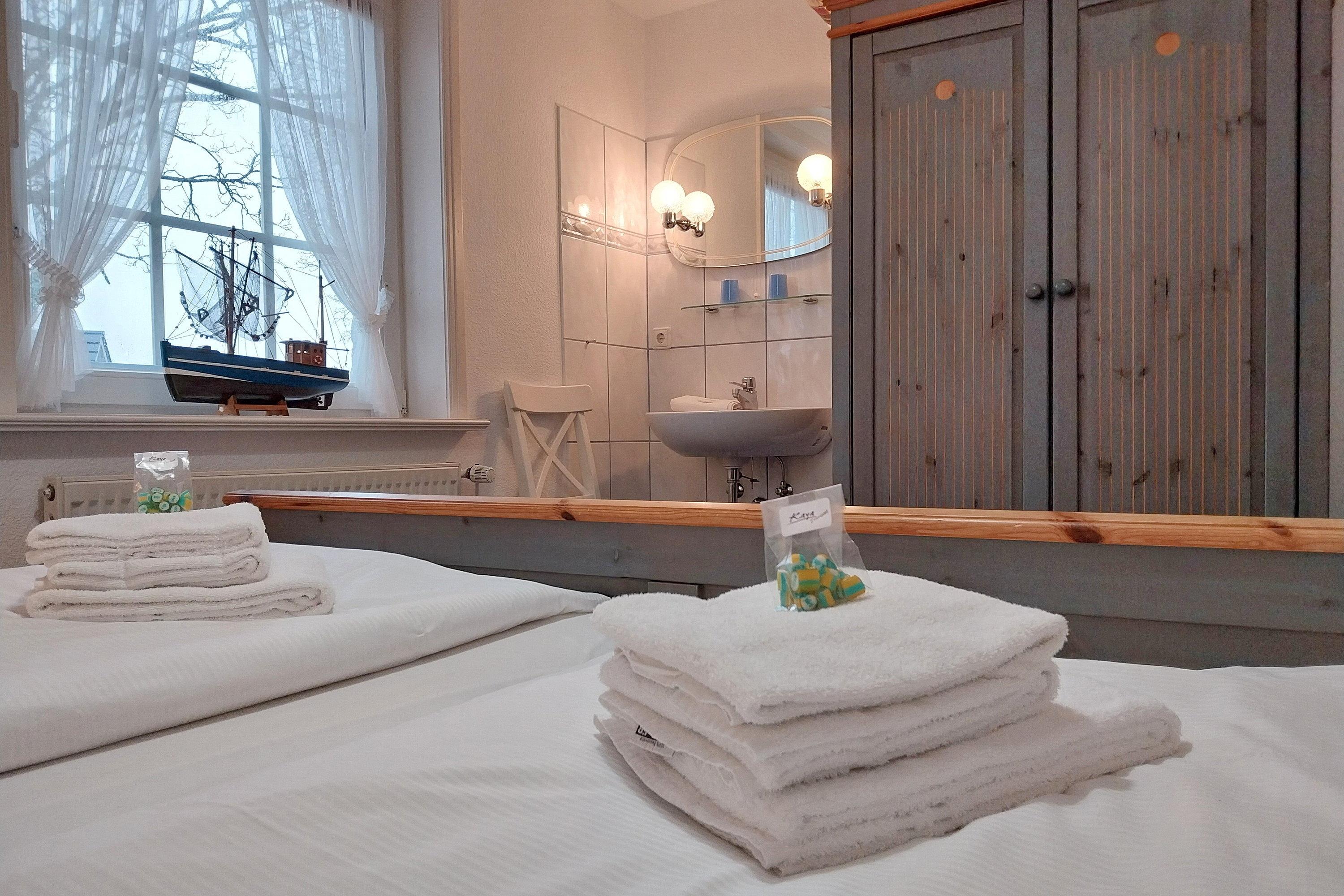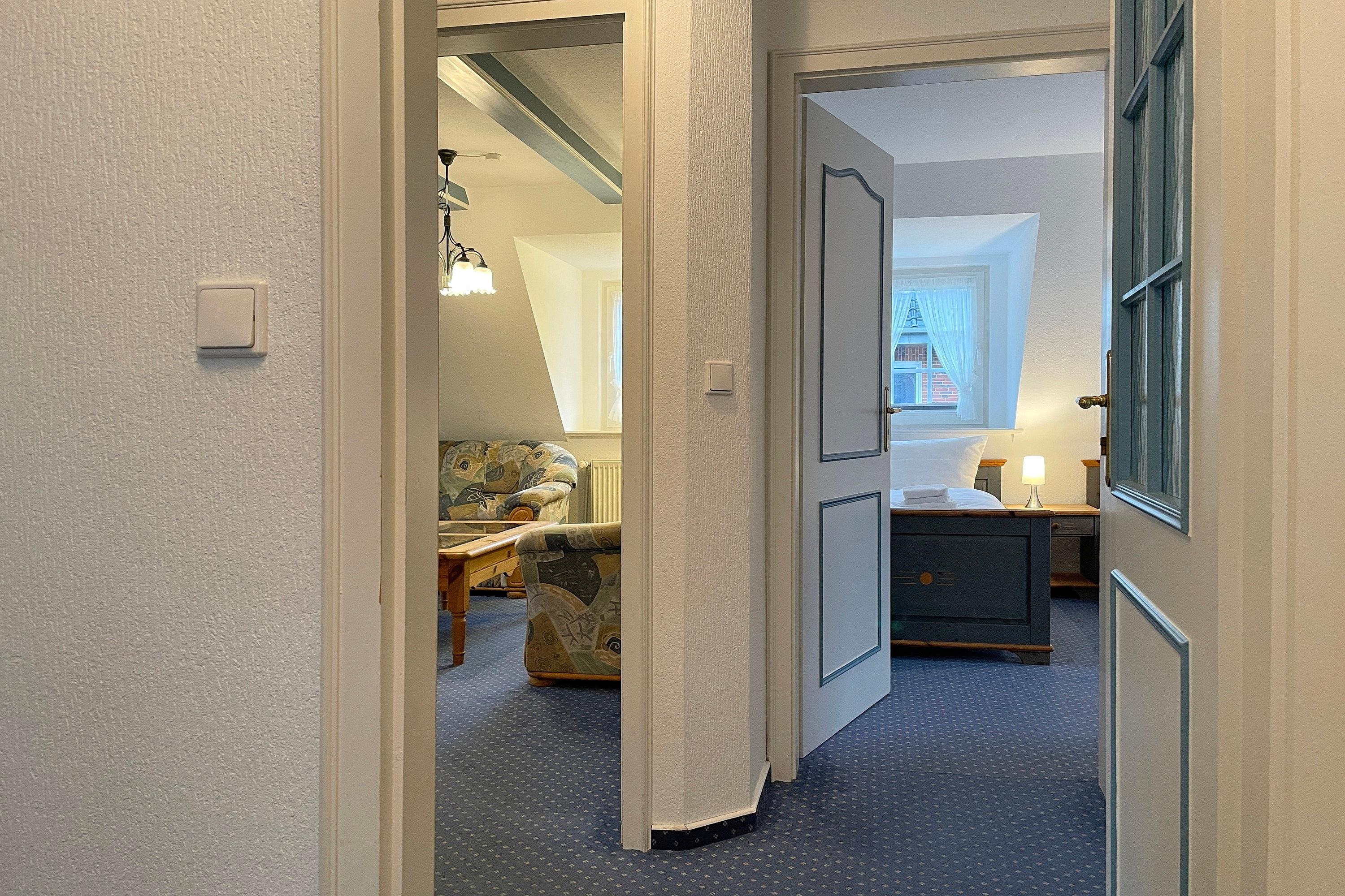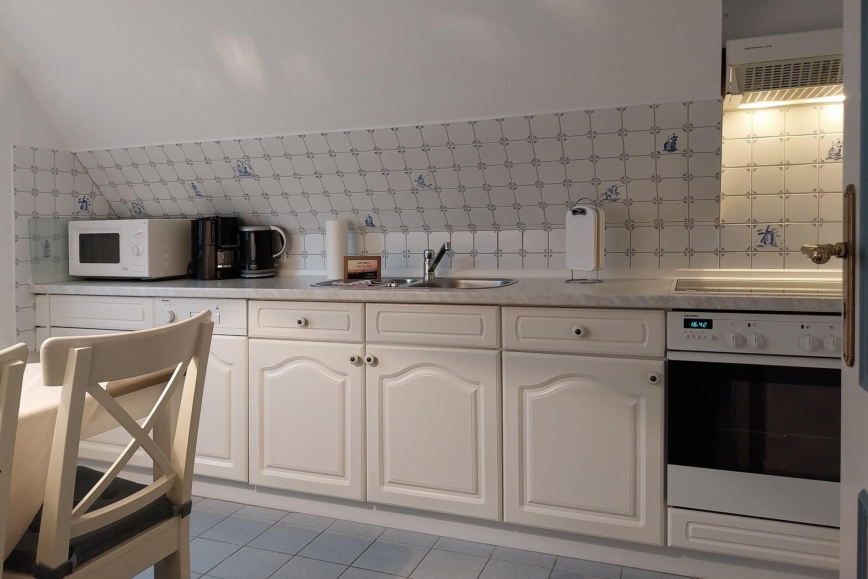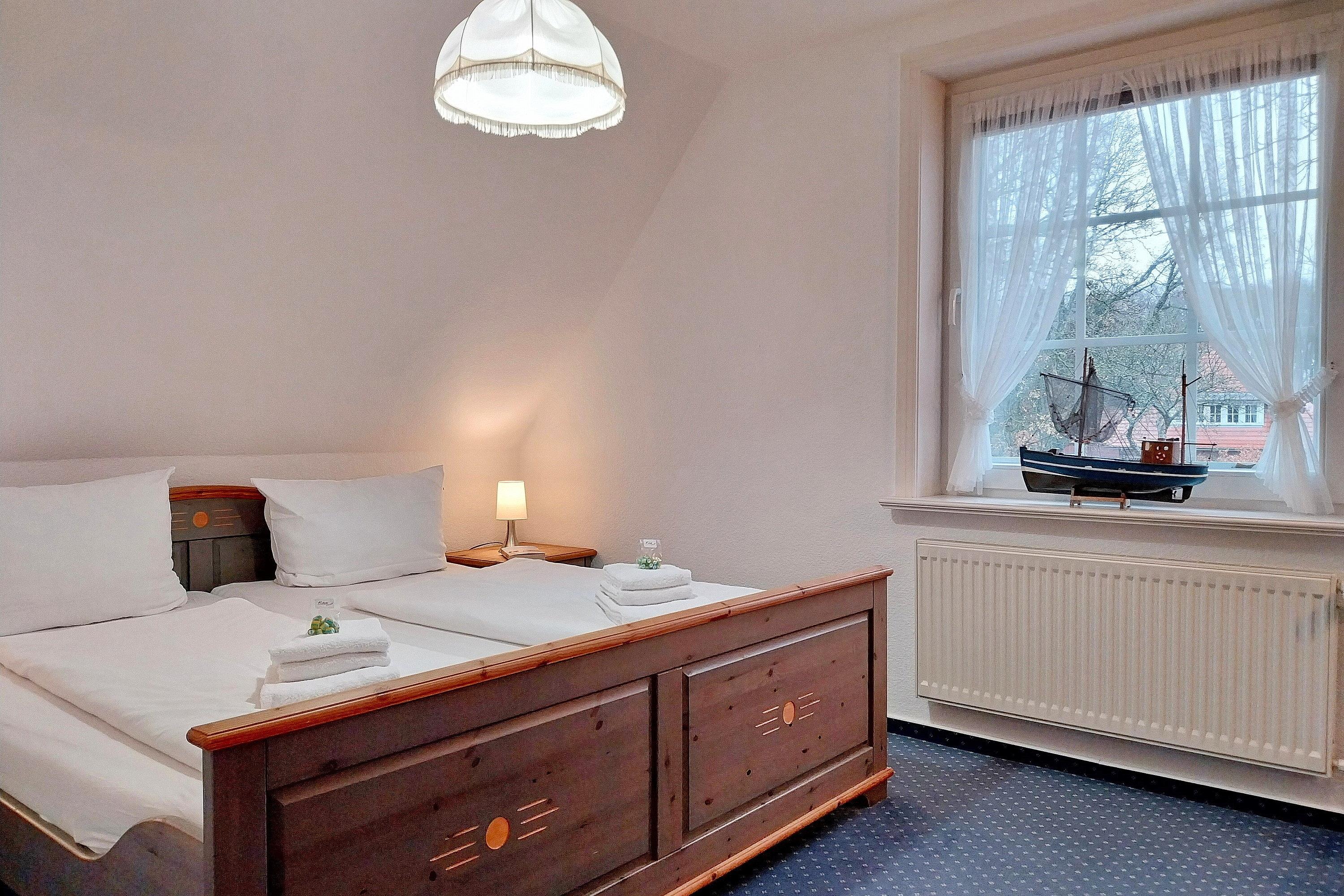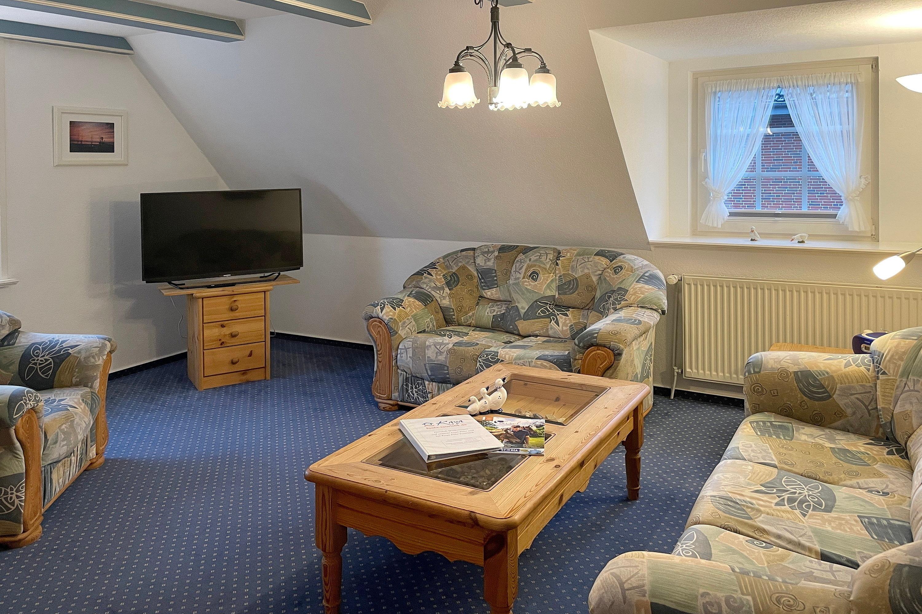 Die Wohnung Sieck 2 ist eine ca. 58 qm große Ferienwohnung in der ersten Etage und bietet 4 (bis maximal 5) Personen genügend Platz für einen entspannten und erholsamen Urlaub. Das behagliche Wohnzimmer ist lichtdurchflutet und bietet Ihnen neben W-Lan, Flachbild-TV und CD-Player eine gemütliche Sitzgruppe an. Ruhige und erholsame Nächte verbringen Sie in den beiden Schlafzimmern mit je einem Doppelbett, Verdunklungsrollos und einem Kleiderschrank. In einem der beiden Schlafzimmer befindet sich zusätzlich ein Einzelbett. In der gut ausgestatteten Küche mit Ceranfeldherd und Backofen, Geschirrspüler und Mikrowelle, Kaffeemaschine, Wasserkocher und Kühlschrank mit Gefrierfach können Sie sich auch prima selber versorgen, wenn Sie nicht in eines der netten Restaurants auf der Insel gehen möchten. In der Küche befindet sich ebenfalls eine kleine Essgruppe. Das Bad ist hell gefliest und verfügt über eine Dusche und ein Fenster. Planen Sie gleich Ihren Urlaub und schauen Sie sich die Fotos an. Wir freuen uns auf Sie!