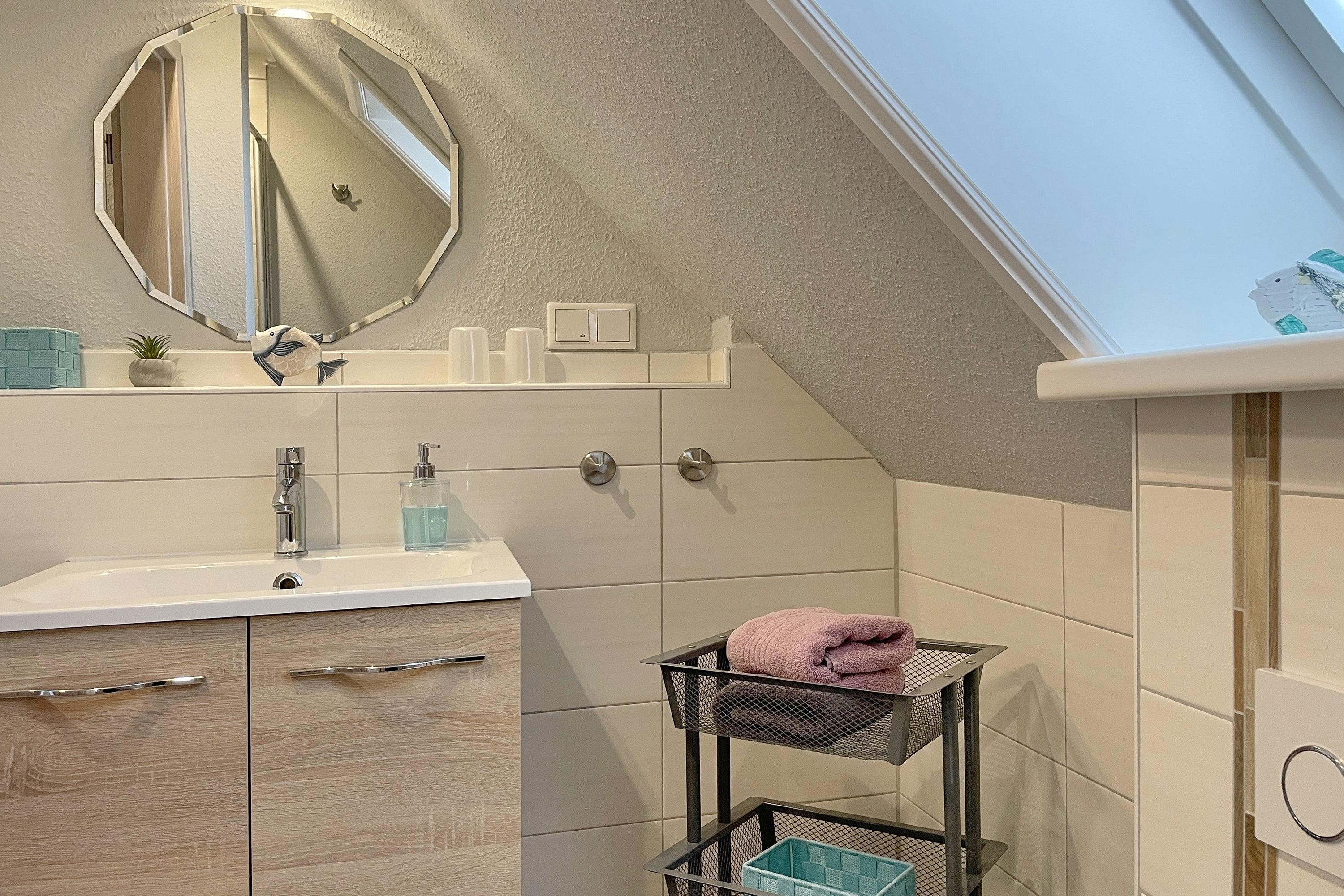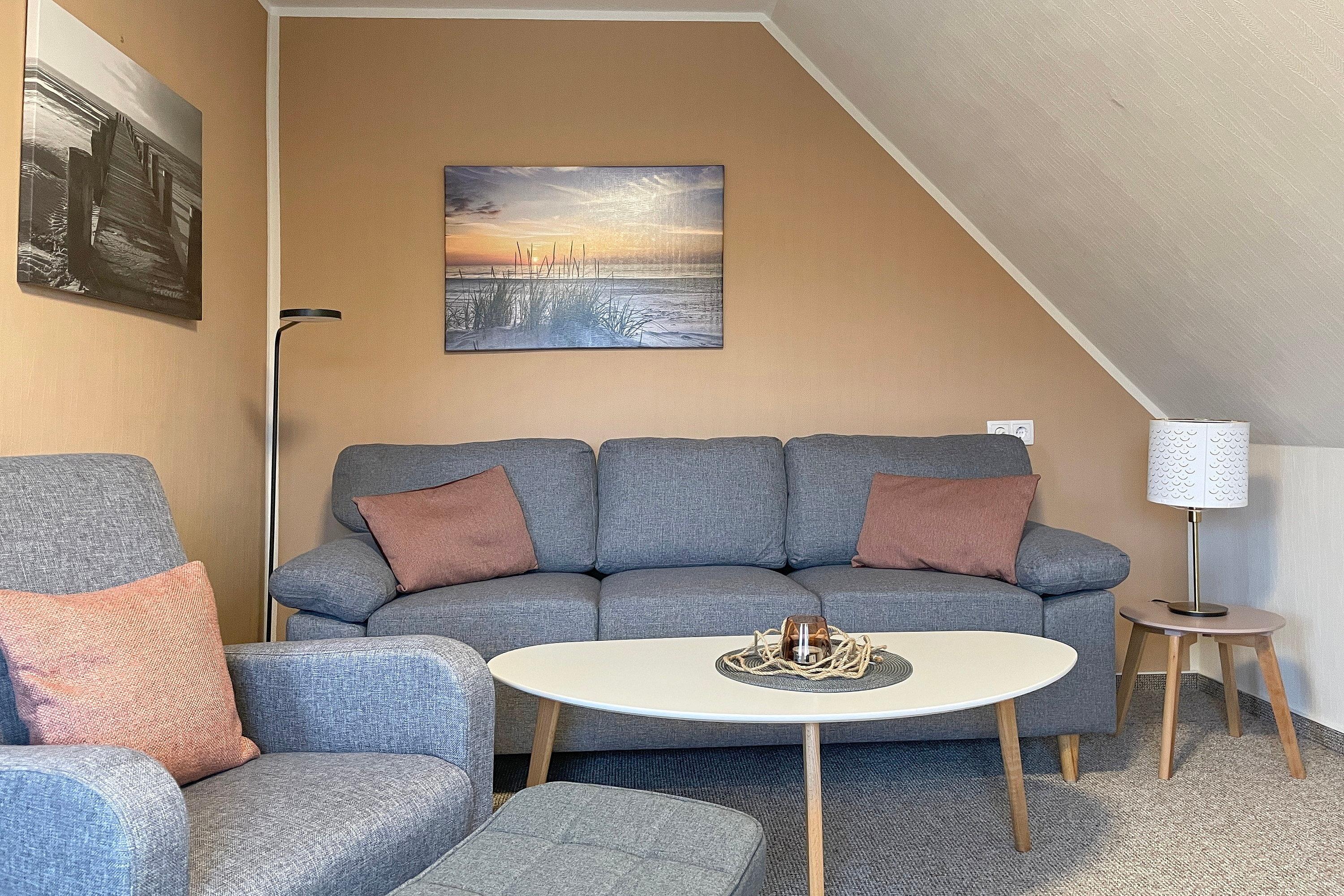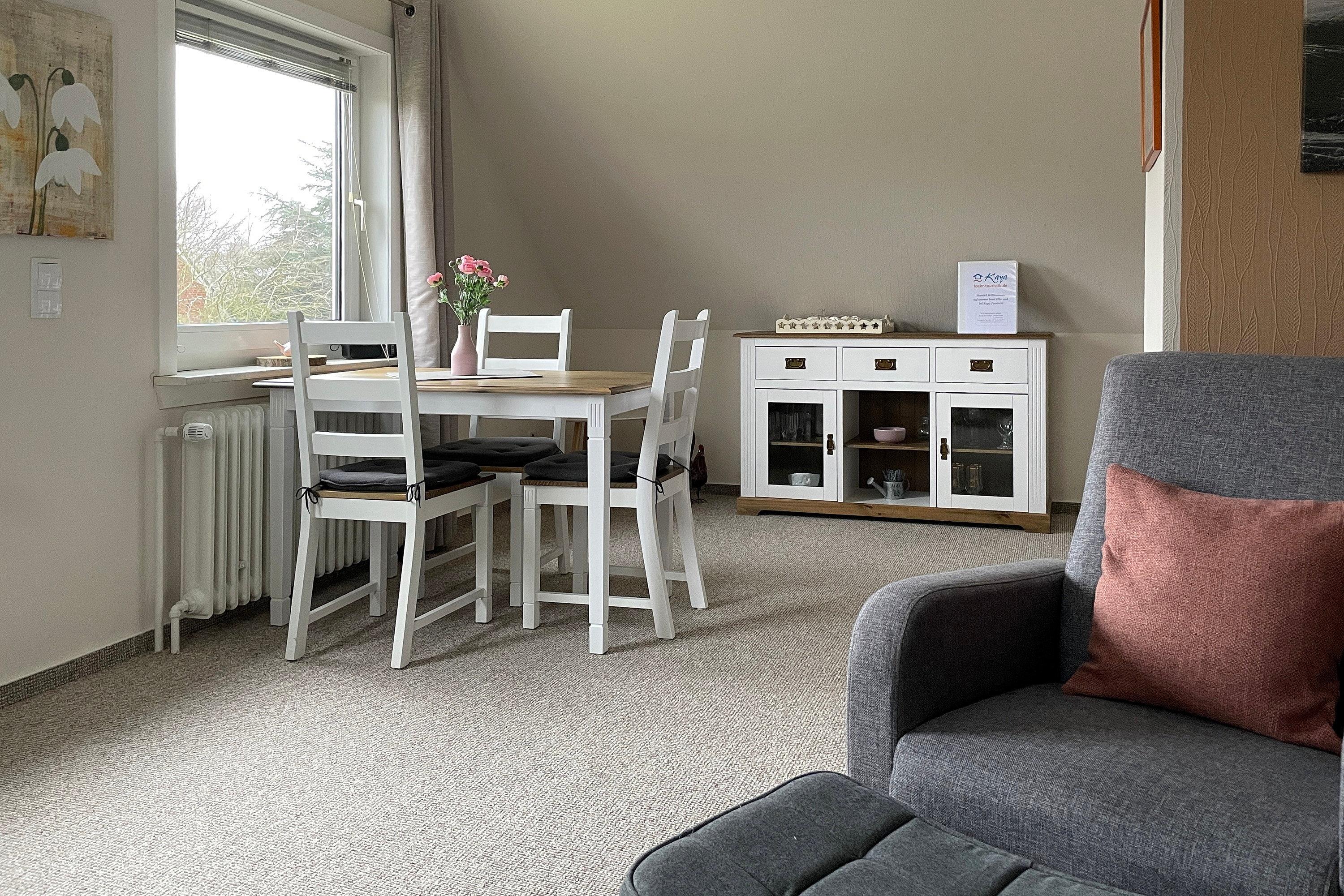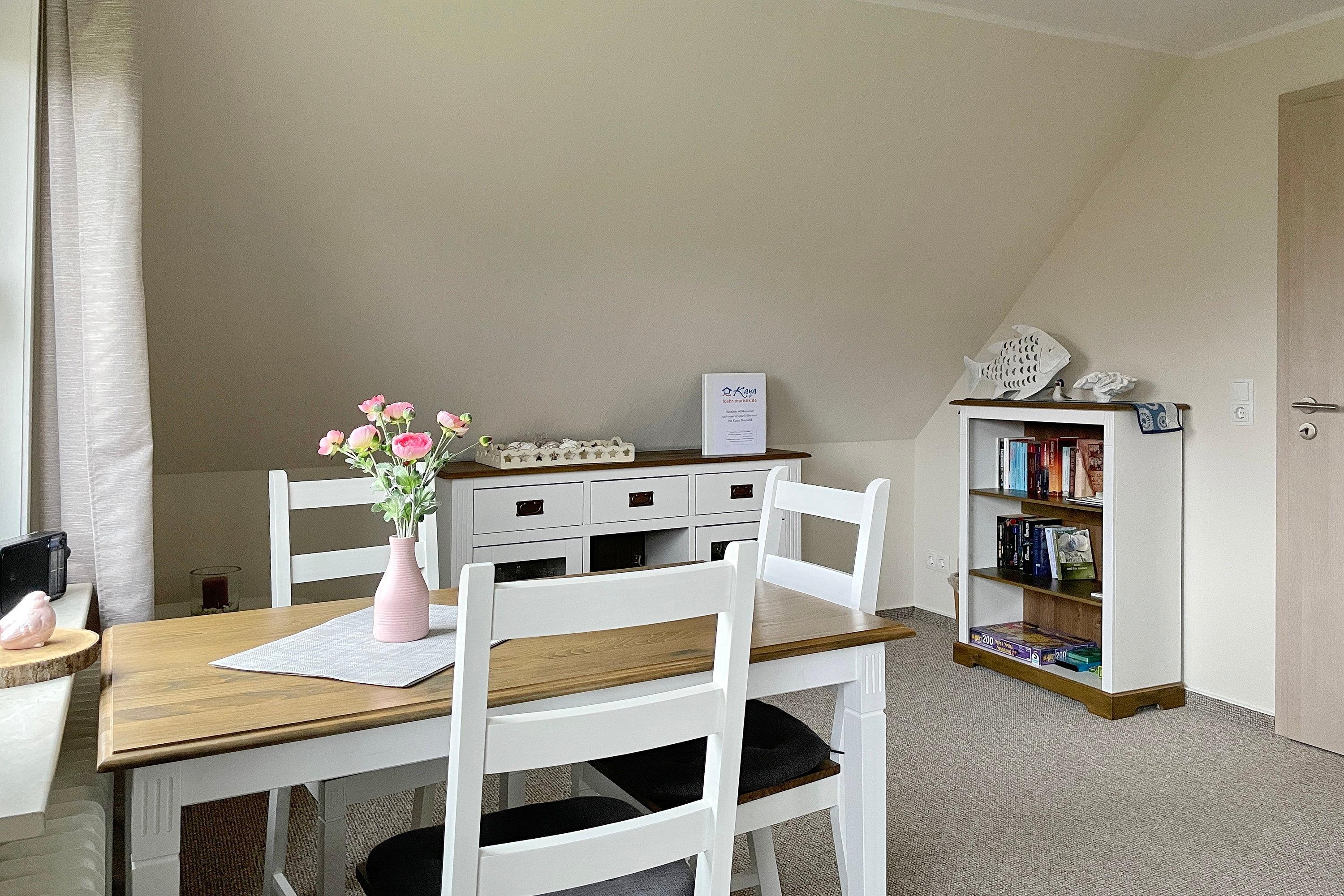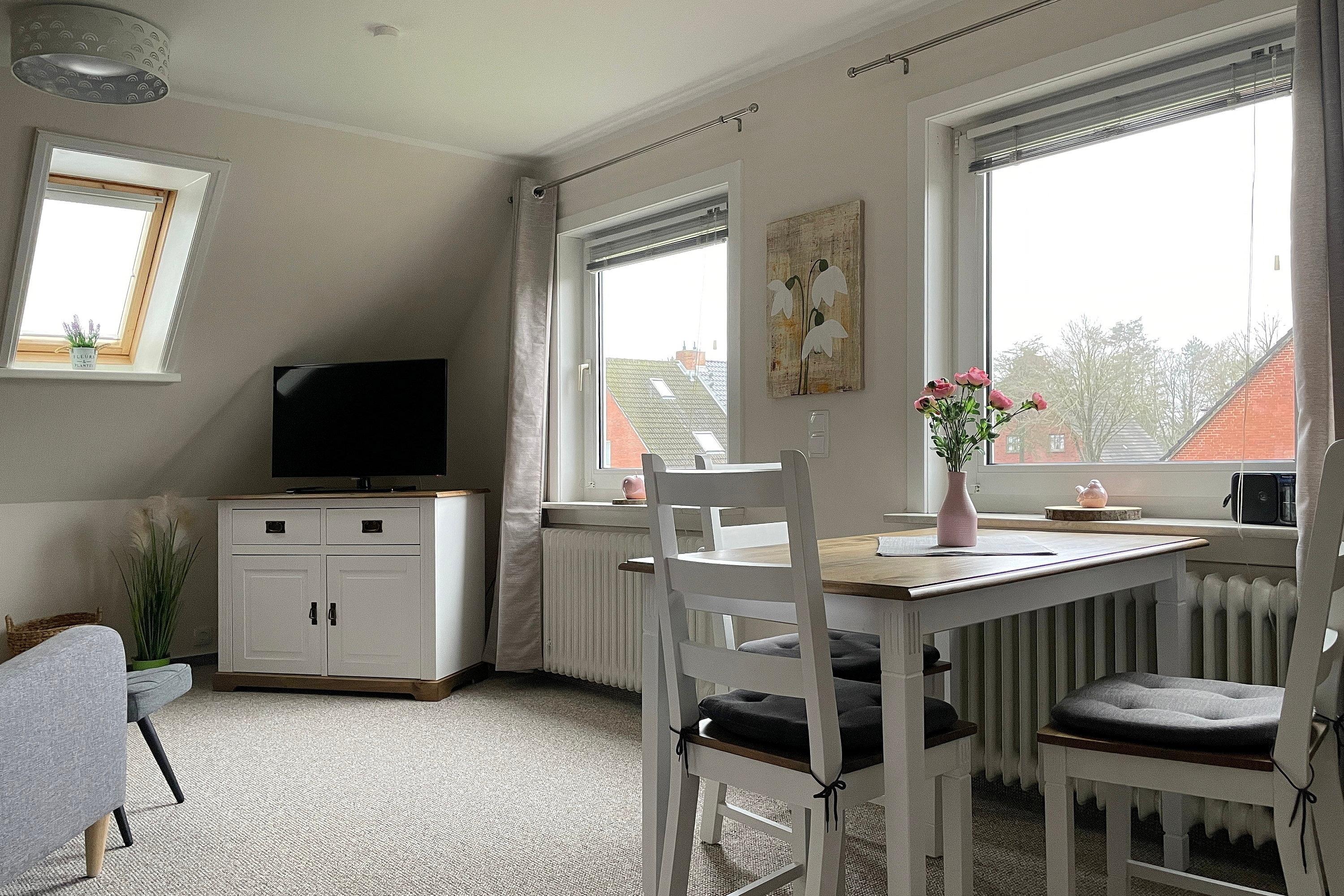 Die Wohnung Sonnenblick liegt im ersten Obergeschoss eines gepflegten Hauses mitten in Wyk. Von hier aus erreichen Sie mit dem Rad schnell den Südstrand, die Innenstadt oder den herrlichen Stadtpark- doch auch die Inseldörfer können gut angesteuert werden.