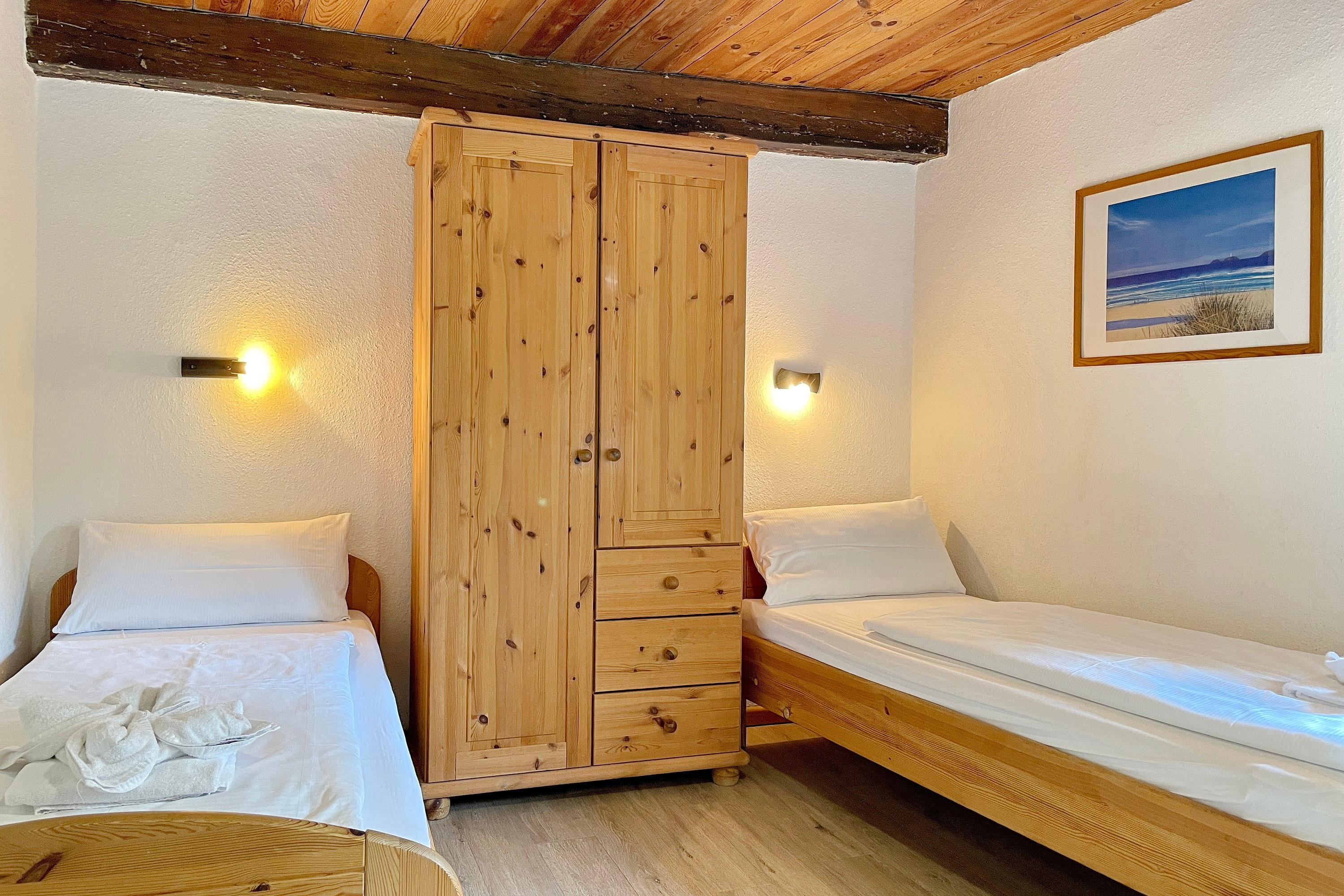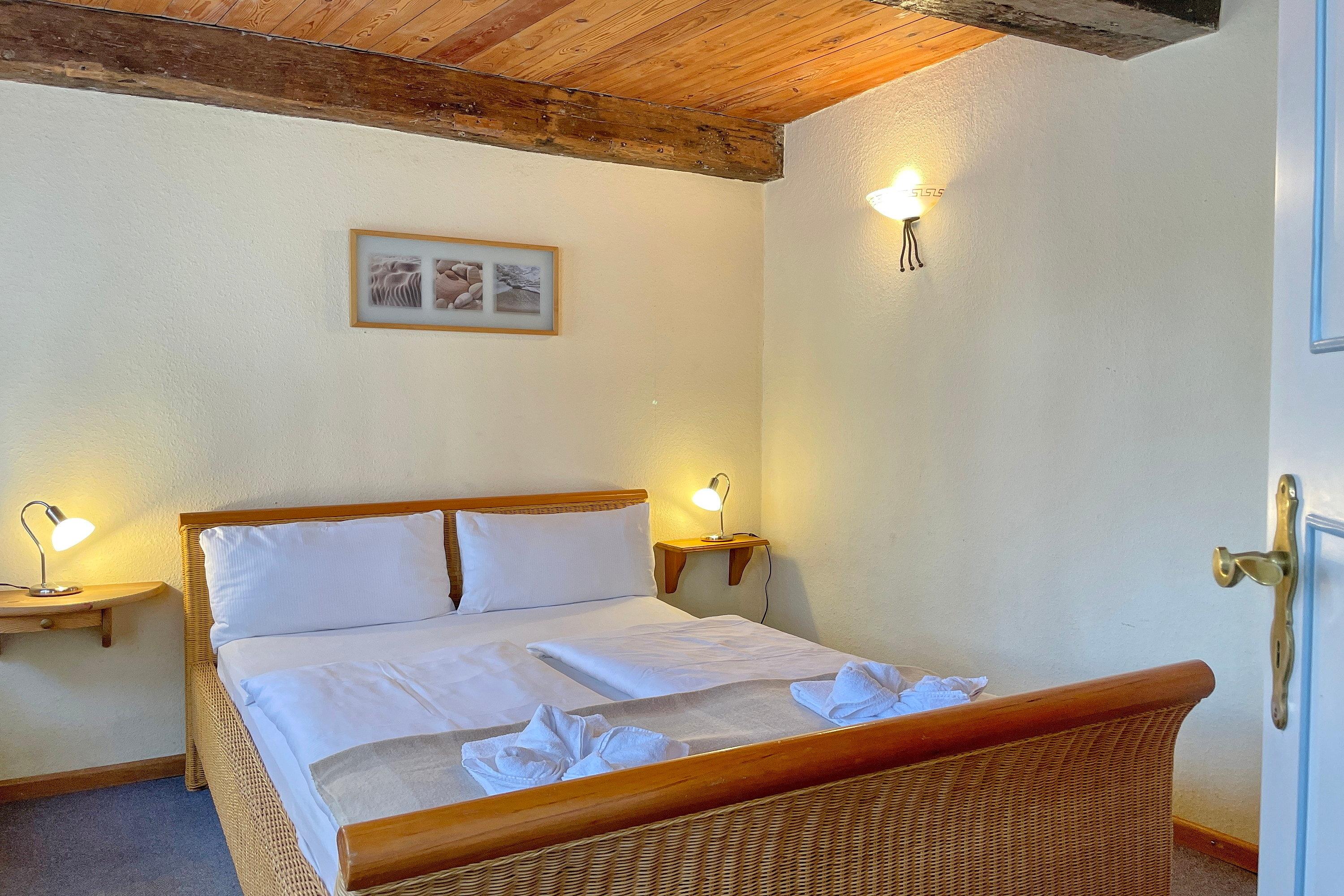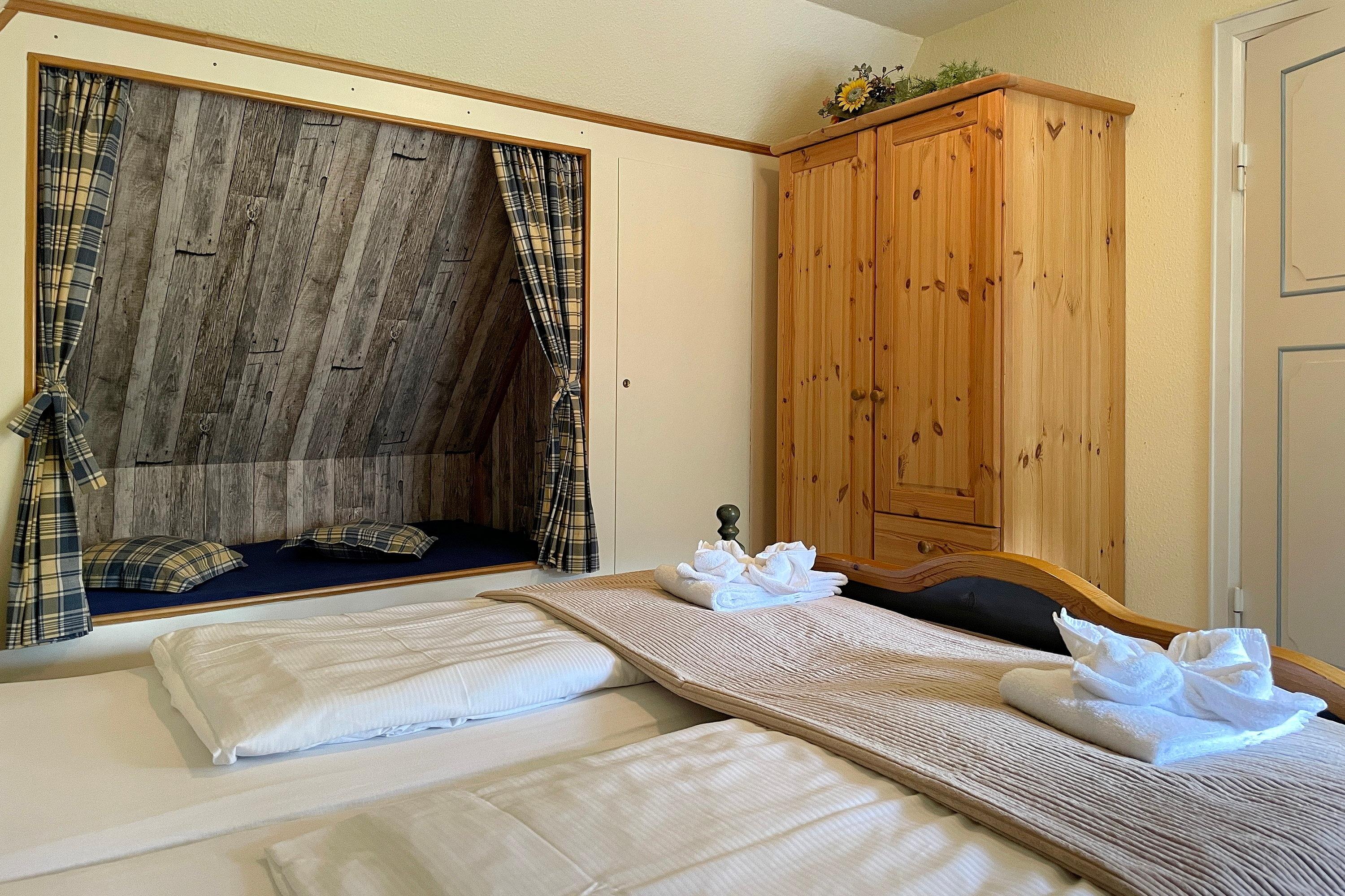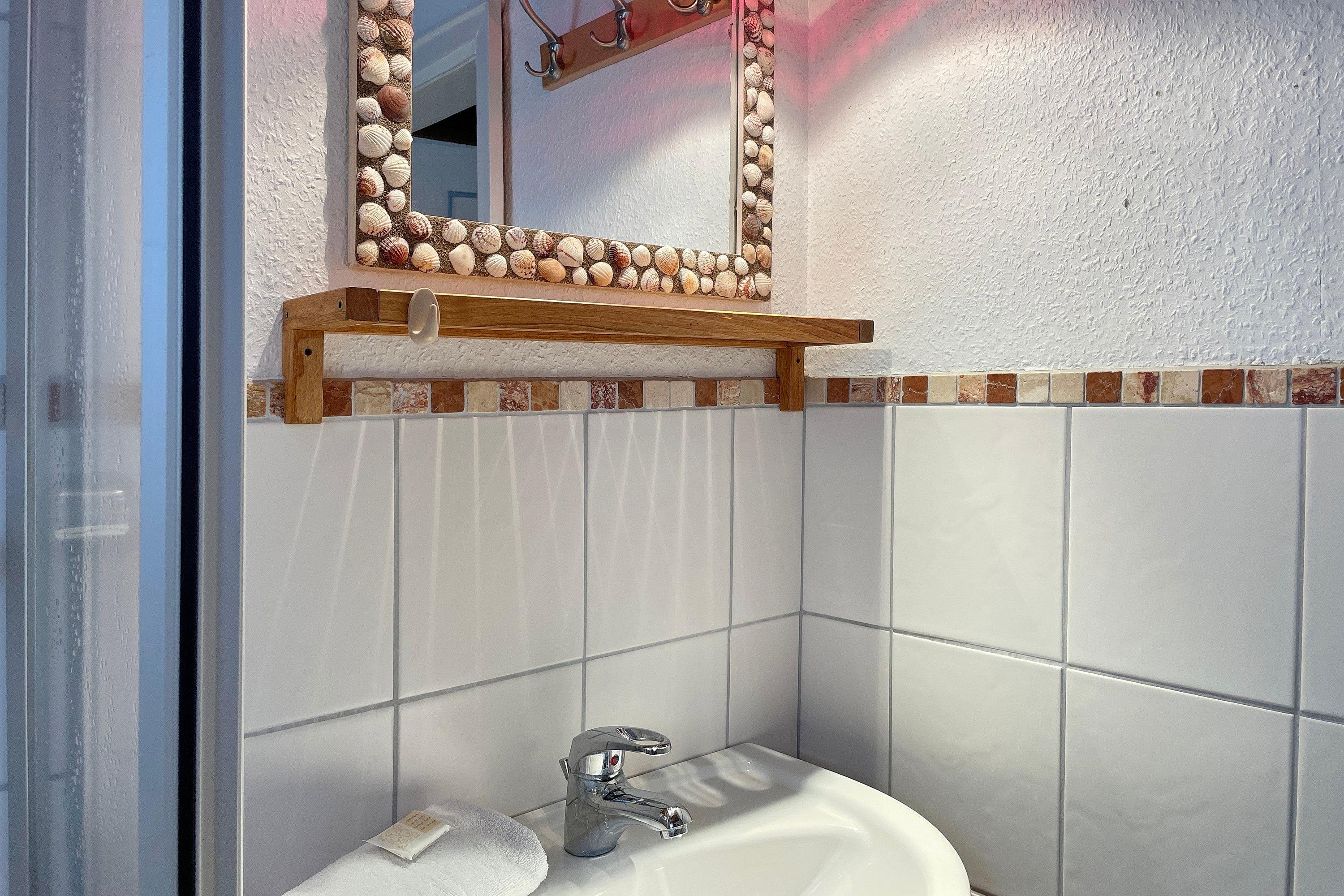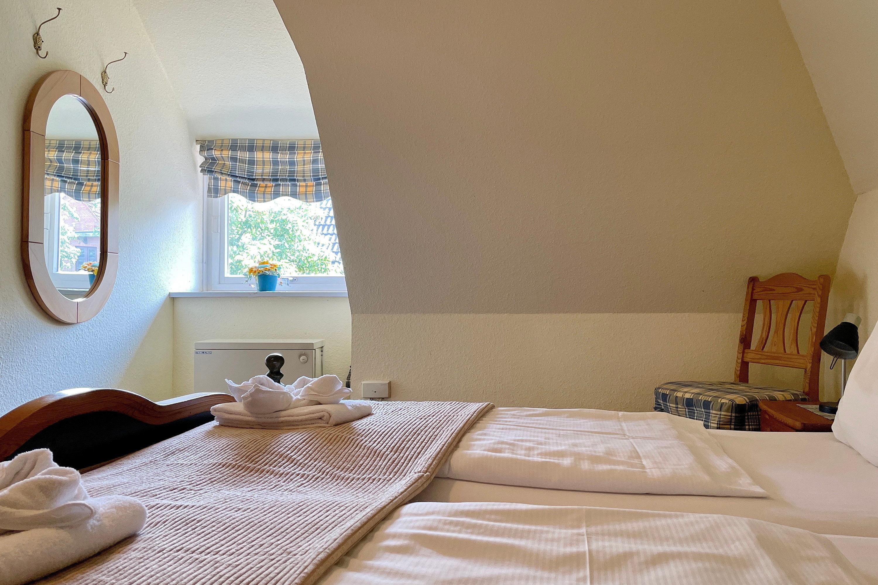 In der Hafenstaße im Herzen von Wyk liegt das gemütliche Haus Stamp, nur wenige Minuten vom Strand und vom Hafen entfernt. Alle wichtigen Versorgungseinrichtungen wie Bäckereien und Supermärkte befinden sich in unmittelbarer Umgebung, ebenso wie die Fußgängerzone und die Strandpromenade mit Boutiquen, Cafés, Kino, Restaurants und vielem mehr! Das Domizil Stamp ist ein reetgedecktes Friesenhaus für 6 Personen und heißt Sie mit seinem friesischen Charme Willkommen. Erleben Sie die friesische Gemütlichkeit und Gastfreundschaft in Ihrem Domizil. Im Erdgeschoss befinden sich 2 Schlafräume, eines mit Doppelbett (140 x 200 cm), das andere mit 2 Einzelbetten (80 x200 cm) und einem zusätzlichem Waschbecken. Das gemütliche Wohnzimmer mit WLAN, Musikanlage und Flachbild-TV lädt zum Entspannen ein und wirkt behaglich. Die Wohnküche mit Essplatz, Geschirrspüler, Backofen, Mikrowelle, Kaffeemaschine und vielem mehr führt Sie auf die Terrasse und den Garten, wo Sie herrliche Sonnenstunden im Sommer verbringen können. Eine kleine Besonderheit stellt die altfriesische Durchreiche ins Wohnzimmer dar. Auf beiden Etagen befindet sich ein Duschbad, das funktional und liebevoll gestaltet wurde. Das dritte Schlafzimmer mit einem Doppelbett (180 x 200cm) und einem zusätzlichem Kojenbett (80 x 180 cm) erreichen Sie über die Treppe, die zum ersten Obergeschoss führt. Hier gibt es weiterhin einen zusätzlichen Wohnraum mit einem weiteren Kojenbett (80x180cm), der sich hervorragend eignet, wenn Sie sich einmal zurückziehen möchten.