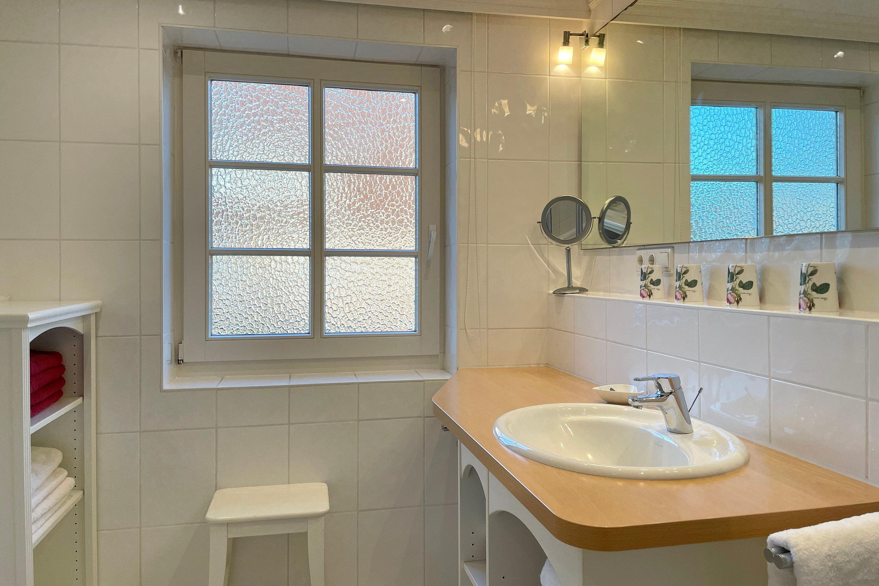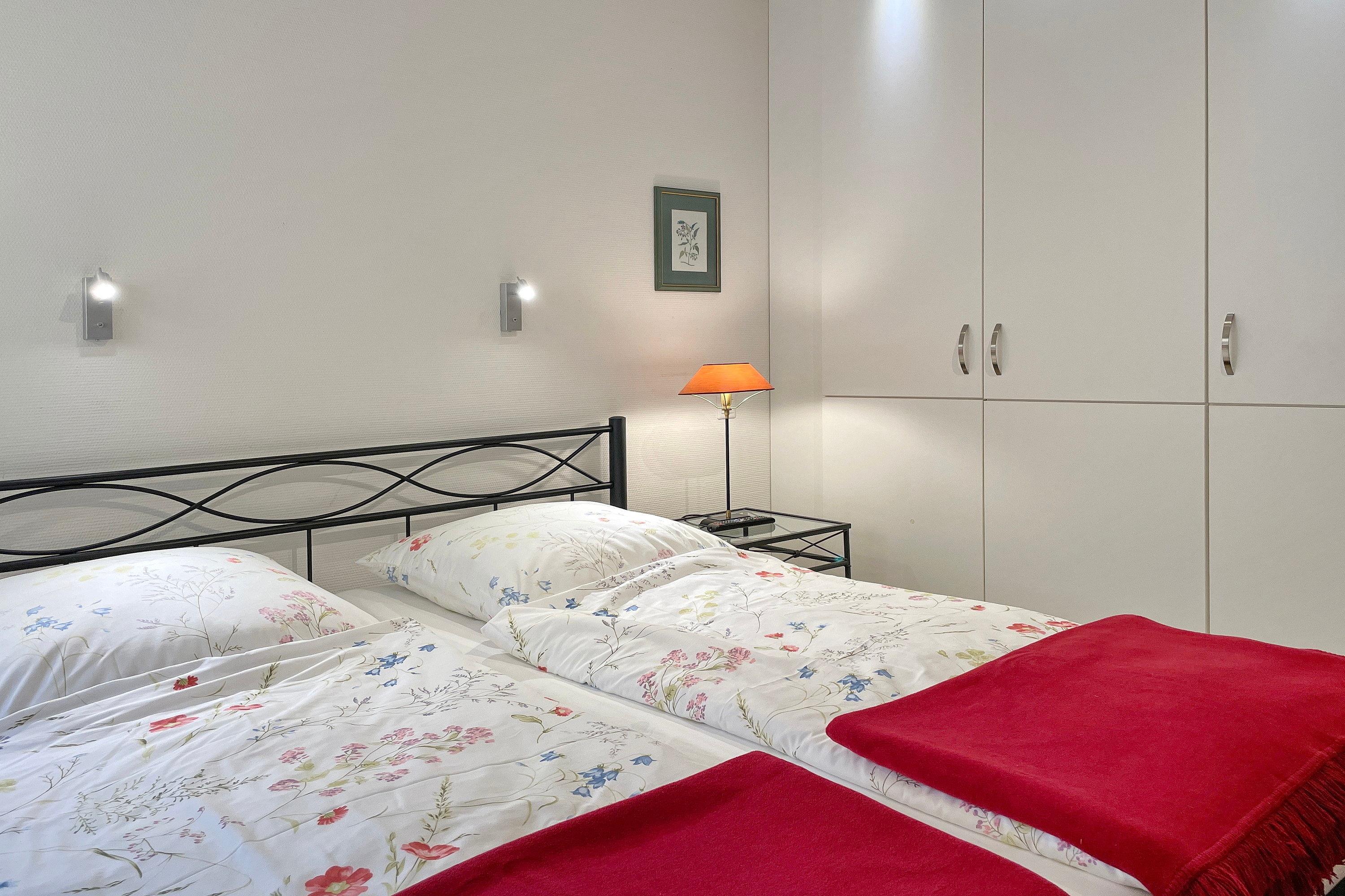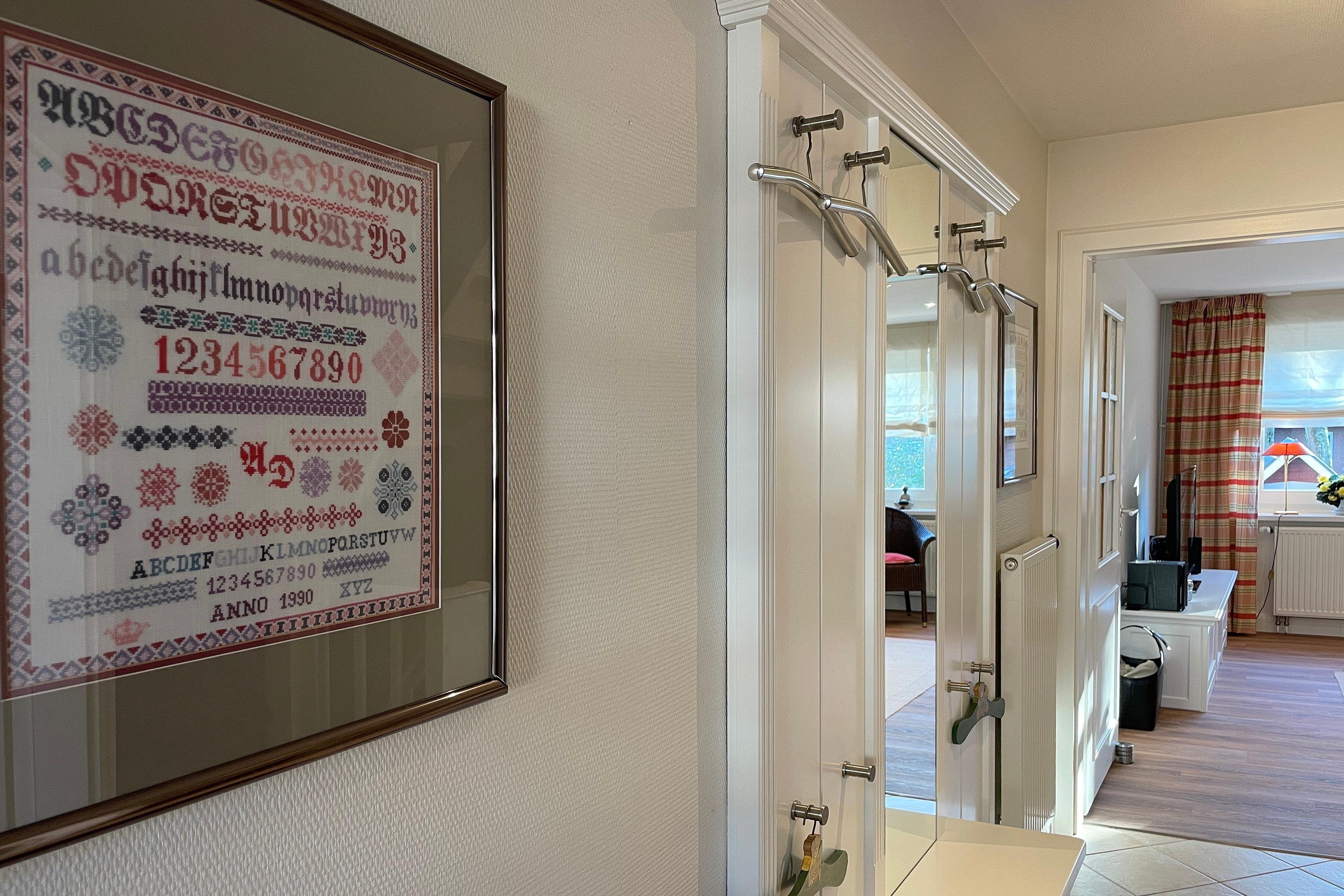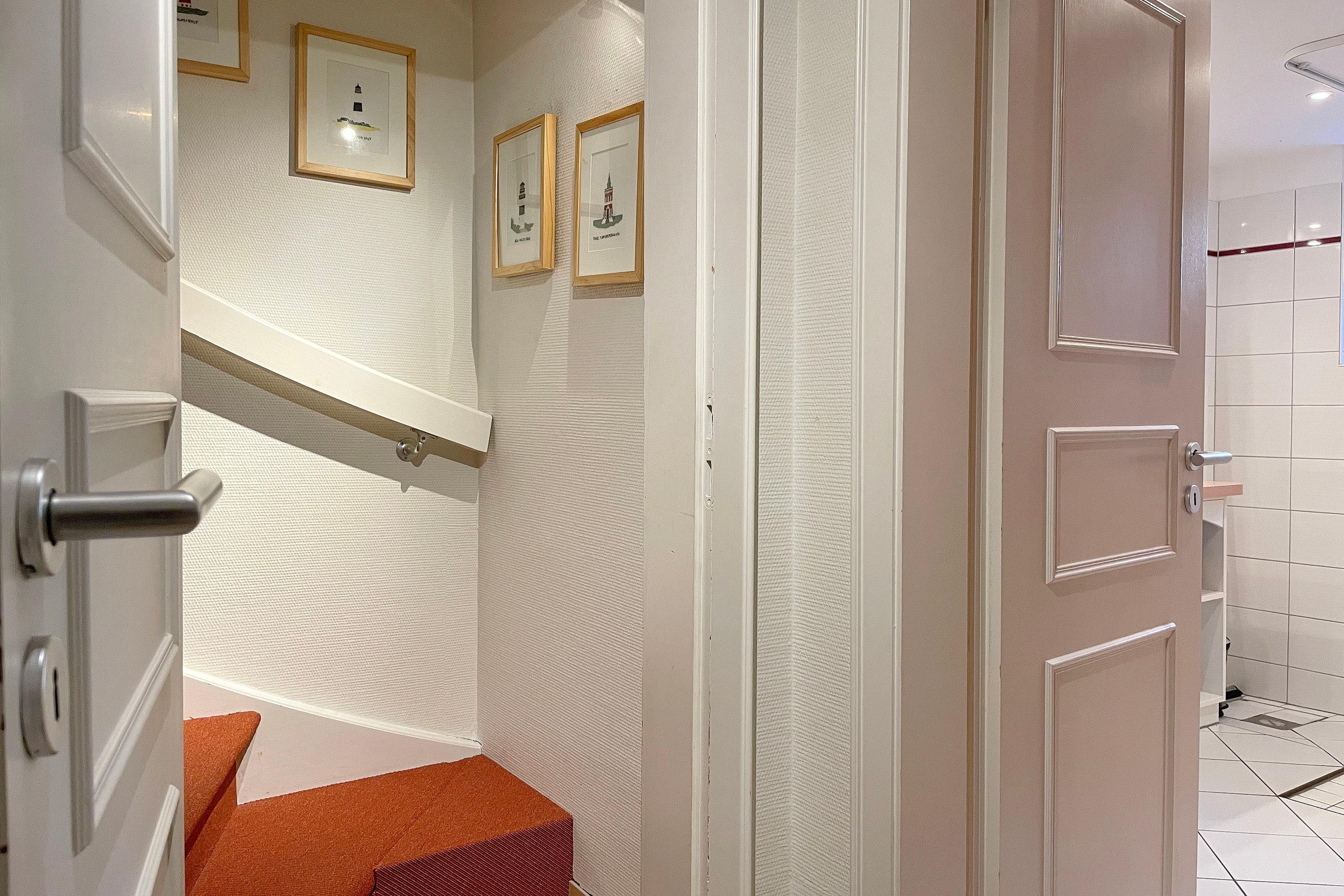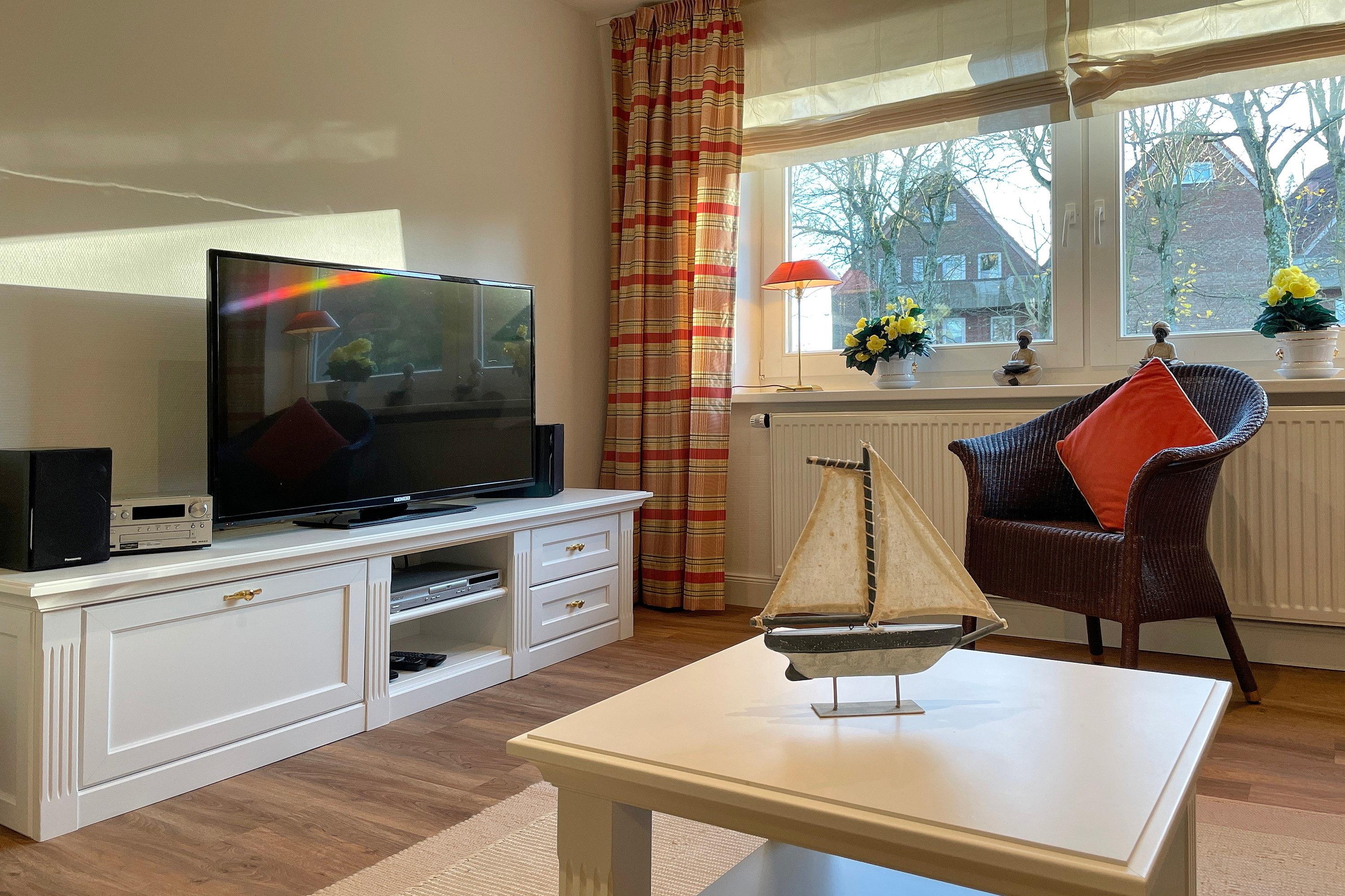 Im Erdgeschoss befindet sich das lichtdurchflutete Wohnzimmer ebenso das zweite großzügige Badezimmer mit Dusche. Ein behagliches Schlafzimmer mit Doppelbett und das Kinderzimmer mit zwei Einzelbetten stehen im Obergeschoss zur Verfügung. Zum Zentrum der Stadt Wyk laufen Sie am Strand entlang ca. 10 Minuten und den Bäcker erreichen Sie morgens in ca. 5 Fußminuten. Genießen Sie Ihren wohlverdienten Urlaub in dieser erstklassigen und sehr gut ausgestatteten Hausscheibe.