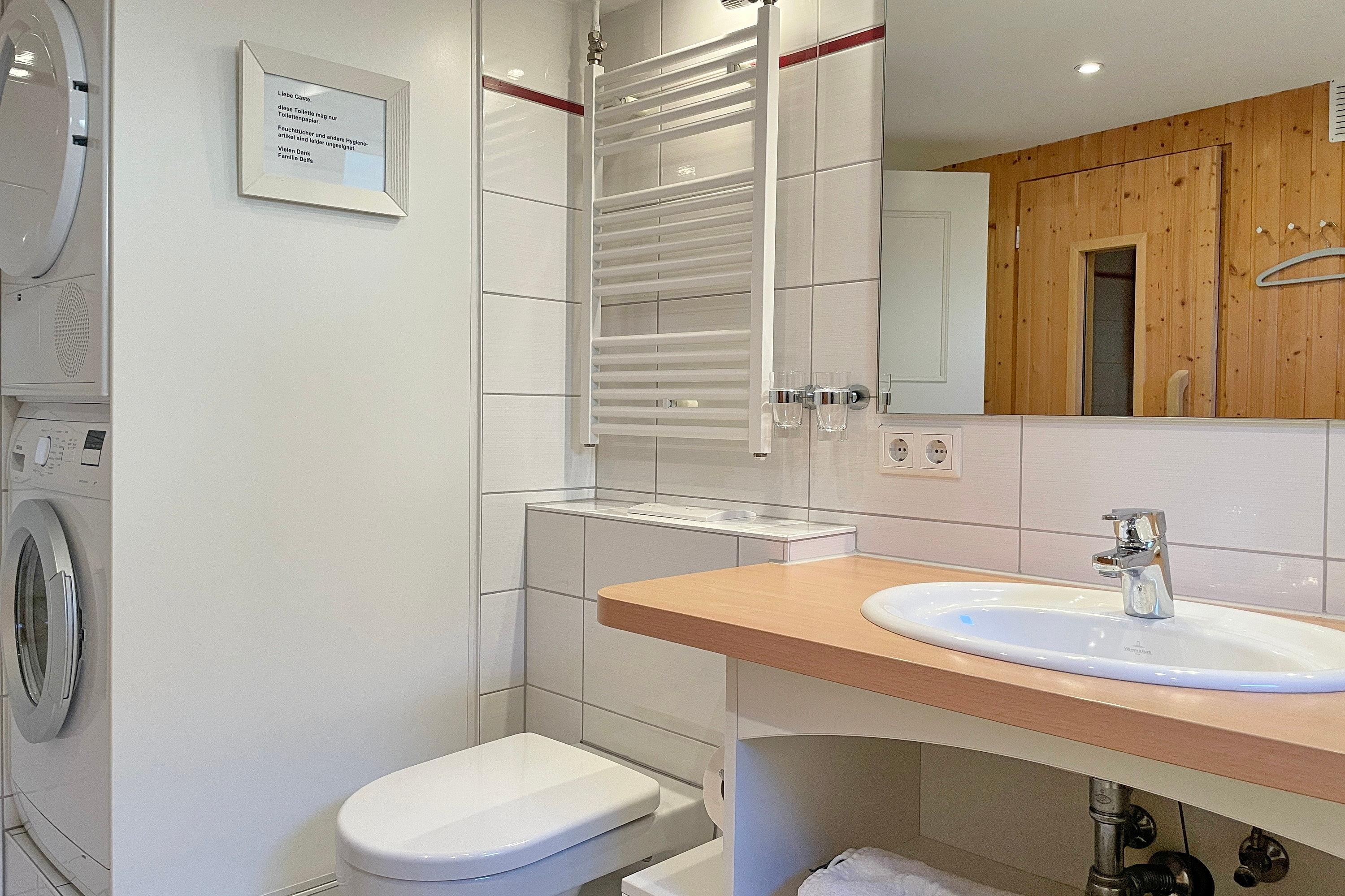 Die Hausscheibe -über 3 Etagen- ist modern und gemütlich eingerichtet und erfüllt mit der umfassenden Ausstattung höchste Ansprüche. Im Untergeschoss befindet sich die Küche mit Essbereich und Zugang zur Terrasse, sowie ein Badezimmer, Waschmaschine, Trockner und die Sauna.