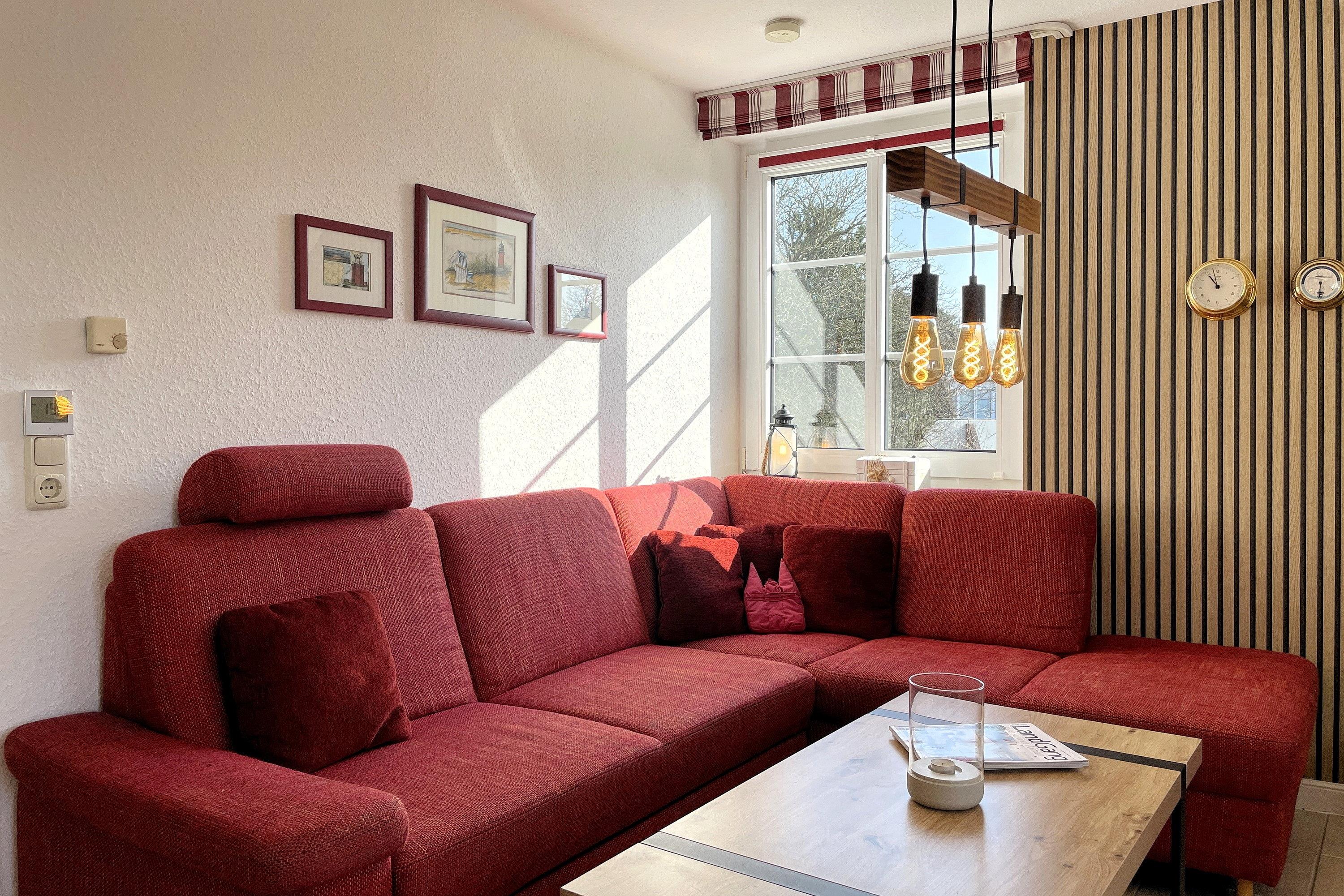 Der komfortable Wohnbereich ist ausgestattet mit WLAN, Kabel-Smart TV, DVD-Player und Stereoanlage.
