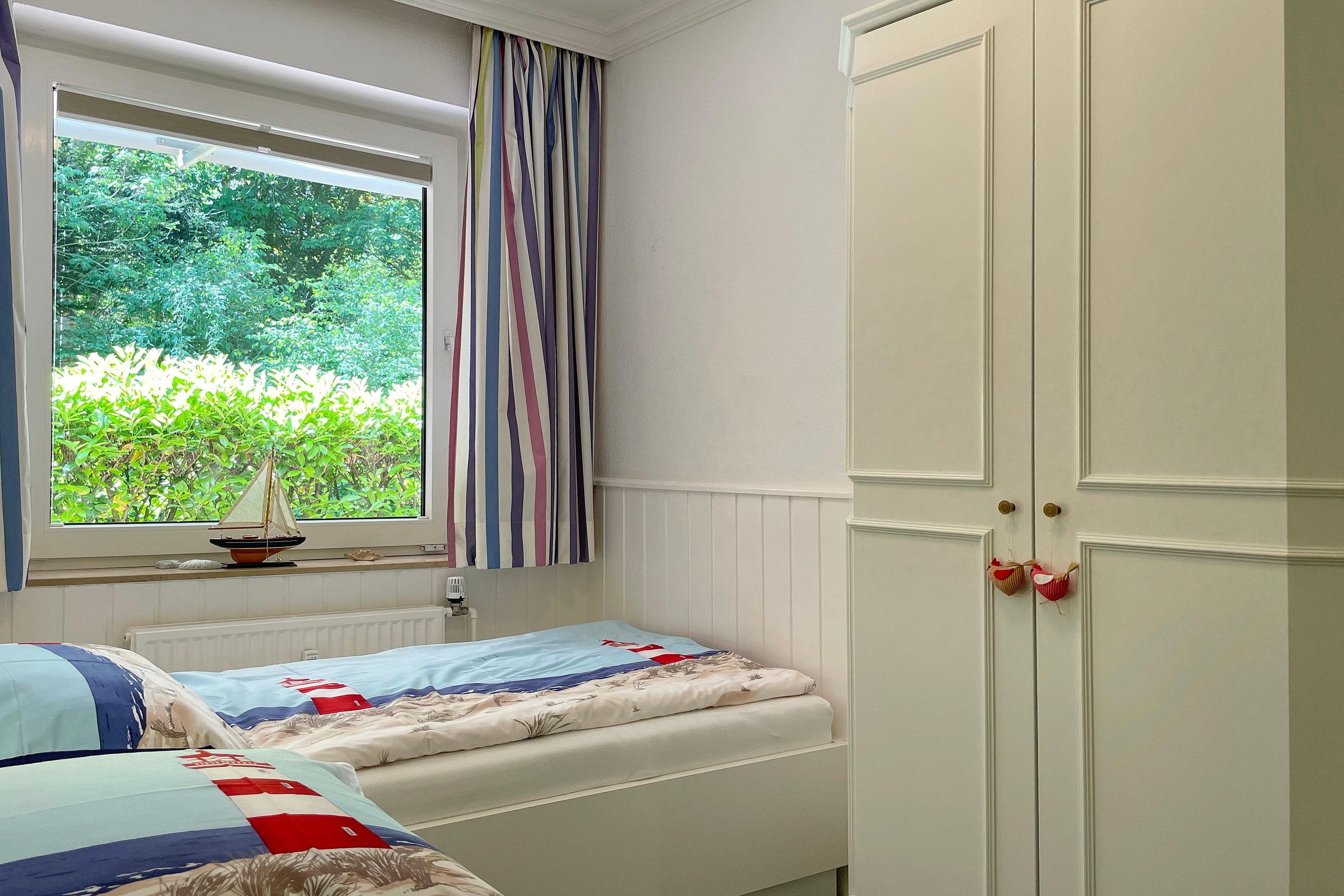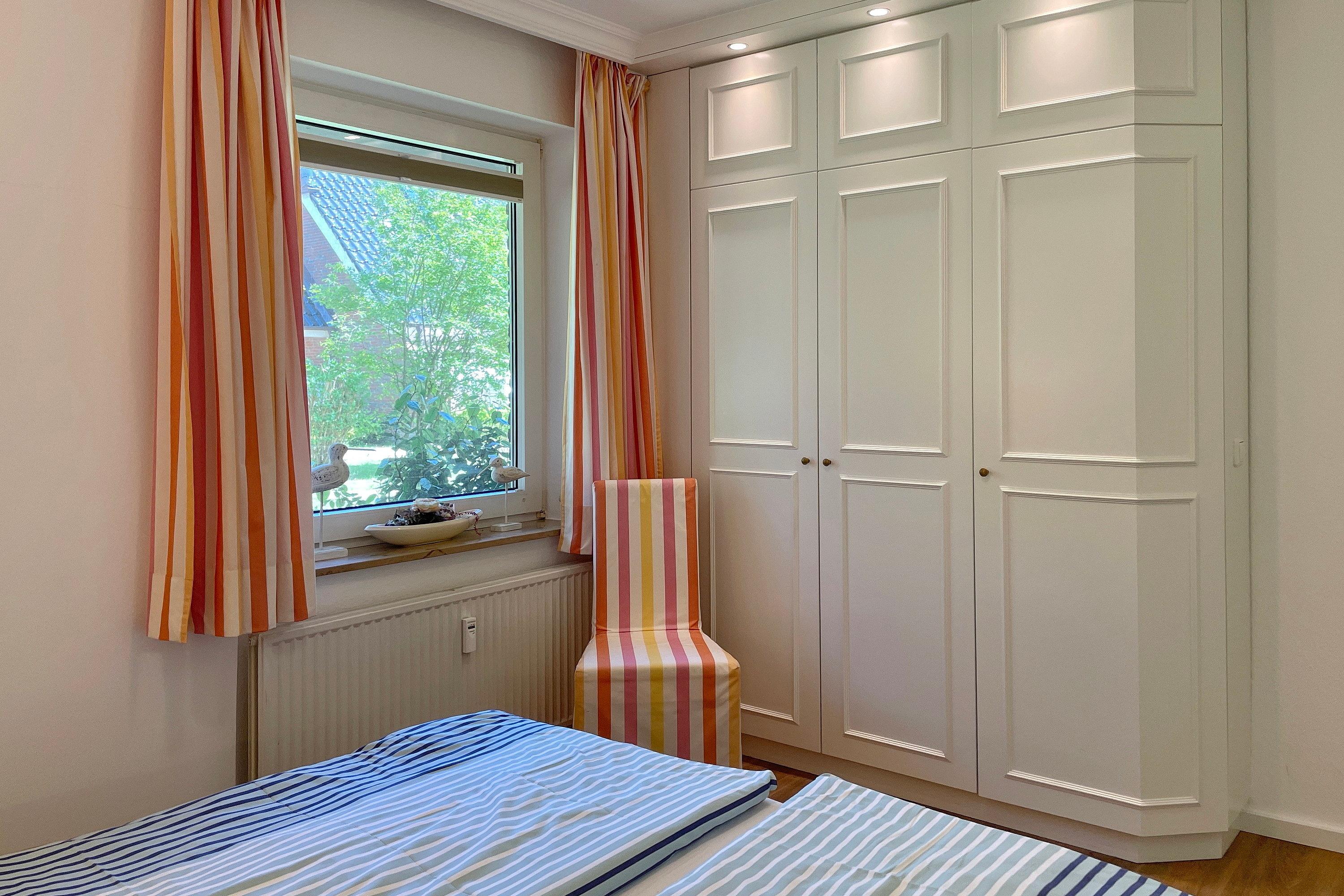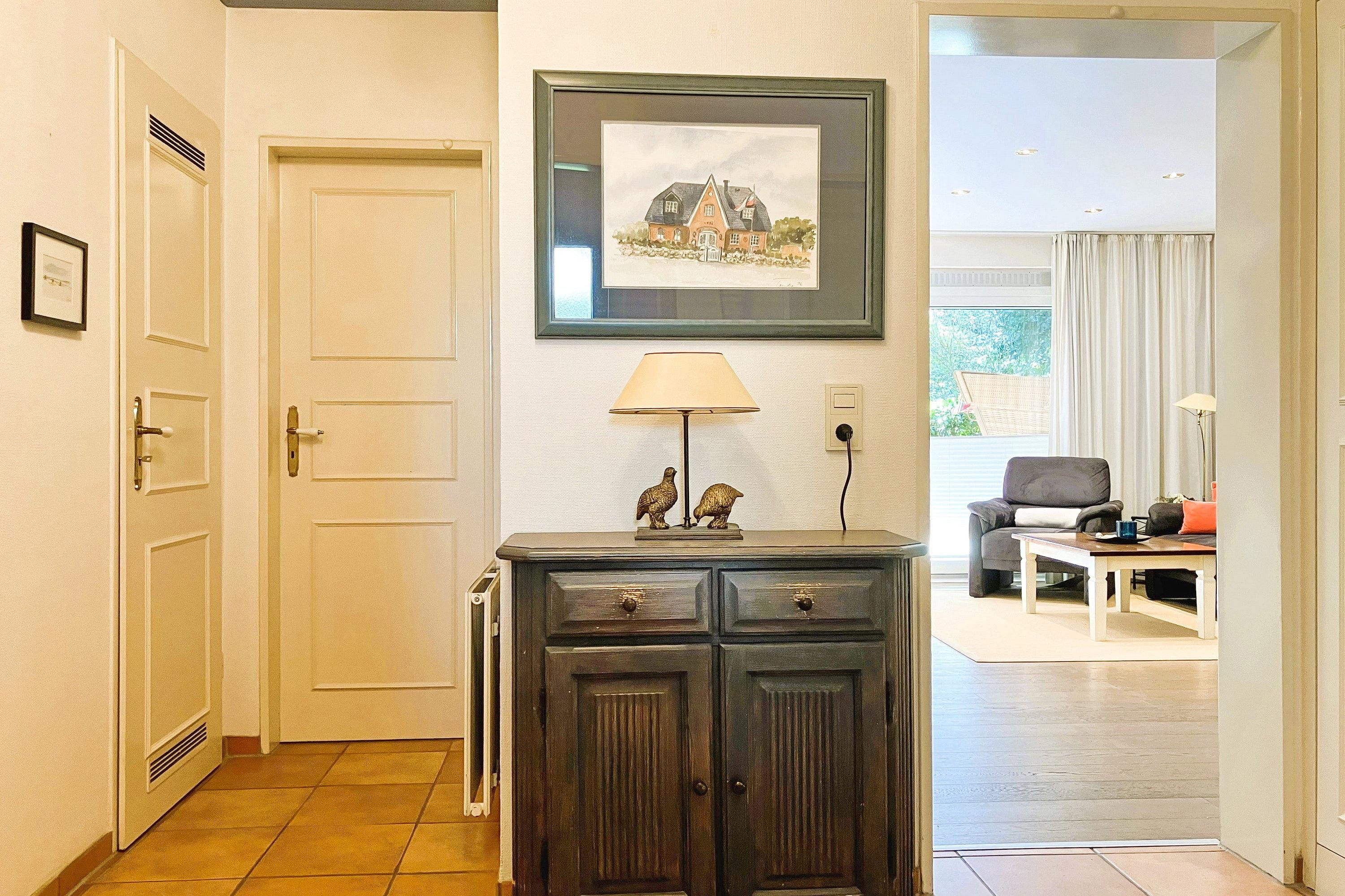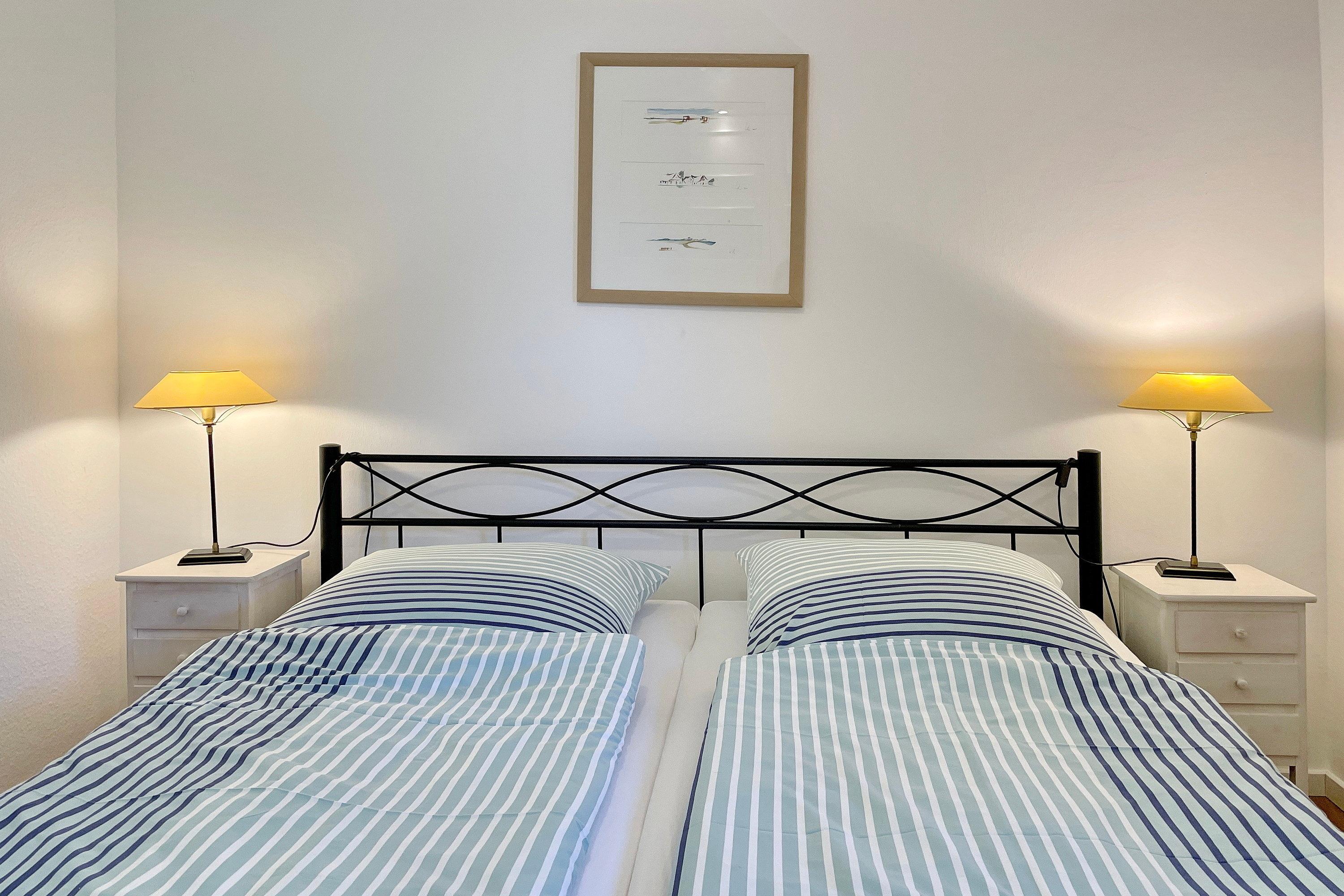 Früher war Föhr als die "grüne Insel" bekannt und in unserer "Wohnung 12 am Südstrand" wird man daran erinnert. Nur ca. 200m entfernt vom beliebten Wyker Südstrand liegt die Unterkunft mitten im alten Kurpark mit seinem vielseitigen Baumbestand. Hier können bis zu 4 Personen entspannen und vom stressigen Alltag abschalten. Genießen können Sie nicht nur die Lage inmitten der Natur, sondern auch Ihr Feriendomizil mit der hochwertigen und geschmackvollen Einrichtung, die keine Wünsche offen lässt. Zwei gemütliche Schlafzimmer, ein Bad mit ebenerdiger Dusche und der weitläufige Wohnbereich mit bequemer Sitzgruppe, Essecke und Küchenzeile sind charmant und gepflegt. Auf Ihrer Terrasse wartet in den Sommermonaten (ca. Mai bis ca. September) ein eigener Strandkorb auf Sie, der das Föhr-Urlaubs-Feeling vollendet. Buchen Sie gleich Ihren nächsten Föhr-Aufenthalt in unserer Wohnung 12 am Südstrand.