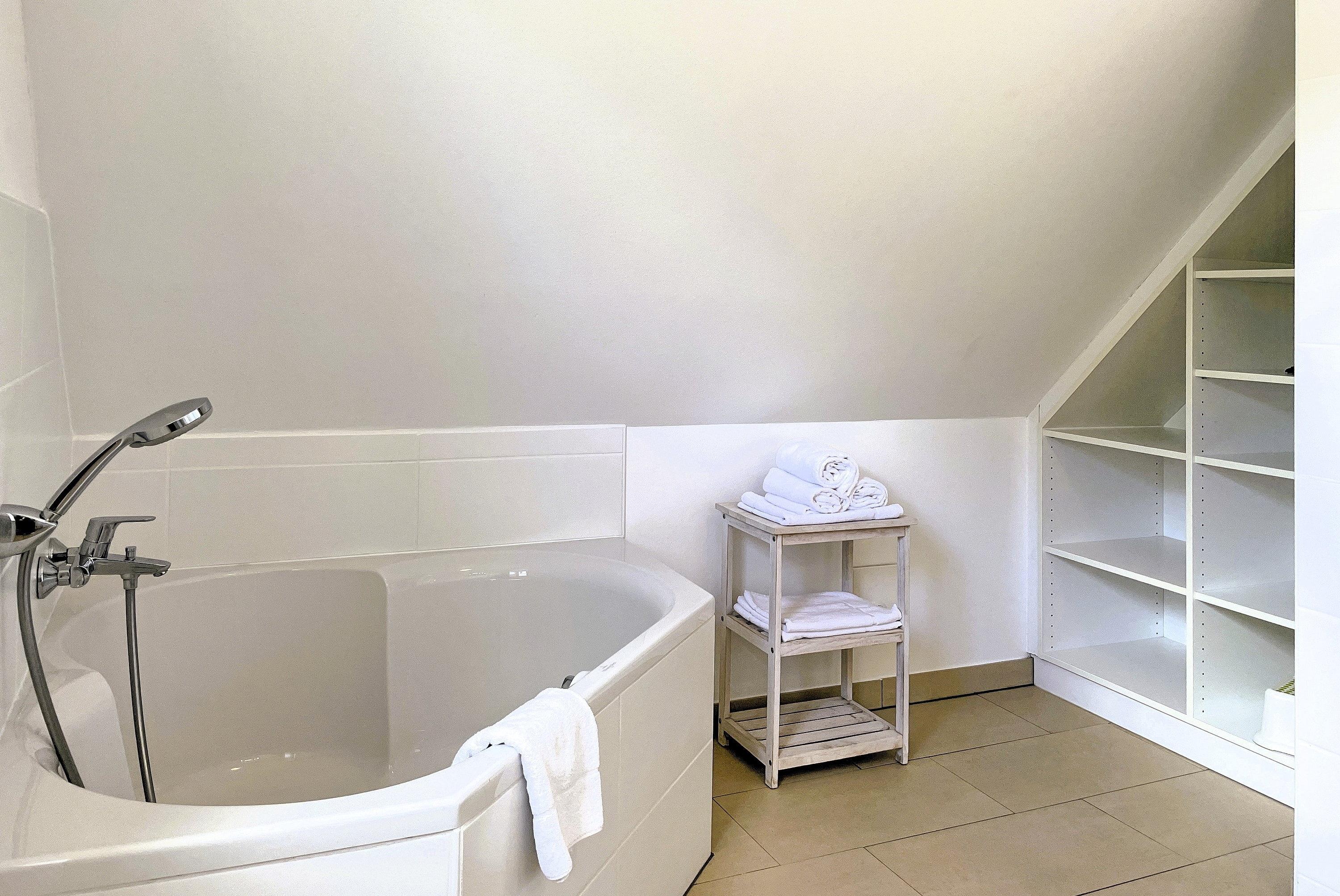 Das WC ist separat. Im Keller finden Sie eine große Waschmaschine, sowie einen Wäschetrockner. Ferner ist das Haus mit W-LAN ausgestattet. Auf Kinderfreundlichkeit wird großen Wert gelegt, so sind in allen Bereichen ausschließlich kindersichere Steckdosen eingebaut worden. Es stehen Wickelmöglichkeit, Babybadewanne, Hochstühlchen, Laufställchen, sowie Töpfchen und auch Babygeschirr zur Verfügung. Auf dem großen Waldspielplatz Löwenhöhle oder im Friesenmuseum gleich in der Nachbarschaft finden Klein und Groß Spaß und interessantes über die grüne Insel.