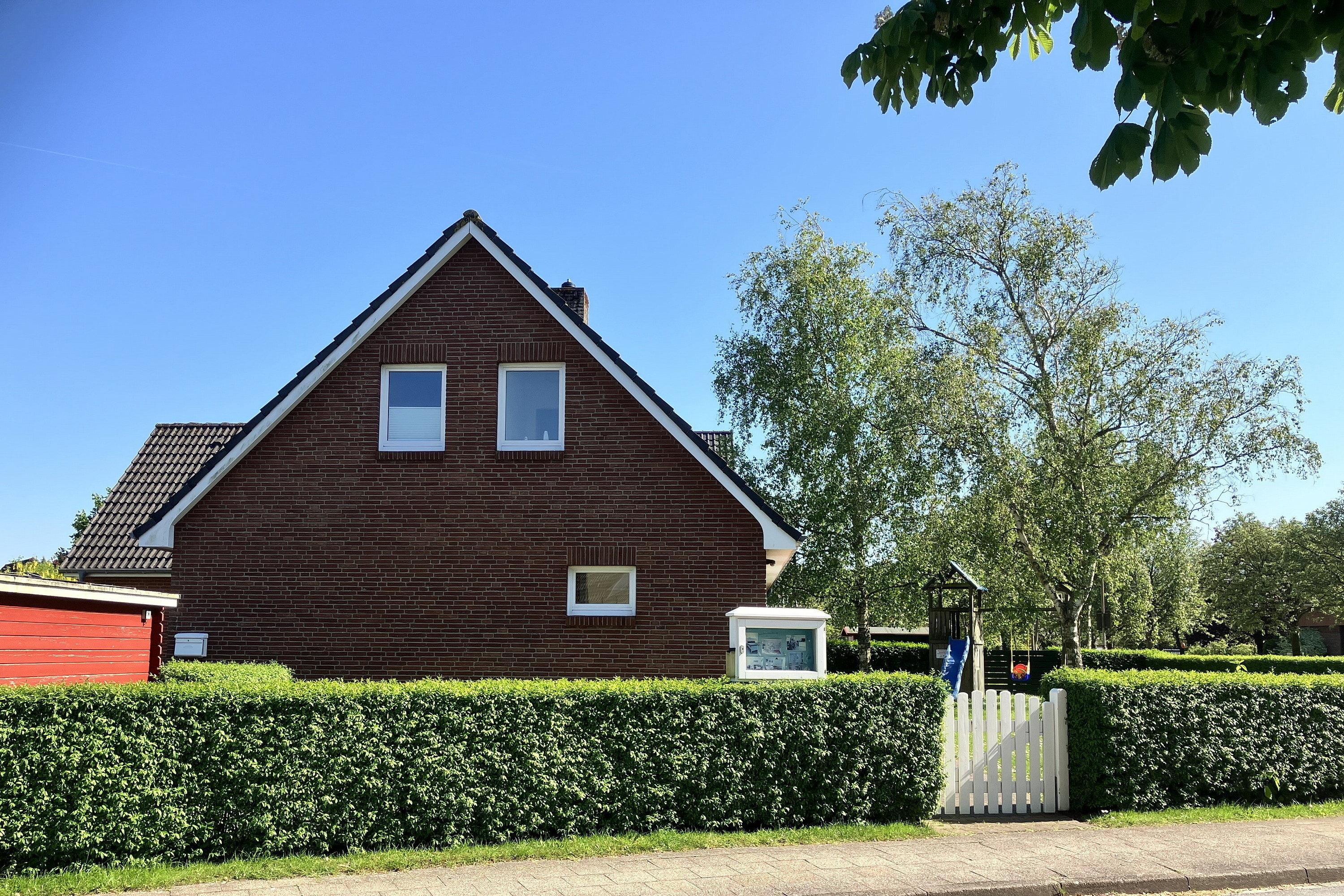 Umgeben von Grün, inmitten eines schönen Gartens mit Spielgeräten, steht das Haus Friesenstern mit 2 Wohnbereichen.