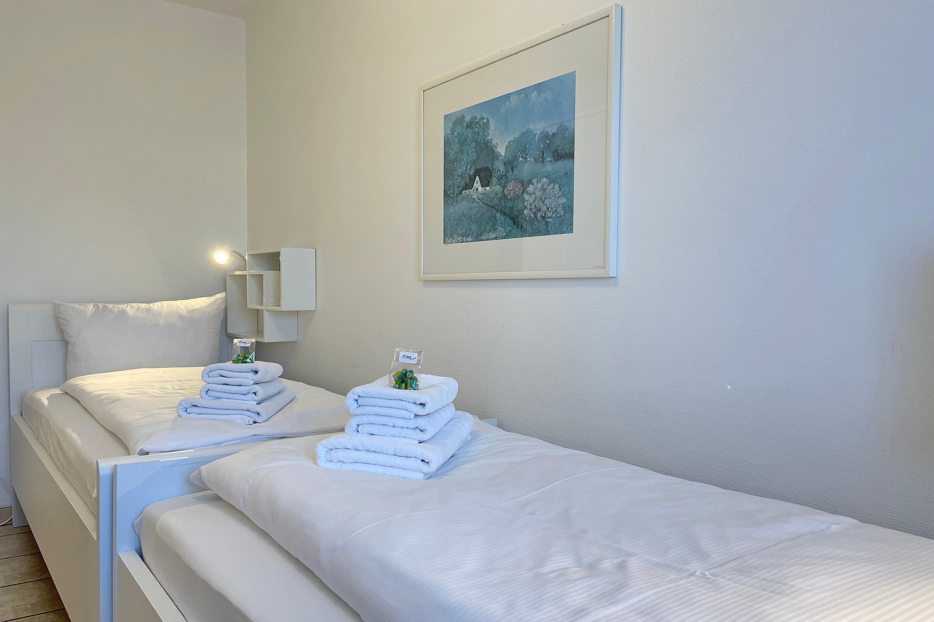 In zentrale und ruhiger Lage befindet sich die Anlage Gästehäuser Lindemann mit seinen 6 Ferienwohnungen auf einem 2000 qm großen und gepflegten Grundstück. Verbringen Sie Ihren Urlaub in einer der freundlich eingerichteten ca. 42 qm großen Ferienwohnungen, die alle sehr ähnlich eingerichtet sind und einen erholsamen Urlaub für 2 Personen anbieten. Das Wohnzimmer mit integrierter Essecke und Küchenzeile ist gemütlich eingerichtet und mit Flachbild-TV, Wlan und Telefon ausgestattet. Von hier aus gelangen Sie auf die Terrasse, die in den Sommermonaten mit Gartenmöbeln ausgestattet ist. Die neu eingebaute Küchenzeile mit Mikrowelle, Geschirrspüler, Ceranfeldherd und Kühlschrank mit Gefrierfach lädt zum Kochen ein. Weiterhin erreichen Sie über den Flur das Badezimmer mit Dusche, Fenster und Doppelwaschtisch sowie ein Schlafzimmer mit 2 Einzelbetten (90 x 200 cm) und Kleiderschrank. Das im Wohnzimmer befindliche Schrankbett (180 x200 cm) dient als Ausweichmöglichkeit, falls Sie getrennt schlafen möchten. Die Wohnungen eignen sich auch hervorragend für befreundete Pärchen, die zusammen Ihren Urlaub verbringen, doch gerne ein wenig Privatsphäre dabei haben möchten. Sie finden in unmittelbarer Nähe alles, was Sie benötigen vom Einkaufladen, über den Bäcker, zu gemütlichen Cafés und Restaurants bis zur Wyker Innenstadt. Strand ud Meer sind auch nicht weit entfernt und jederzeit einen Spaziergang wert. Ein gemeinschaftlicher Parkplatz am Haus und eine gemeinschaftlich, nutzbare Waschmaschine runden das Angebot ab.