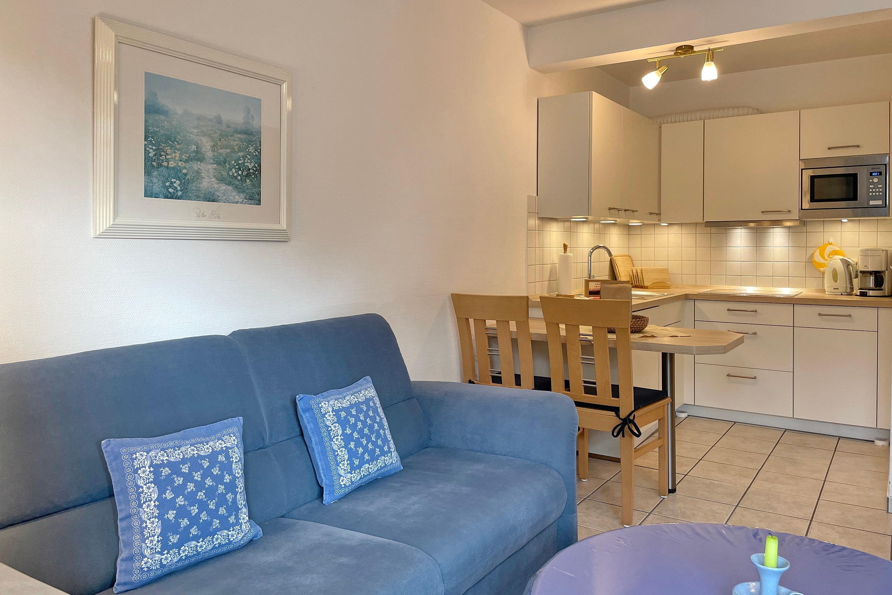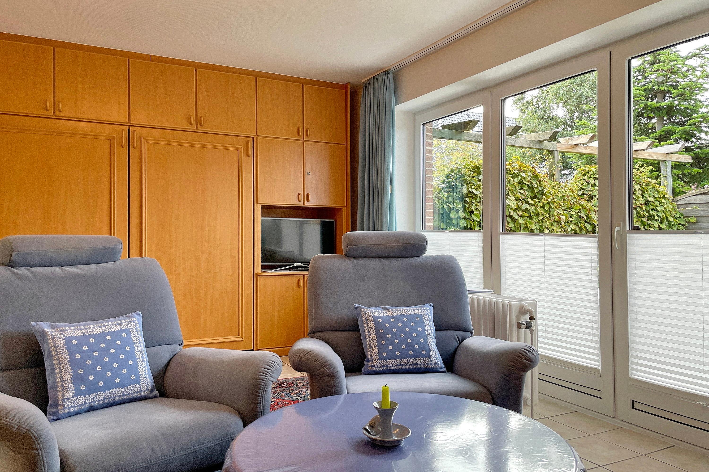 In zentrale und ruhiger Lage befindet sich die Anlage Gästehäuser Lindemann mit seinen 6 Ferienwohnungen auf einem 2000 qm großen und gepflegten Grundstück. Verbringen Sie Ihren Urlaub in einer der freundlich eingerichteten ca. 42 qm großen Ferienwohnungen, die alle sehr ähnlich eingerichtet sind und einen erholsamen Urlaub für 2 Personen anbieten. Das Wohnzimmer mit integrierter Essecke und Küchenzeile ist gemütlich eingerichtet und mit Flachbild-TV, W-Lan und Telefon ausgestattet. Von hier aus gelangen Sie auf die Terrasse, die in den Sommermonaten mit Gartenmöbeln ausgestattet ist. Die neu eingebaute Küchenzeile mit Mikrowelle, Geschirrspüler, Ceranfeldherd und Kühlschrank mit Gefrierfach lädt zum Kochen ein. Weiterhin erreichen Sie über den Flur das Badezimmer mit Dusche, Fenster und Doppelwaschtisch sowie ein Schlafzimmer mit 2 Einzelbetten (90 x200 cm) und Kleiderschrank. Das im Wohnzimmer befindliche Schrankbett (180 x 200 cm) dient als Ausweichmöglichkeit, falls Sie getrennt schlafen möchten. Die Wohnungen eignen sich auch hervorragend für befreundete Pärchen, die zusammen Ihren Urlaub verbringen, doch gerne ein wenig Privatsphäre dabei haben möchten. Sie finden in unmittelbarer Nähe alles, was Sie benötigen vom Einkaufladen, über den Bäcker, zu gemütlichen Cafés und Restaurants bis zur Wyker Innenstadt. Strand und Meer sind auch nicht weit entfernt und jederzeit einen Spaziergang wert. Ein gemeinschaftlicher Parkplatz am Haus und eine gemeinschaftlich, nutzbare Waschmaschine runden das Angebot ab.