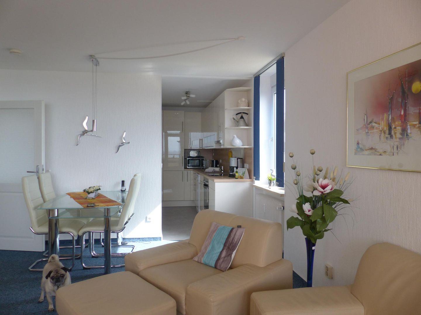 Wie der Name es schon verrät , erwartet Sie in unserem Ferienobjekt "Weitblick" ein weiter Blick auf die Nordee . In der gemütlich eingerichtet Wohnung haben zwei Personen großzügig Platz. Sie besteht aus einem Wohnraum mit angrenzender, modernen Küche, die keine Wünsche offen lässt, einem Schlafraum, einem modernen Bad mit WC und einer Diele. Der vom Wohnzimmer aus zugängliche und überdachte Balkon hat Südlage und bietet einen wunderschönen Blick auf die Nordsee und die vorgelagerten Halligen. Balkonmöbel sind vorhanden. Bei dieser Wohnung haben Sie Schwimmbadbenutzung im Hause.