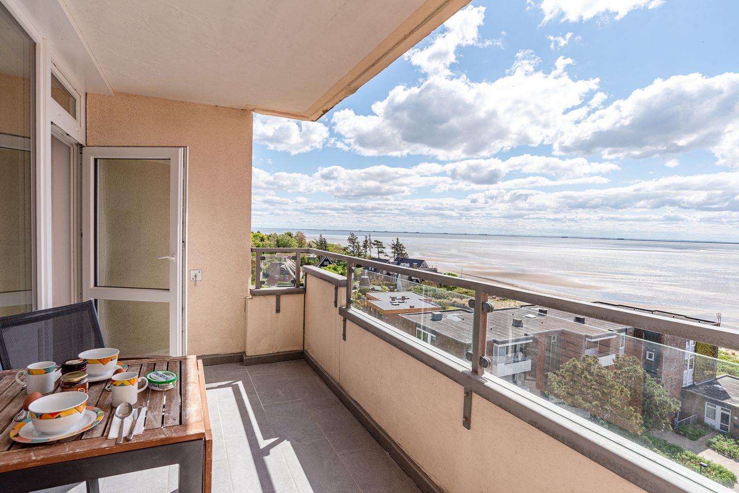 Hier im sechsen Stock genießen Sie den Ostwind mit traumhaften Blick auf die Halligen und Amrum!
