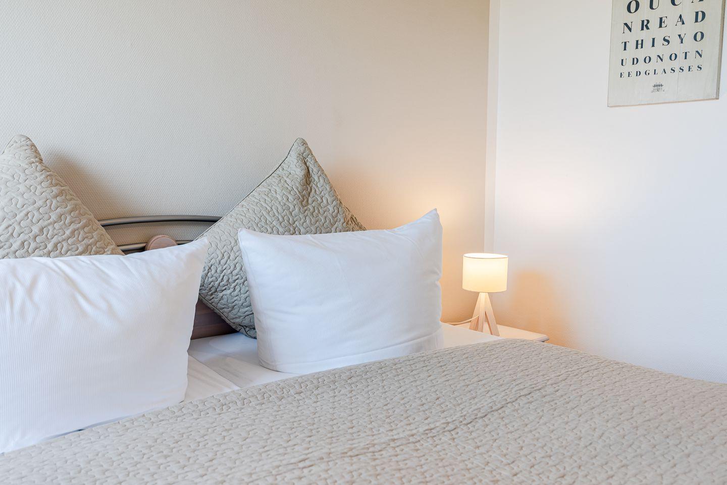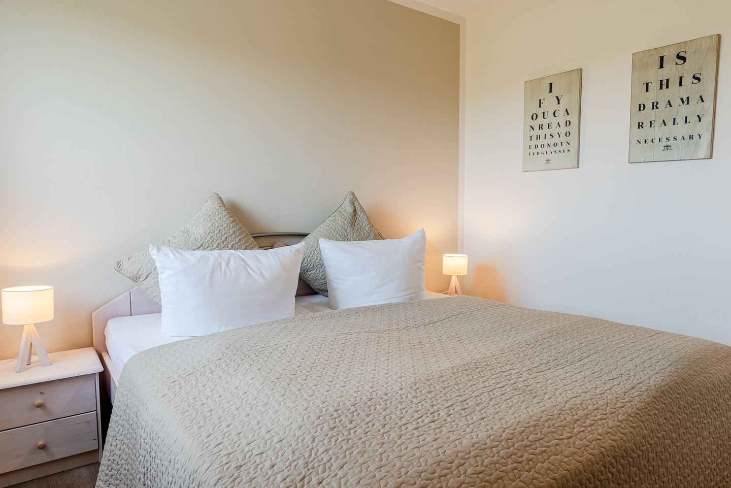Ihr Domizil beherbergt ein Schlafzimmer mit Doppelbett, einen geräumigem Kleiderschrank sowie ein Schlafsofa im Wohnzimmer.