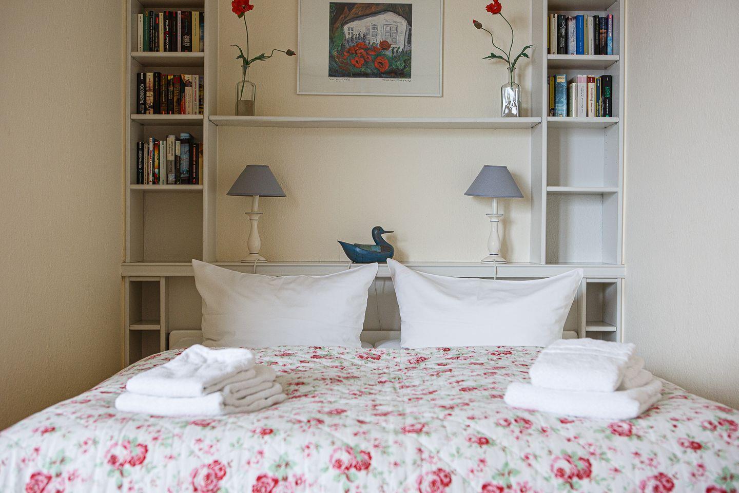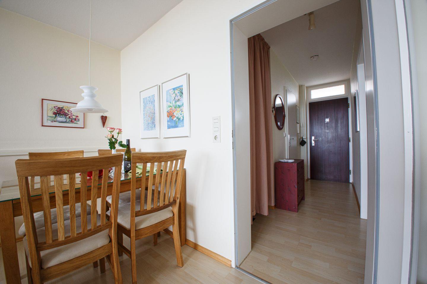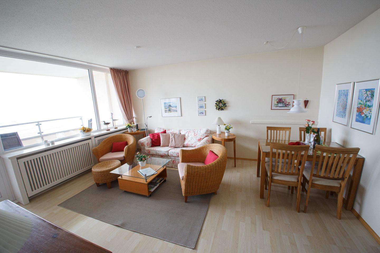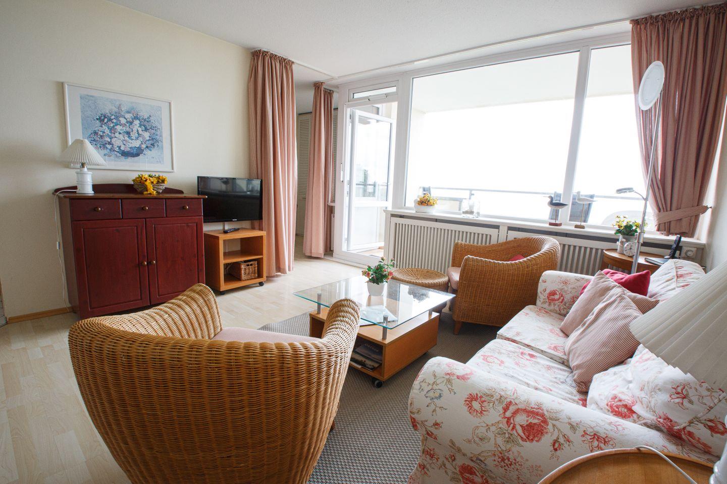 Ein traumhafter Blick erwartet Sie hier für einen traumhaften Urlaub. Die Wohnung befindet sich im 4.OG und ist hell und freundlich für bis zu vier Personen eingerichtet. Sie besteht aus einem gemütlichen Wohnzimmer mit Südbalkon. Es befinden sich zwei Schlafzimmern mit jeweils einem 160cm Doppelbett. Die Küchenzeile ist mit allen modernenen Geräten ausgestattet.Das neu renovieret Bad bietet eine Walkinn Dusche mit modernem Flair. Wohn- und Schlafbereiche sind mit Laminat ausgelegt, Küche und Bad sind gefliest. Die Wohnung ist sehr geschmackvoll und mit vielen kleinen Accessoires liebevoll eingerichtet.
