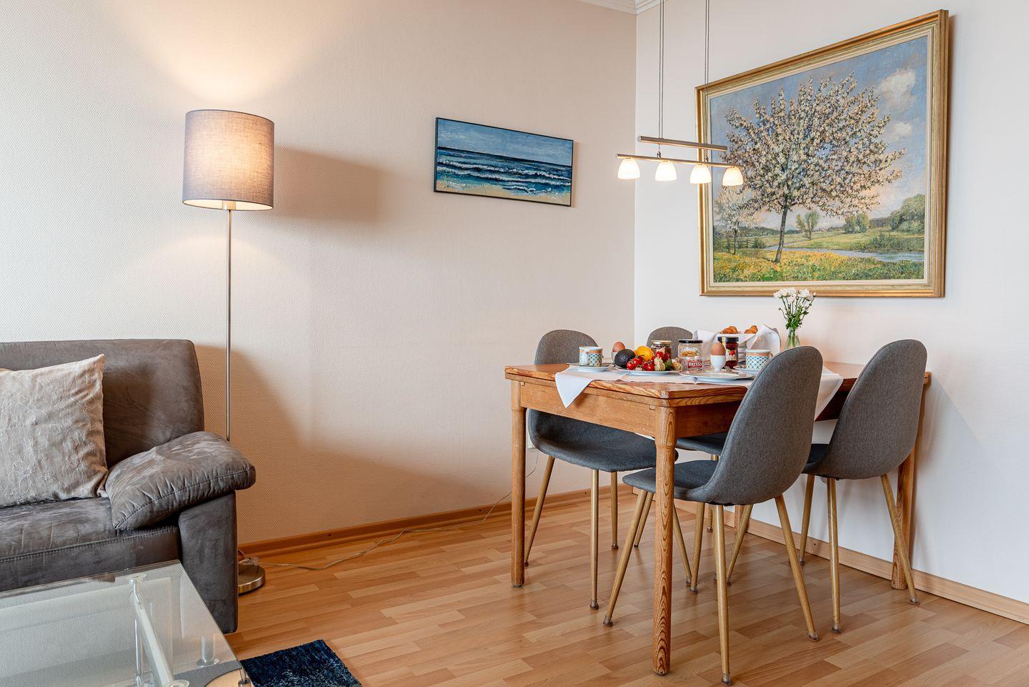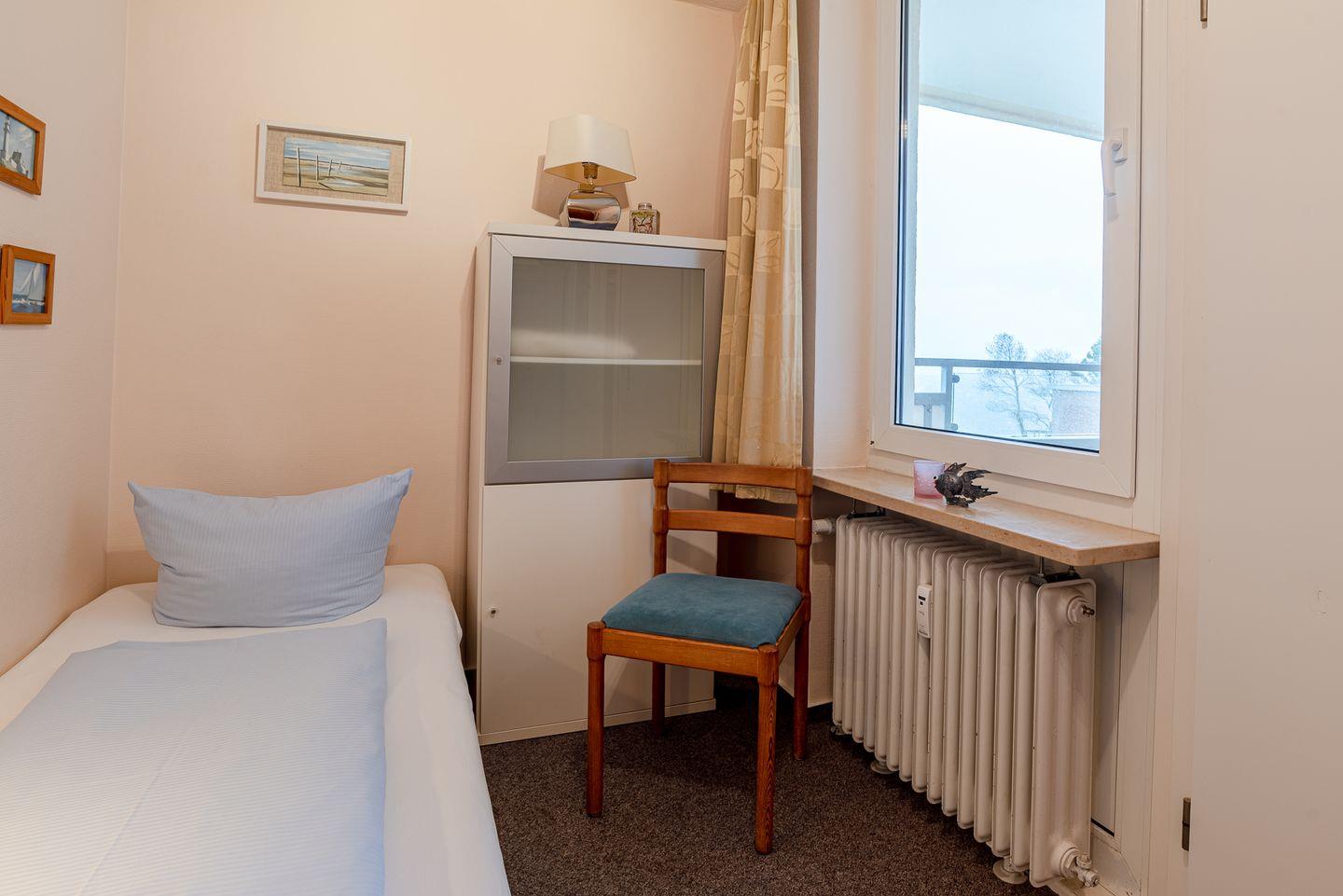 Unser Ferienobjekt "Lütte Bris" befindet sich im 3. Stock des Hauses Uthlande mit atemberaubenden Blick auf die Nordee und Halligen. Sie besteht aus einem Wohnzimmer mit davon abgehender Küchenzeile, zwei Schlafzimmern, einer Dusche mit WC und einer Diele. Sie ist für bis zu 4 Personen nett eingerichtet. Der vom Wohnraum aus zugängliche Balkon in Südlage bietet einen schönen Blick über die Nordsee und die vorgelagerten Halligen. Balkonmöbel stehen zur Verfügung. Die Wohnung ist mit Schwimmbadbenutzung im Hause.
